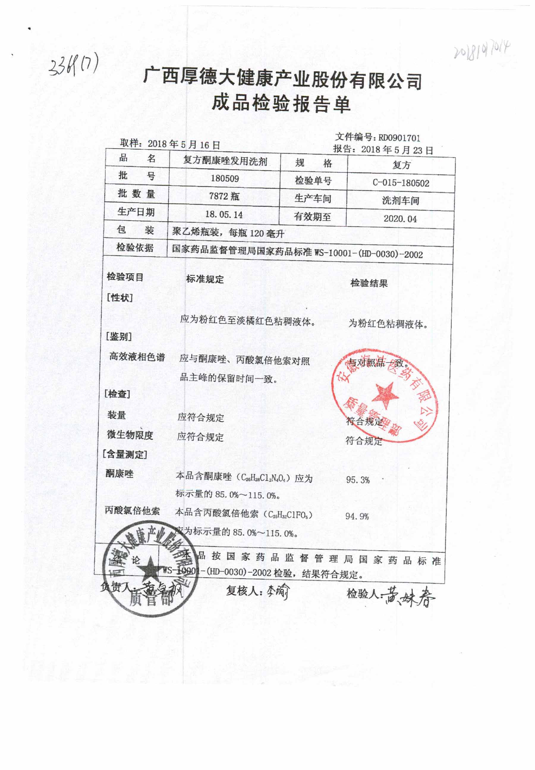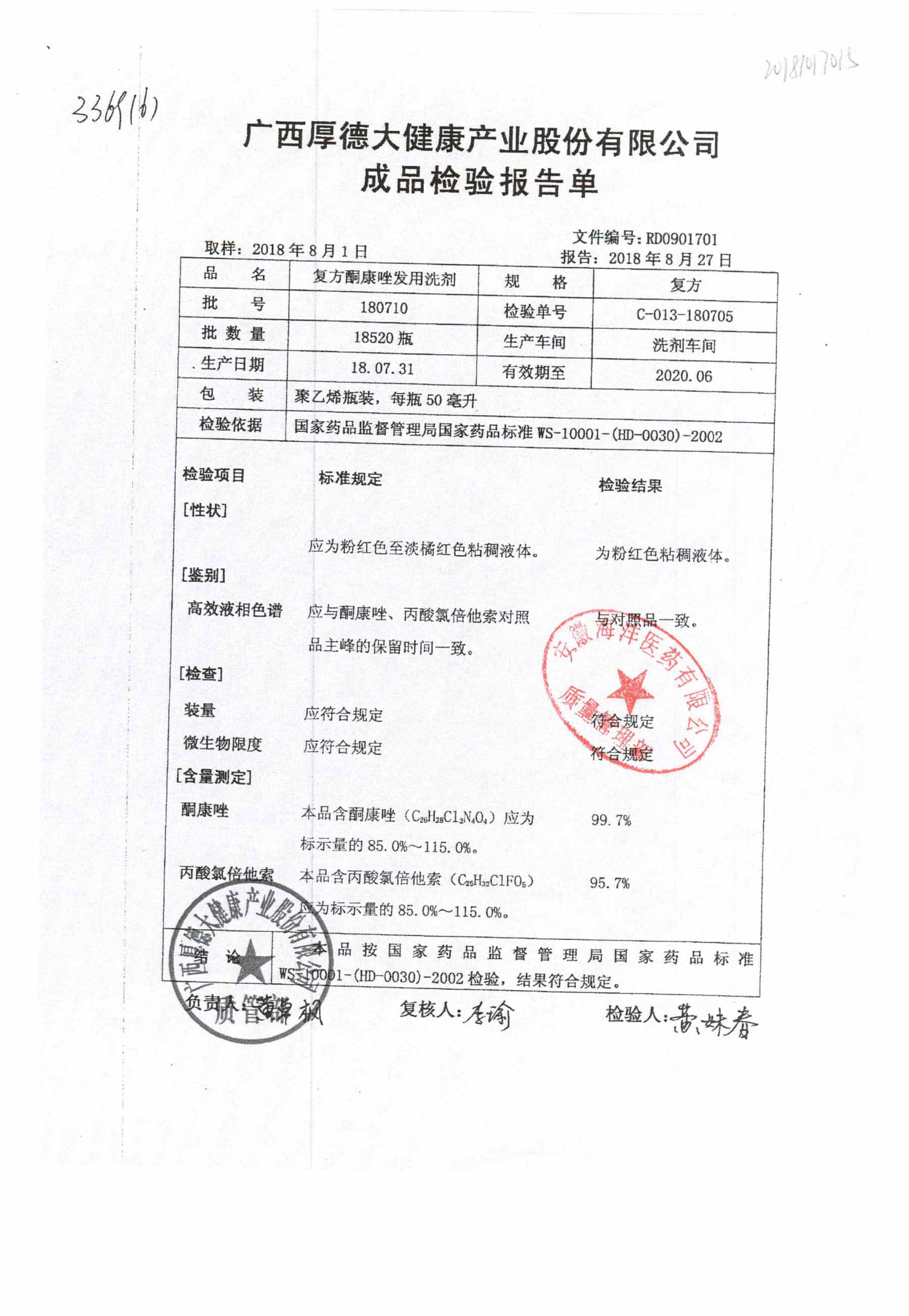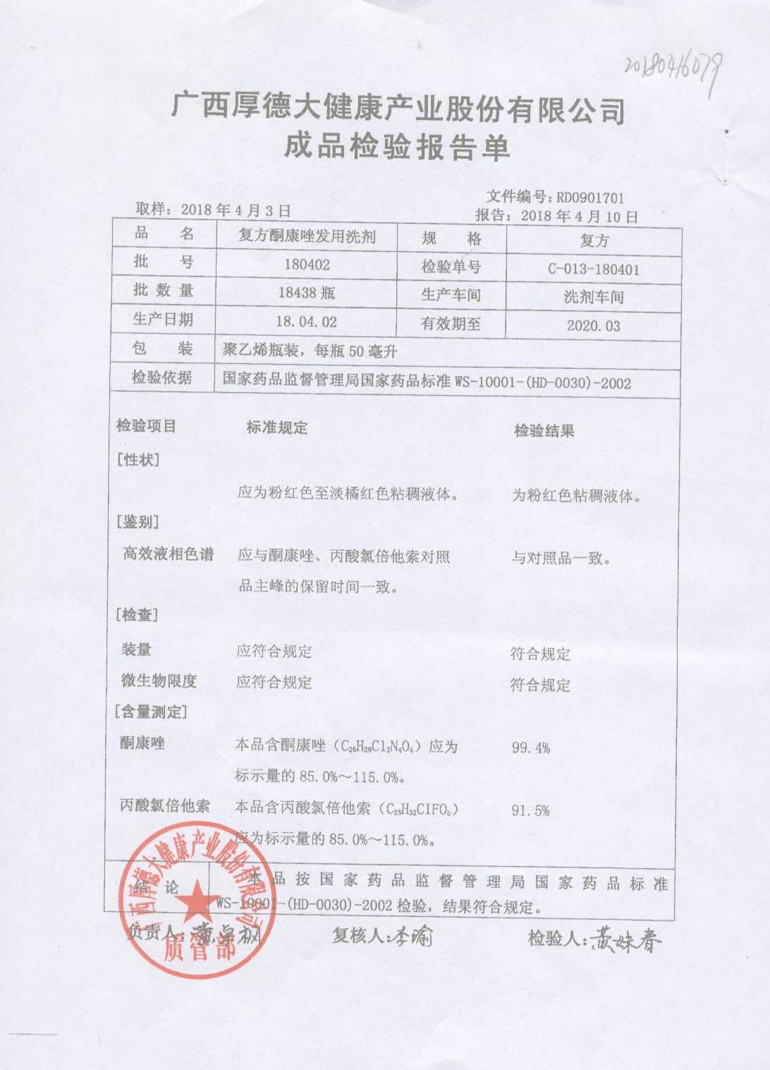 復(fù)方酮康唑發(fā)用洗劑 | 復(fù)方 | 180405 | 查看詳情 |