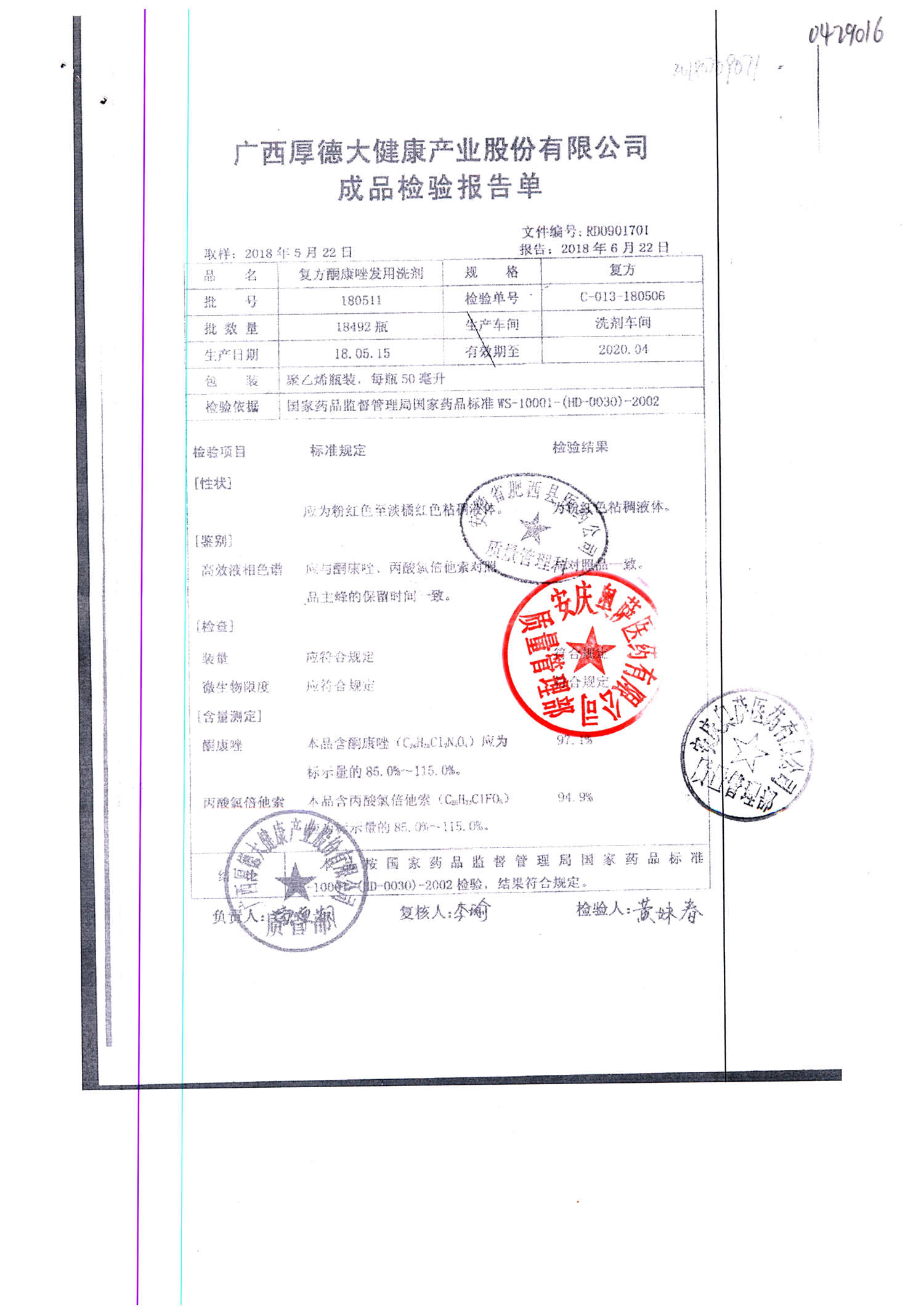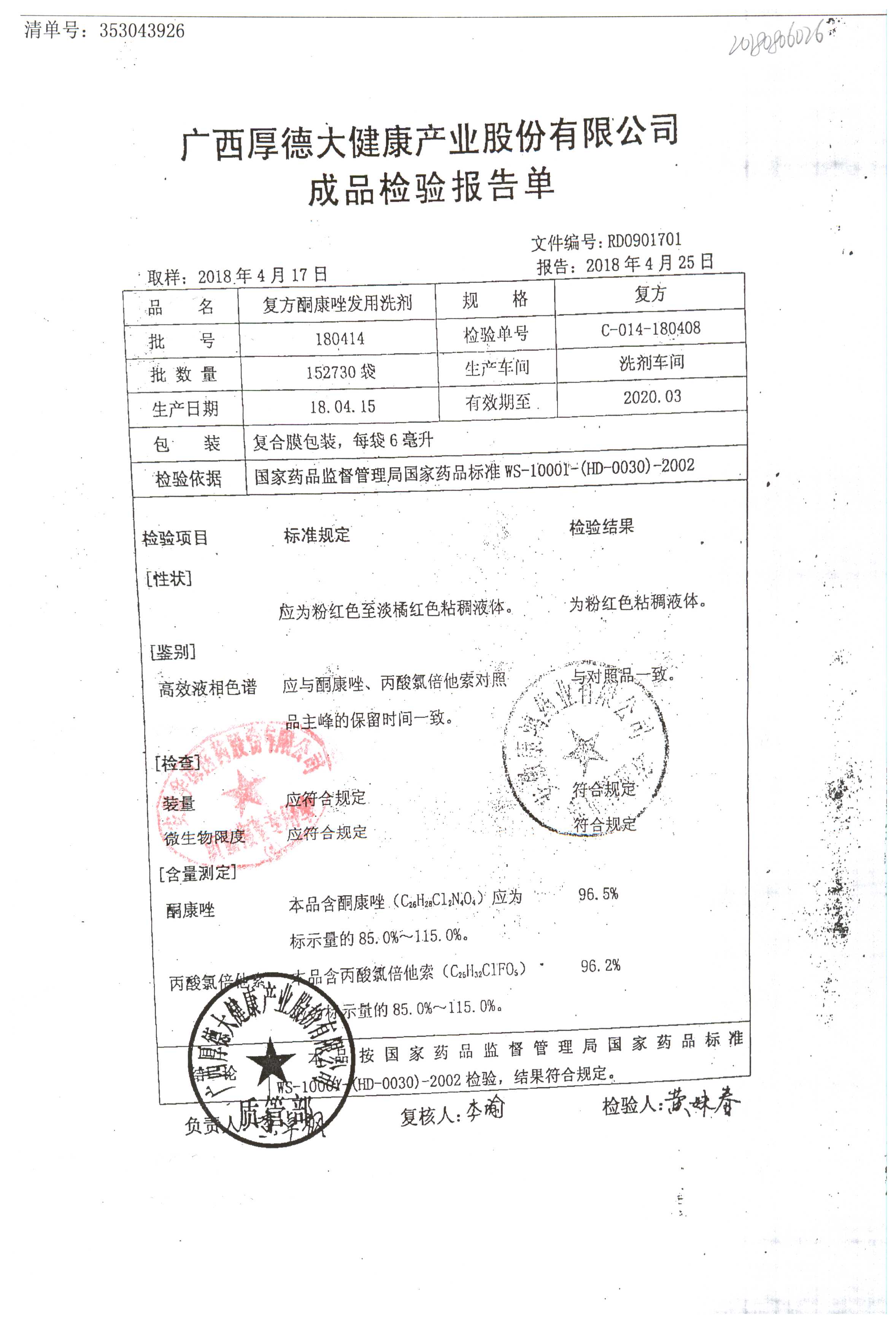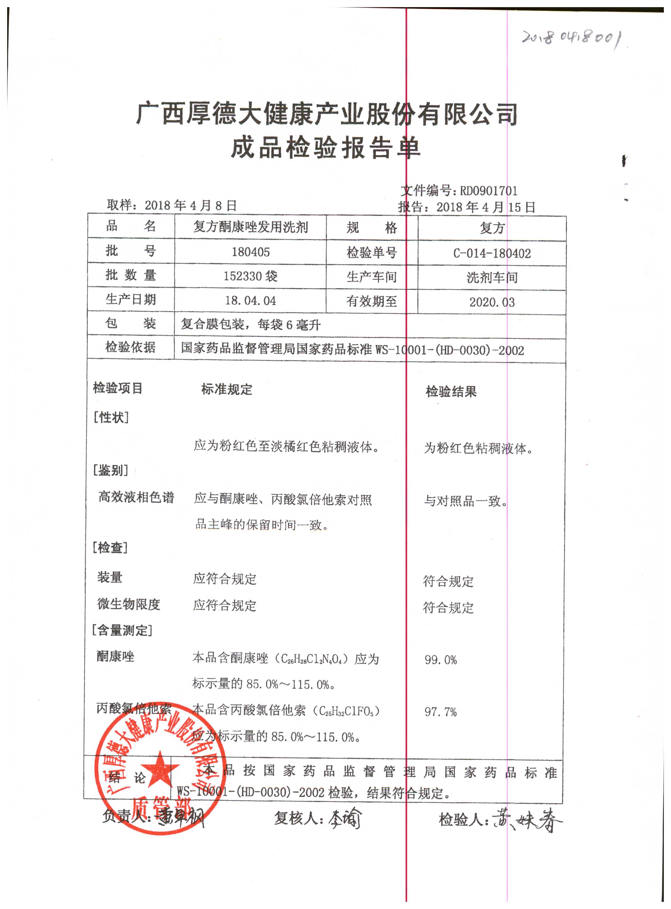 復(fù)方酮康唑發(fā)用洗劑 | 復(fù)方 | 180405 | 查看詳情 |