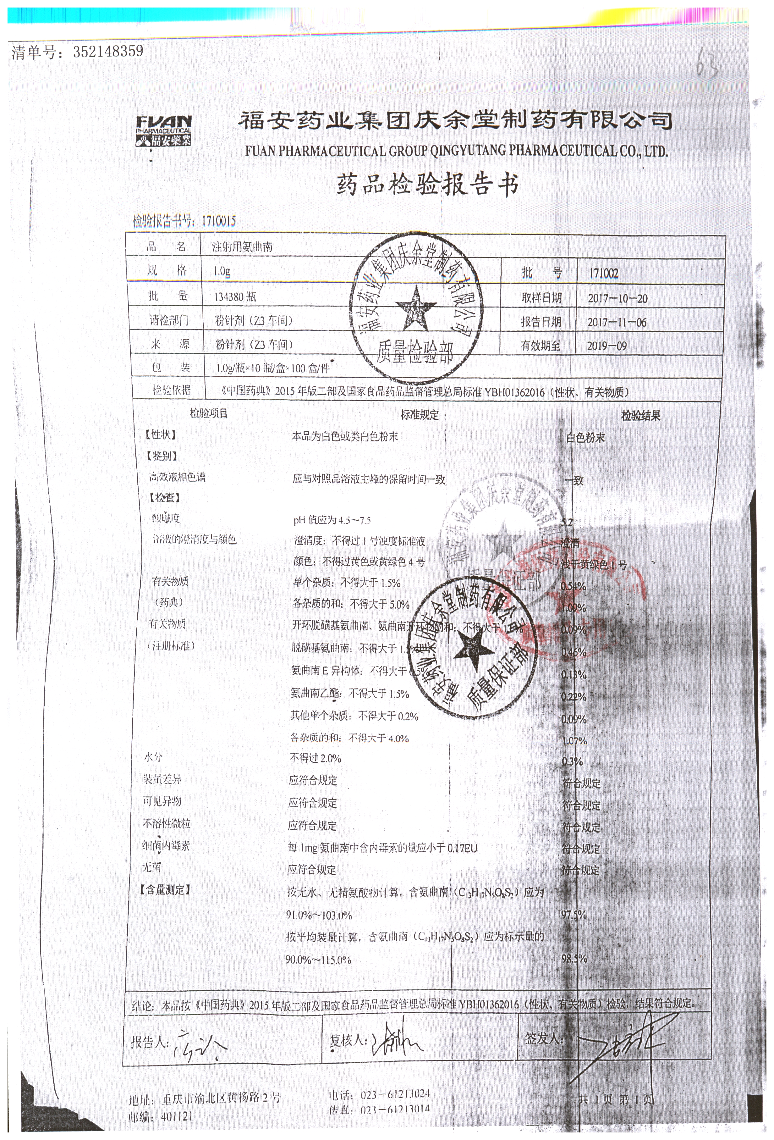 注射用氨曲南 1.0g 171002 查看詳情