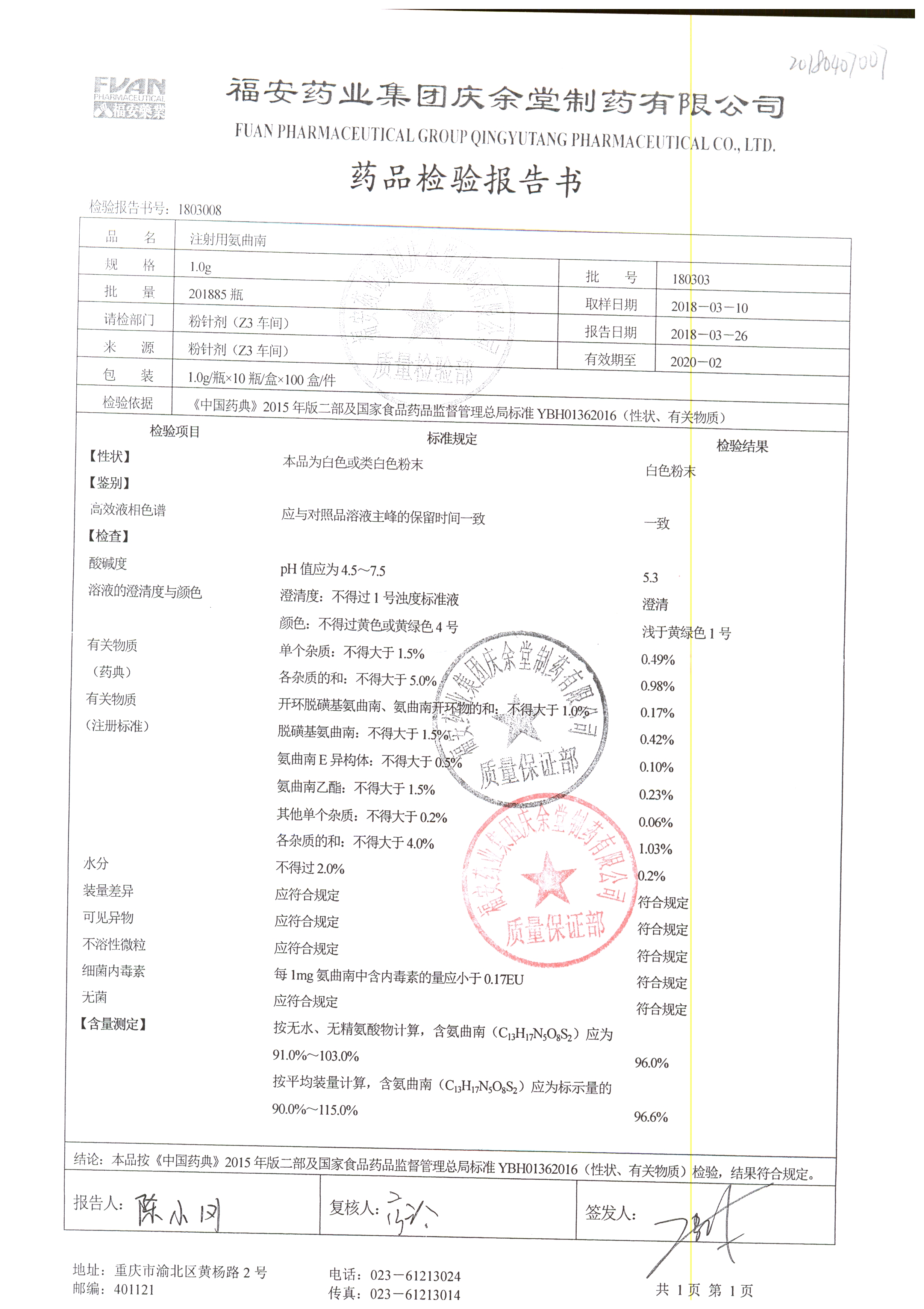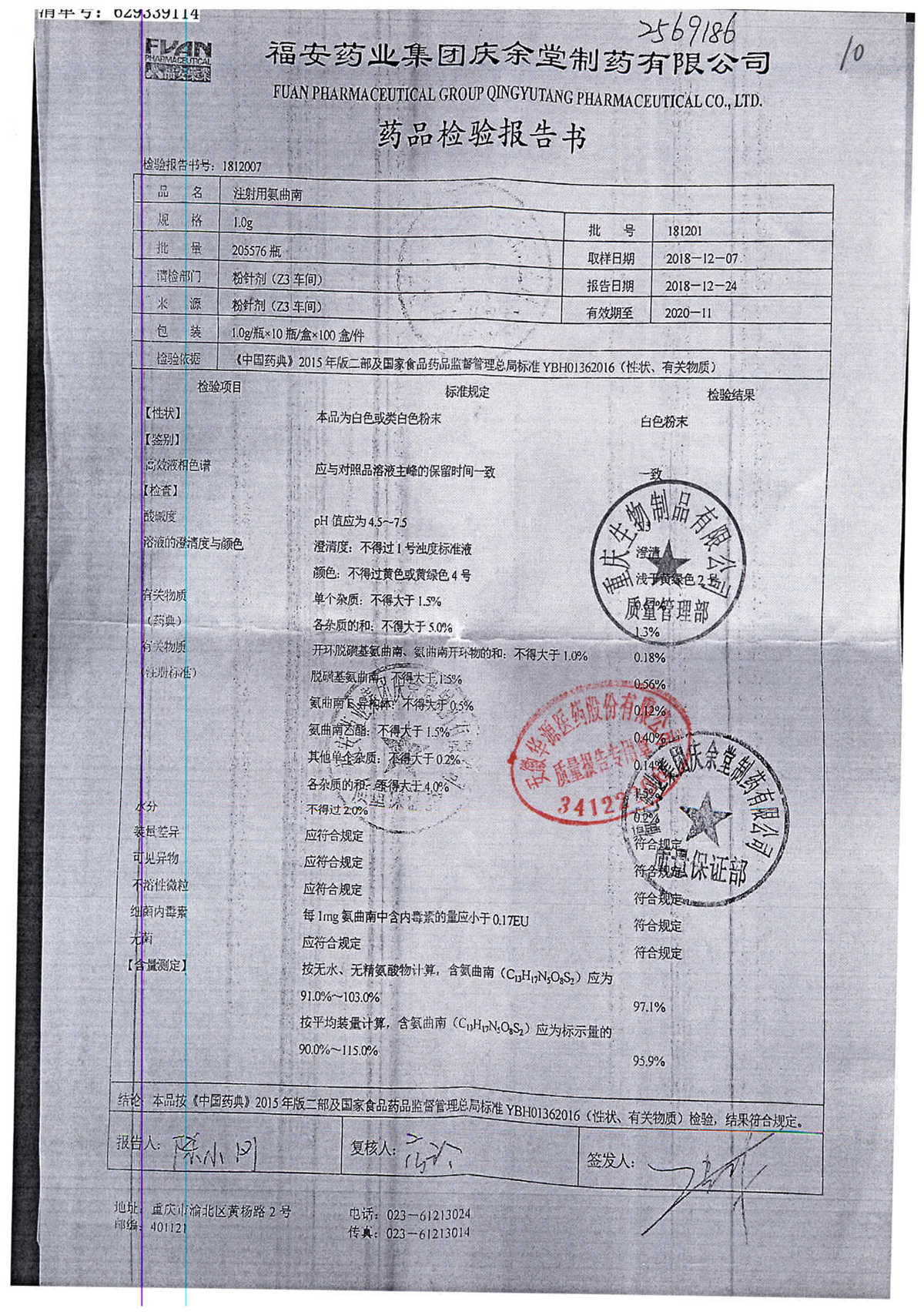 名稱 規(guī)格 批號 藥檢報告
