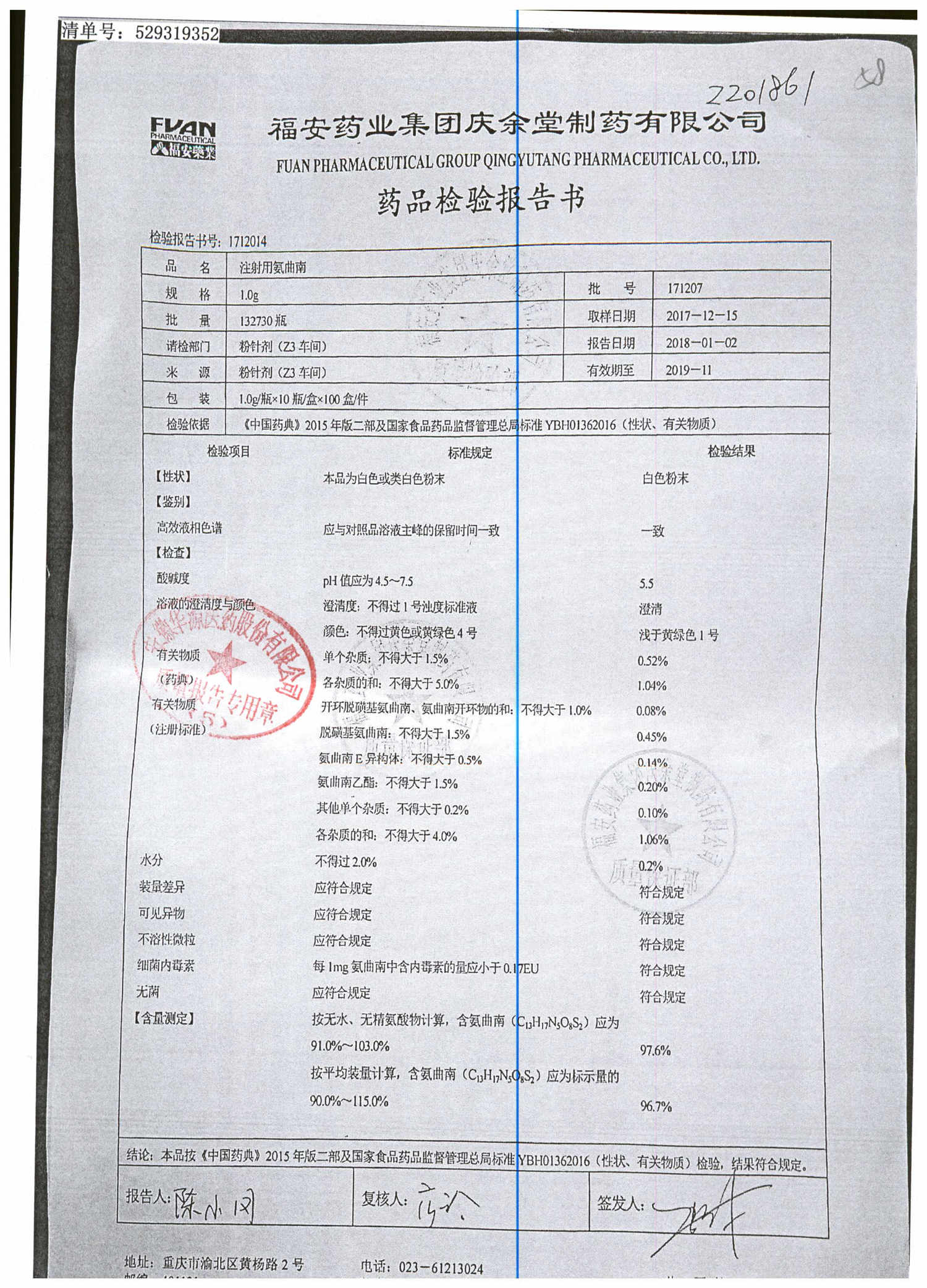 注射用氨曲南 1.0g 181201 查看詳情