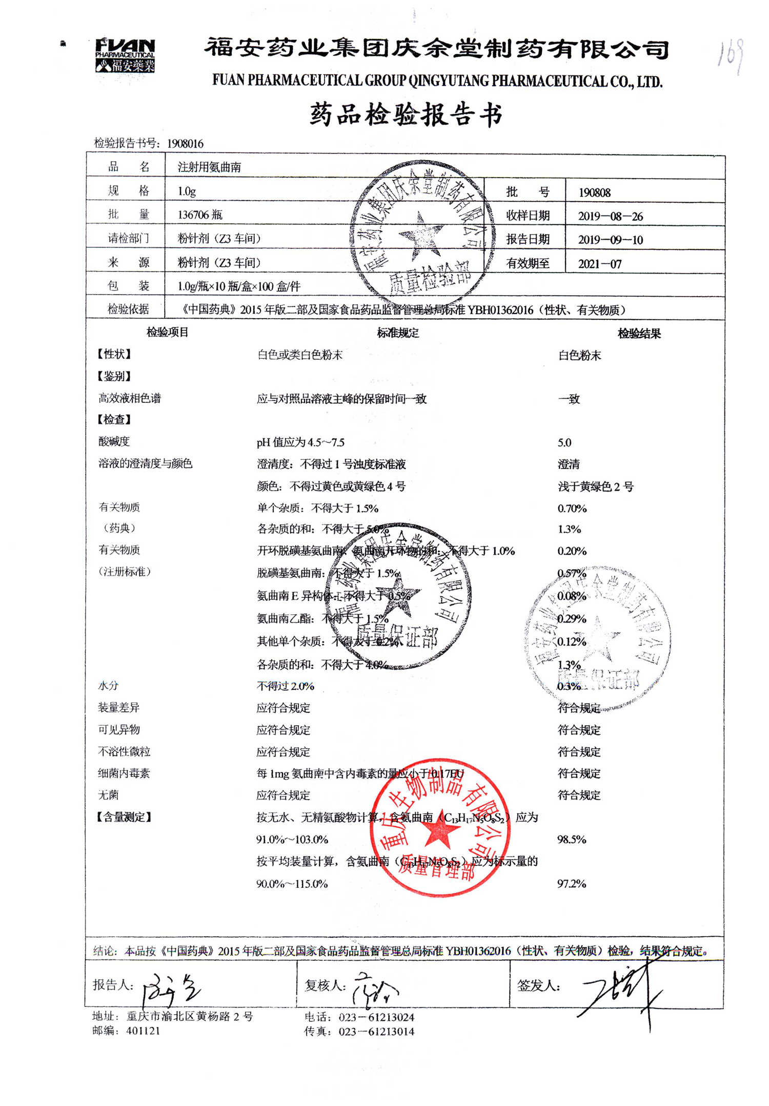 注射用氨曲南 1.0g 190808 查看詳情