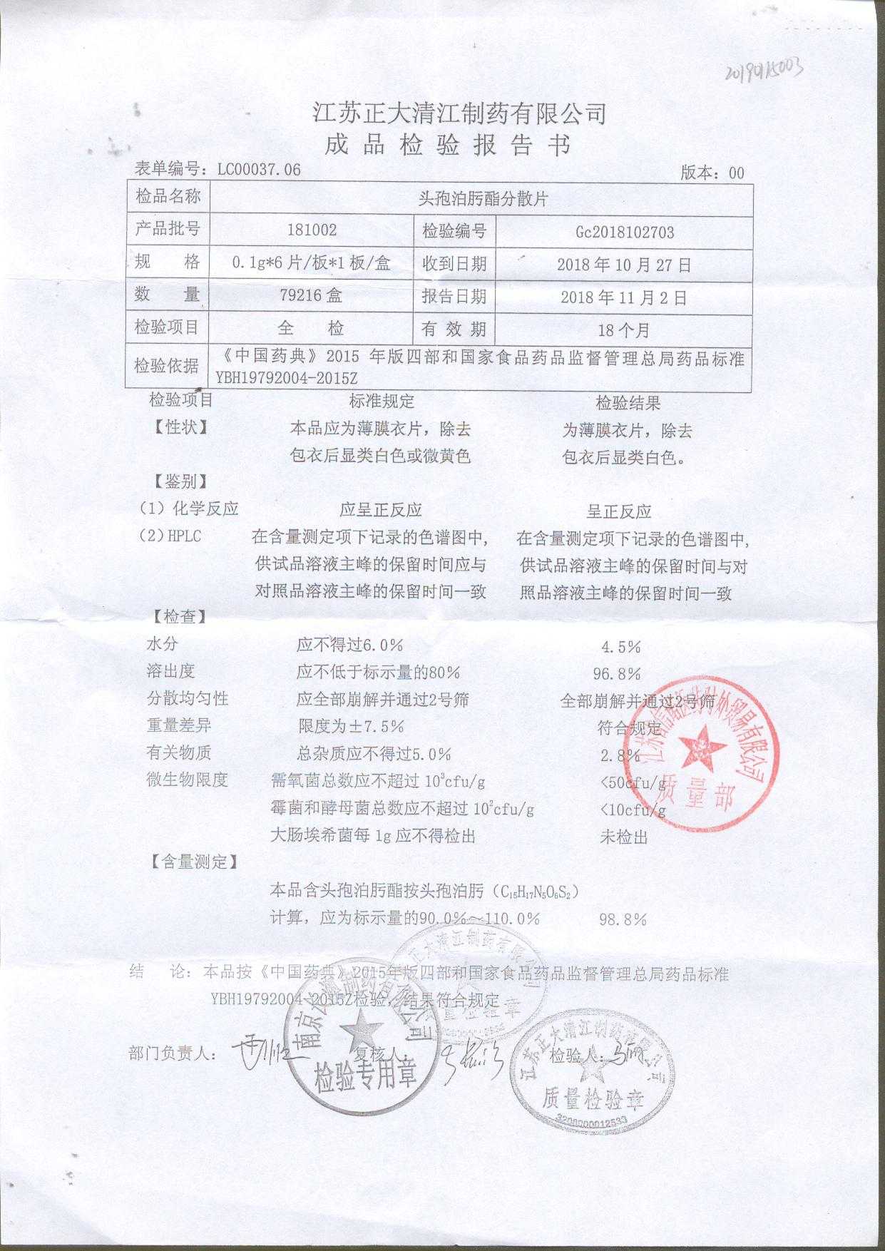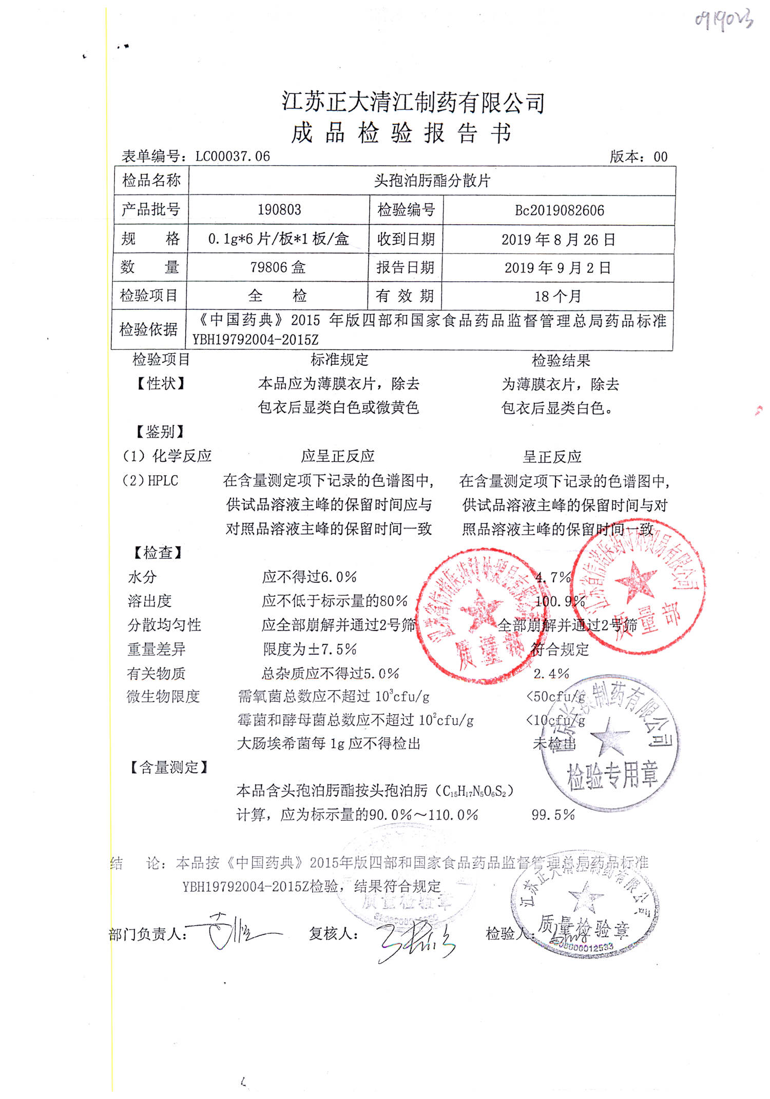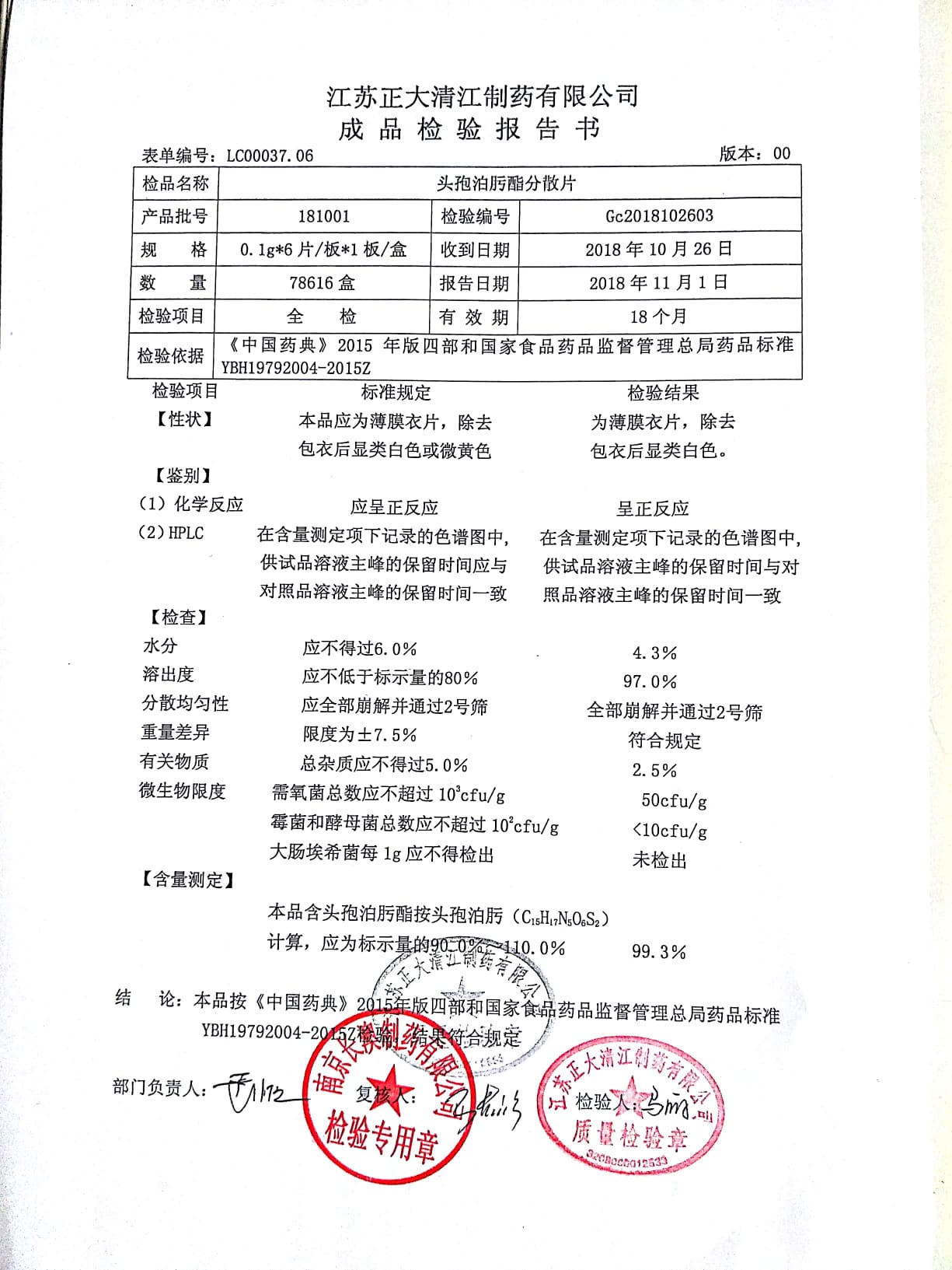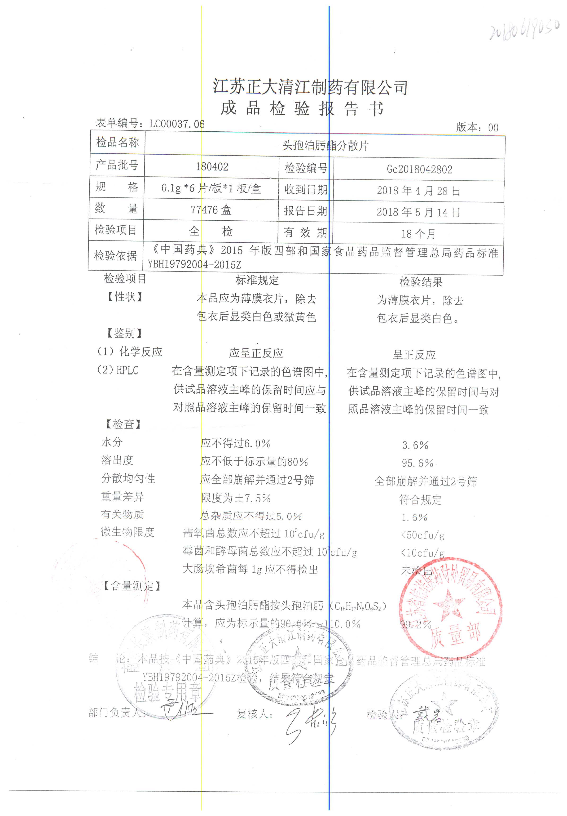 頭孢泊肟酯分散片 | 0.1g*6s | 190803 | 查看詳情 |