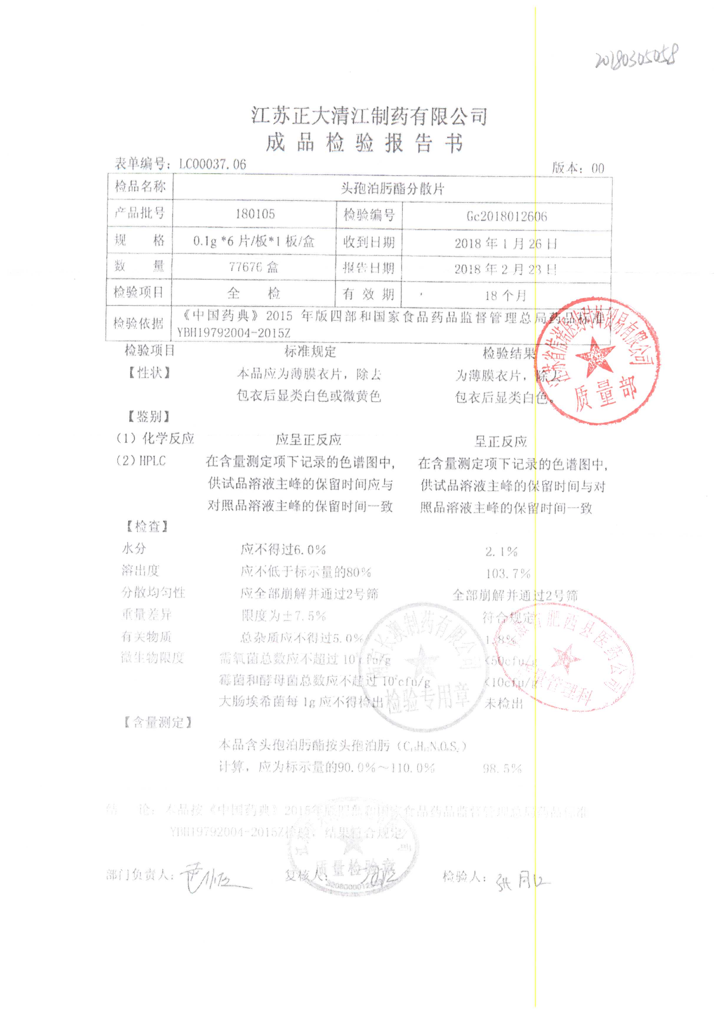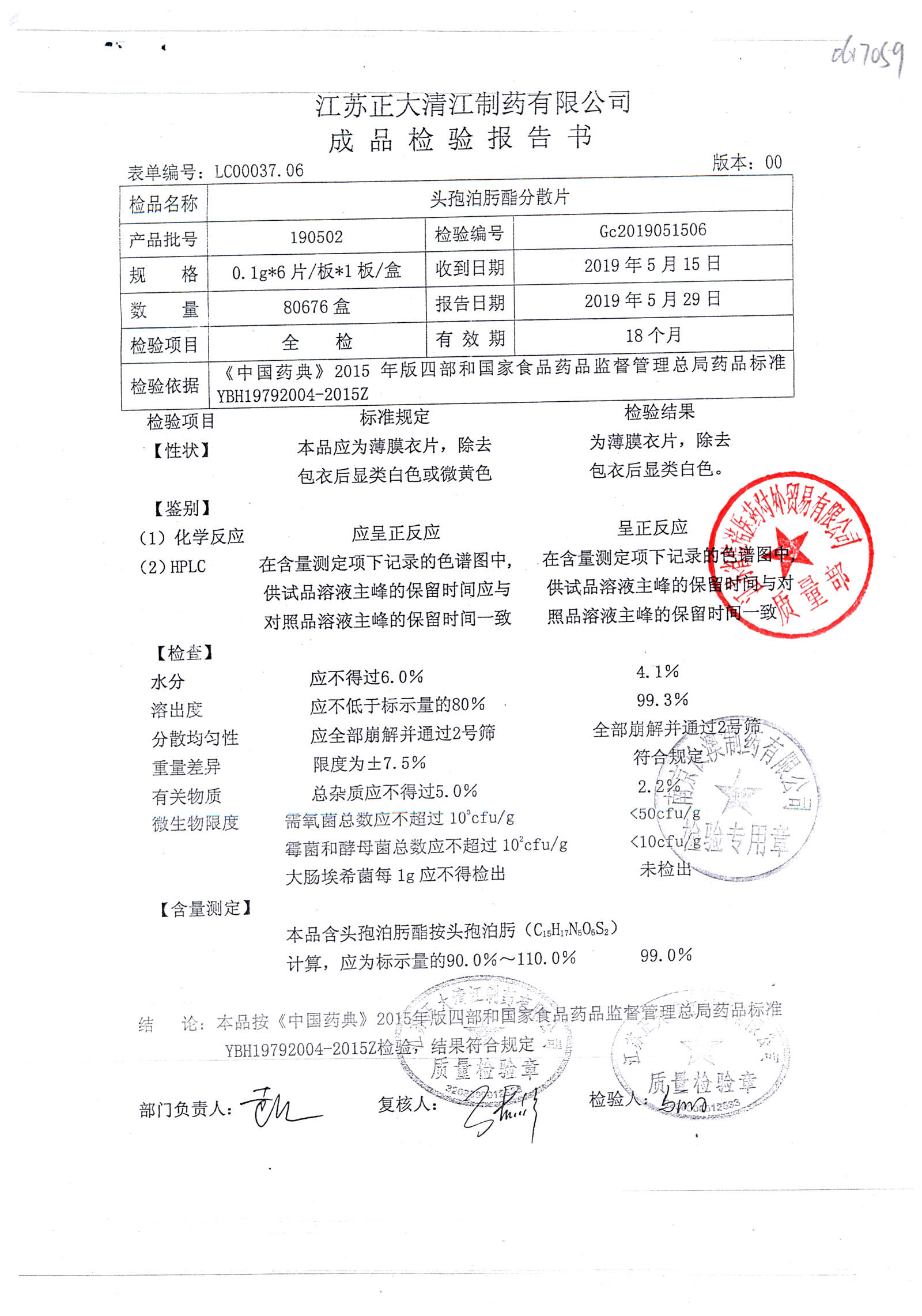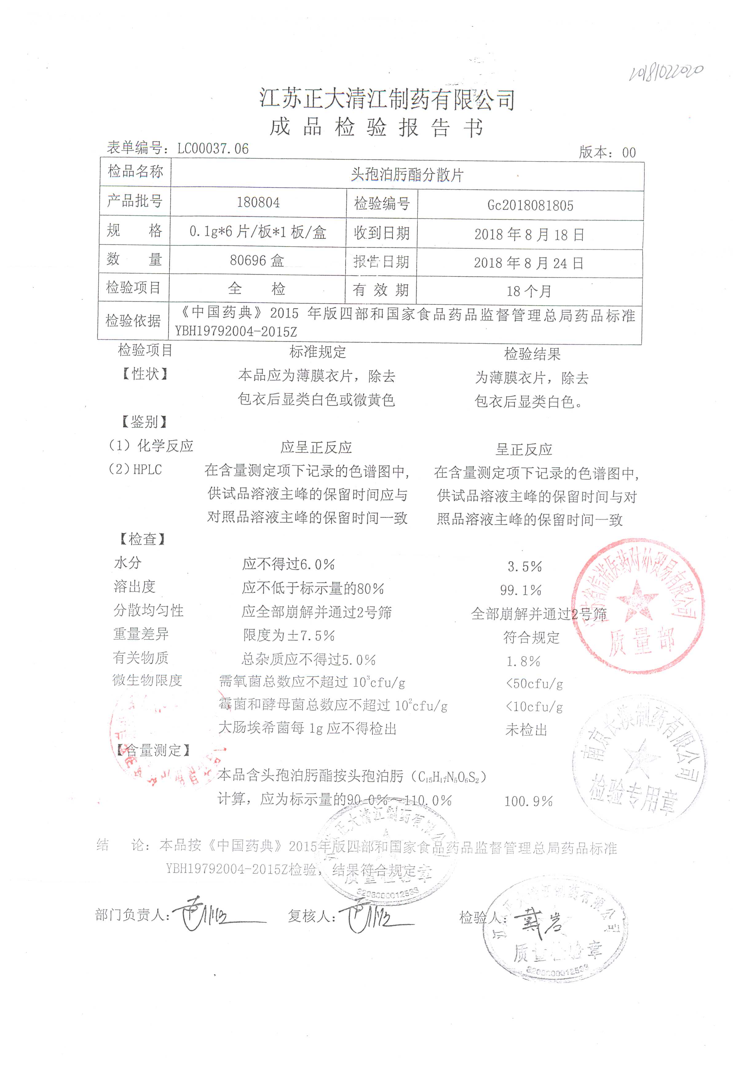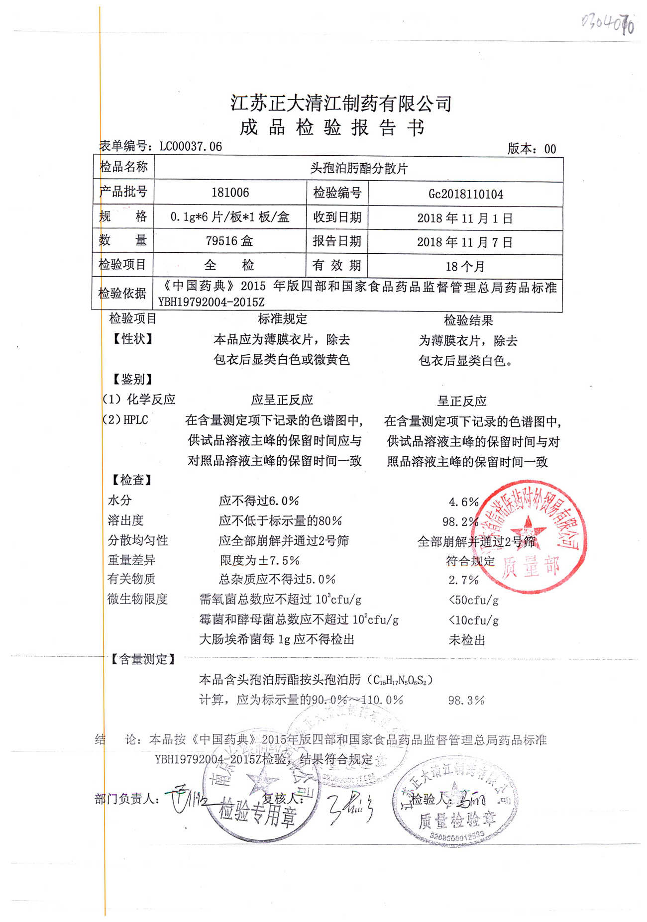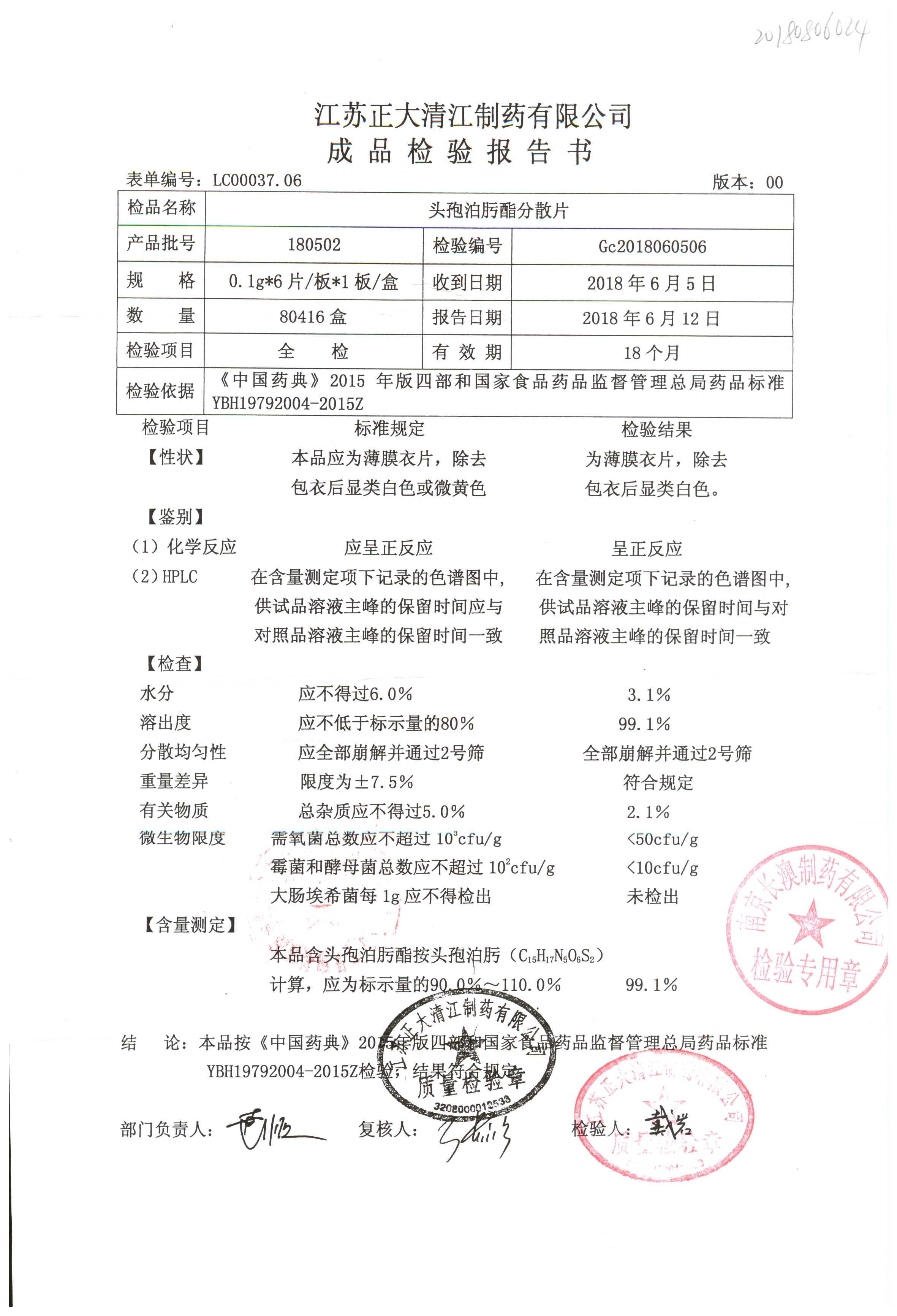 頭孢泊肟酯分散片 | 0.1g*6s | 190803 | 查看詳情 |