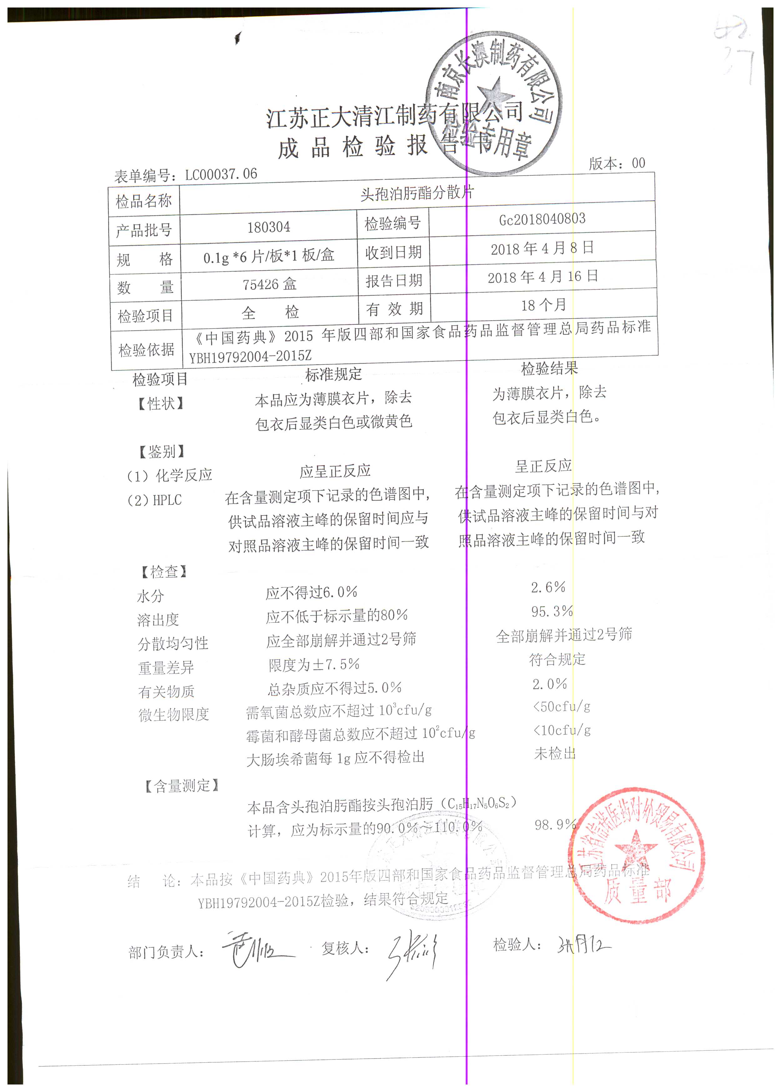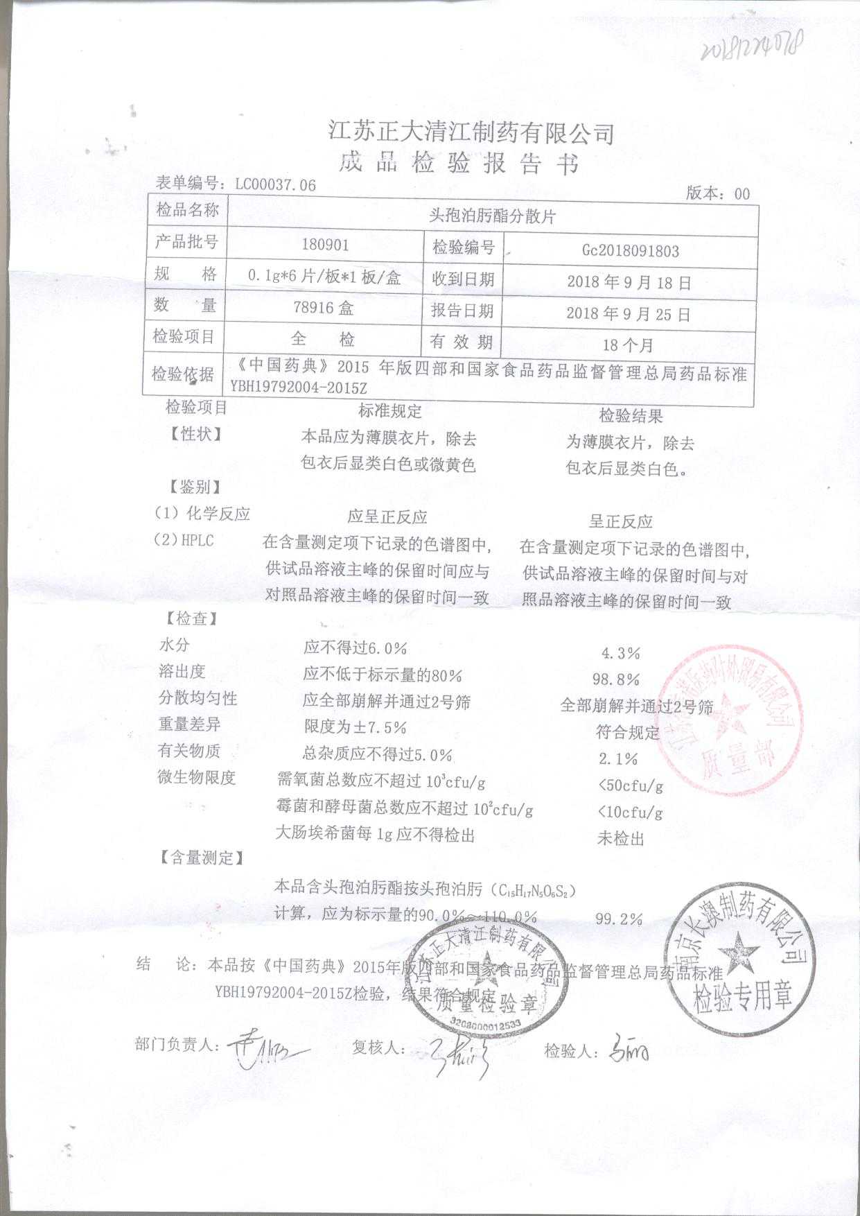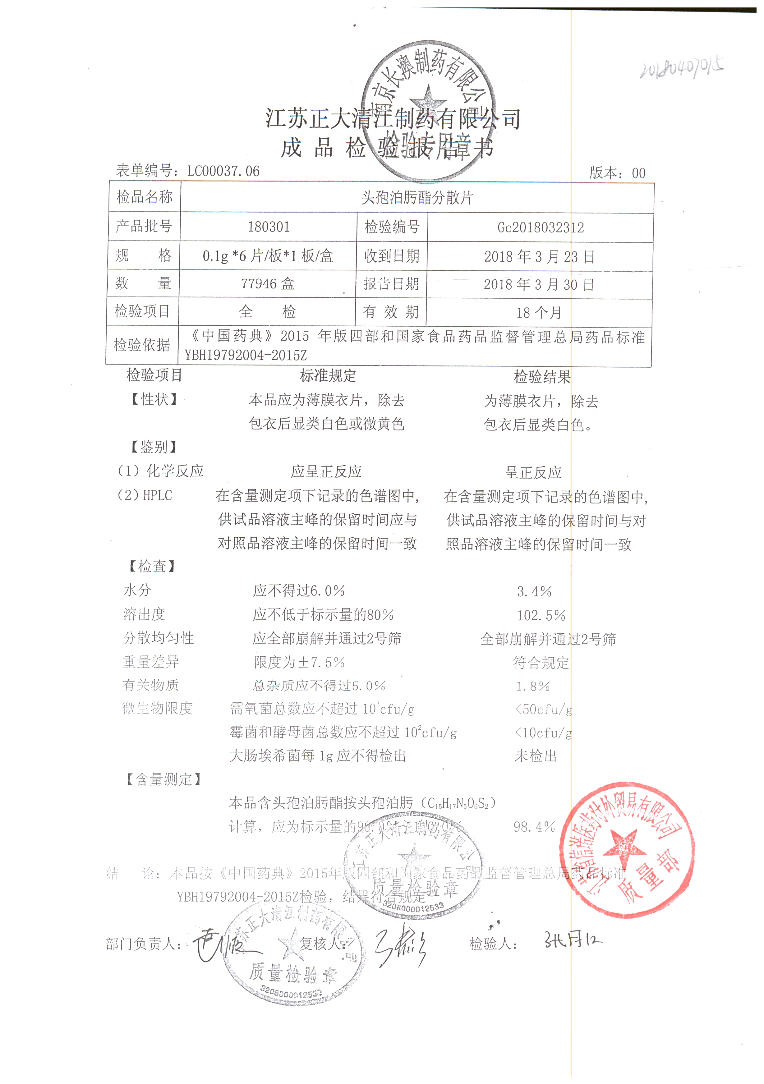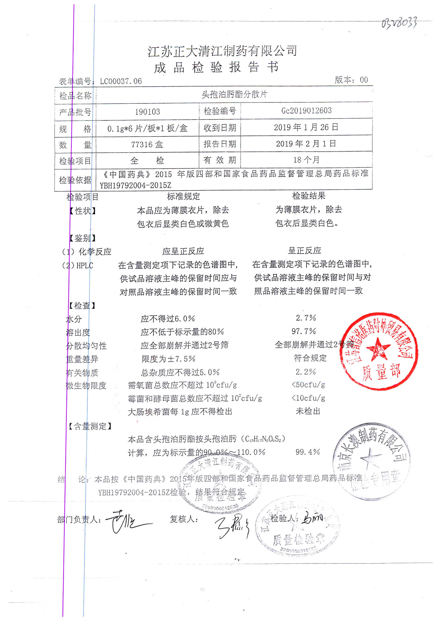 頭孢泊肟酯分散片 | 0.1g*6s | 190803 | 查看詳情 |