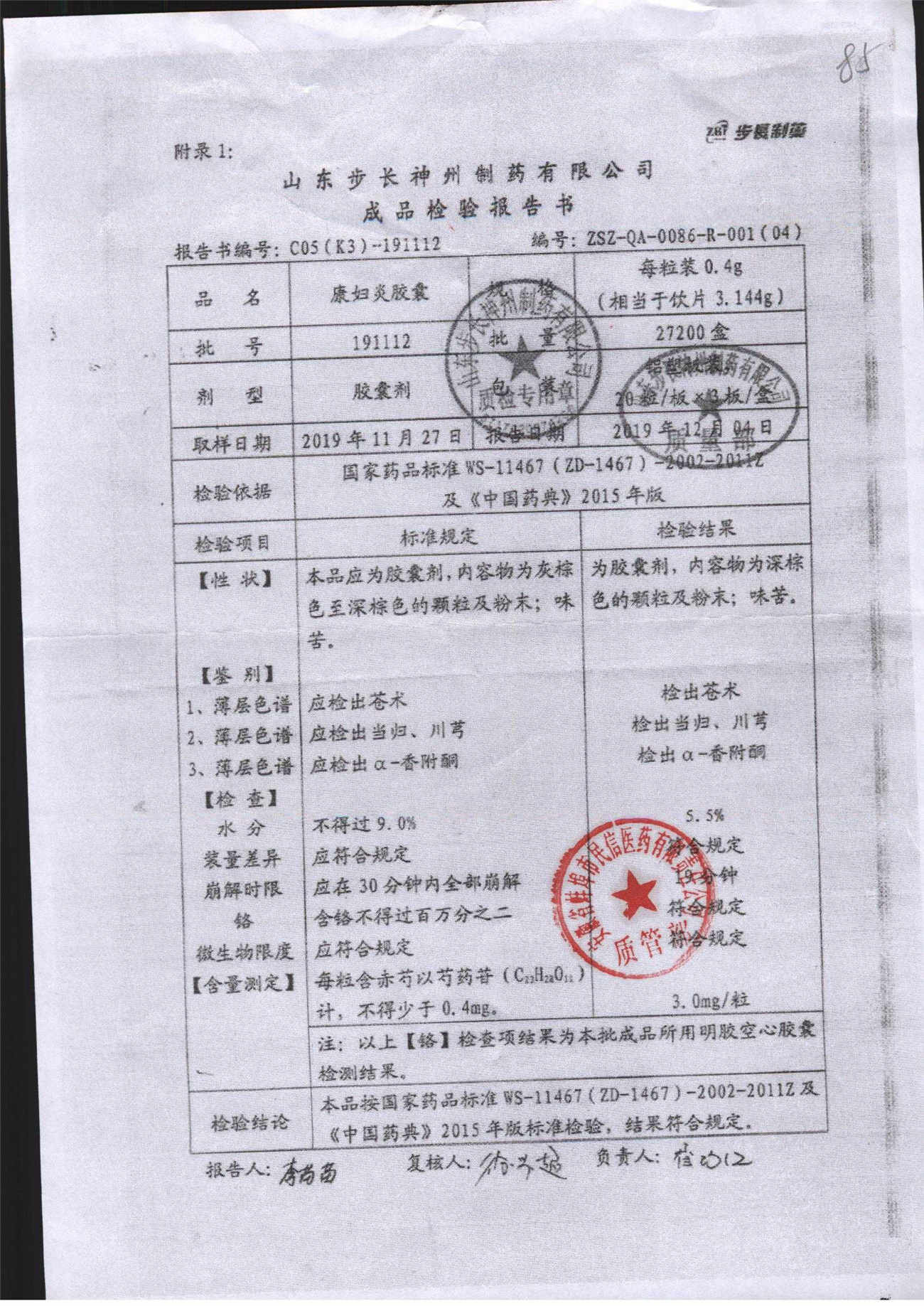康婦炎膠囊 | 0.4g*60粒 | 191112 | 查看詳情 |