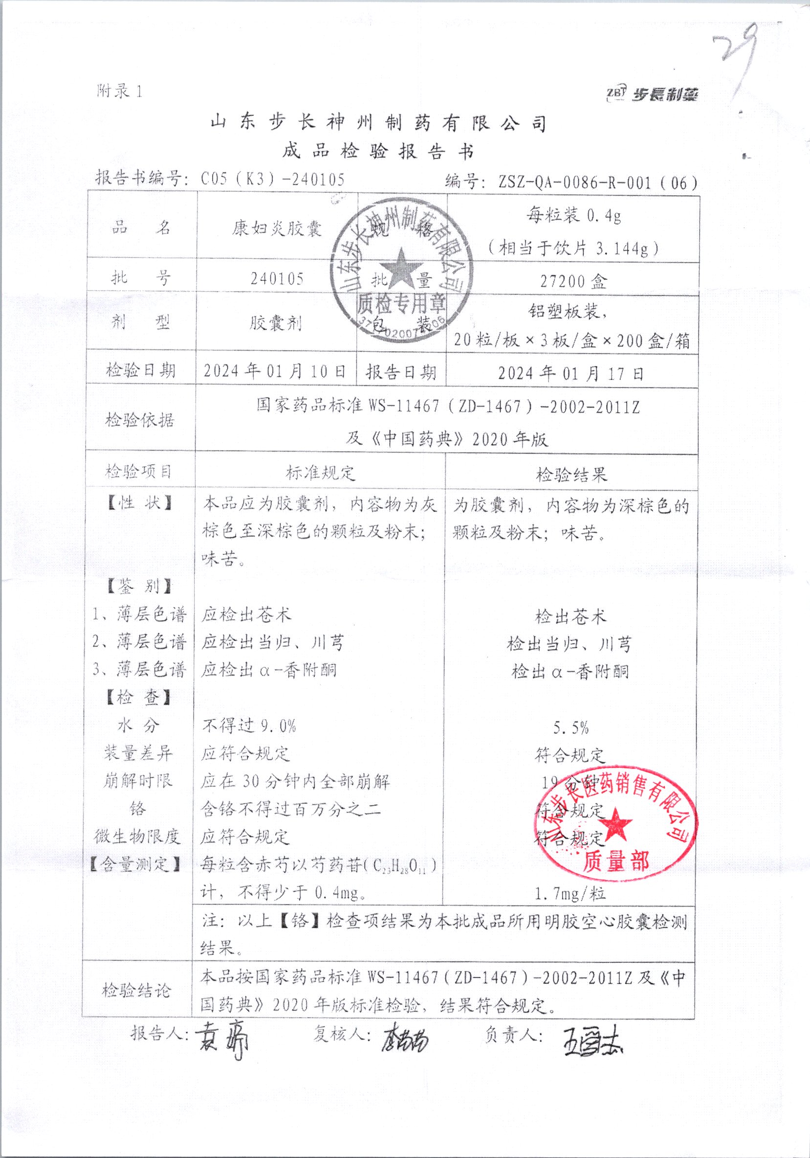 康婦炎膠囊 | 0.4g*60粒 | 240105 | 查看詳情 |