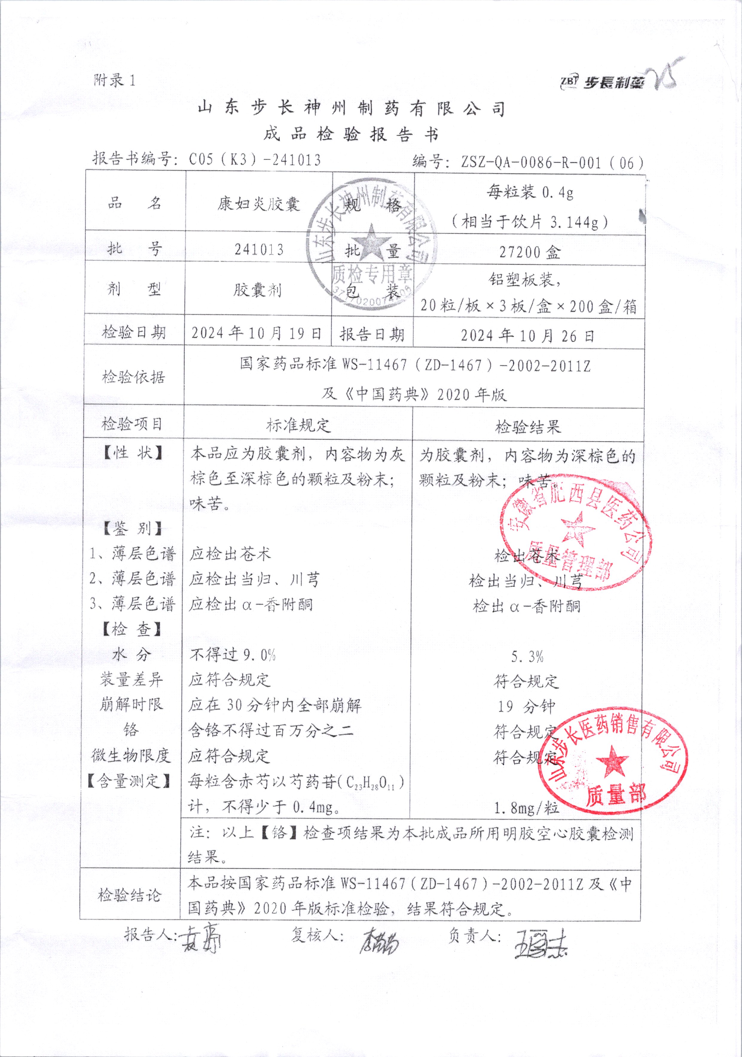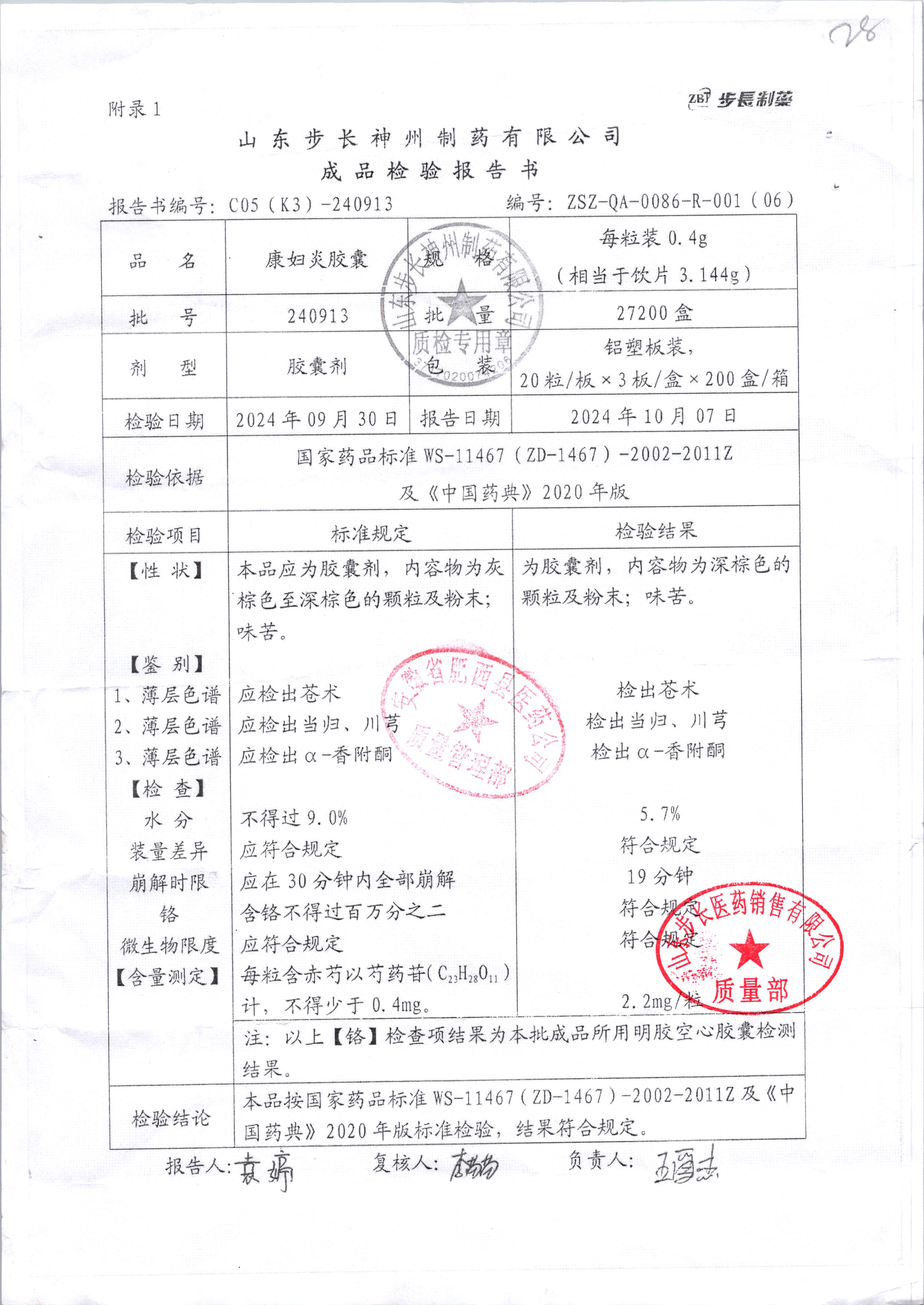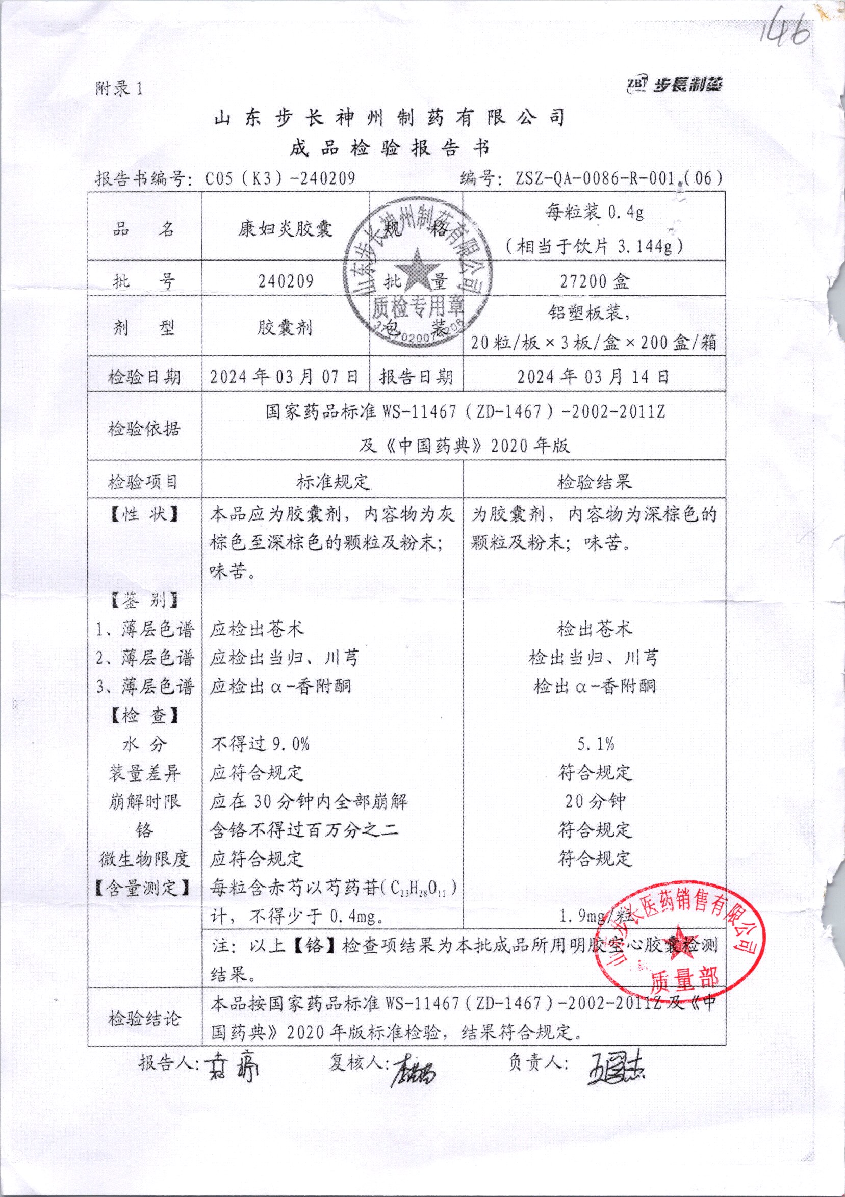 康婦炎膠囊 | 0.4g*60粒 | 240209 | 查看詳情 |