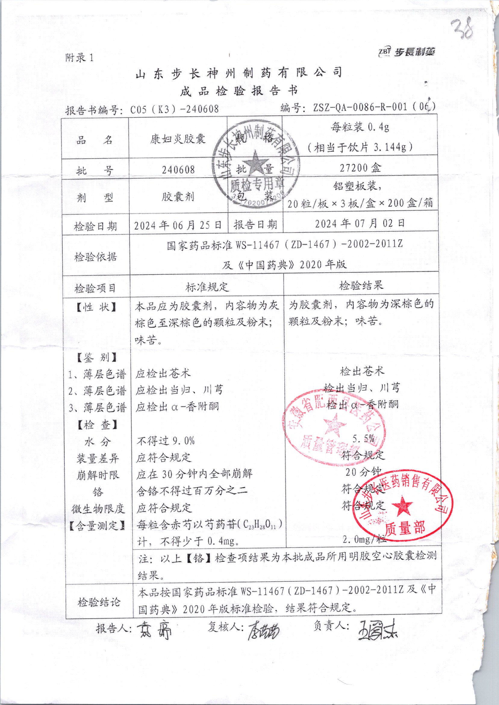 康婦炎膠囊 | 0.4g*60粒 | 240608 | 查看詳情 |
