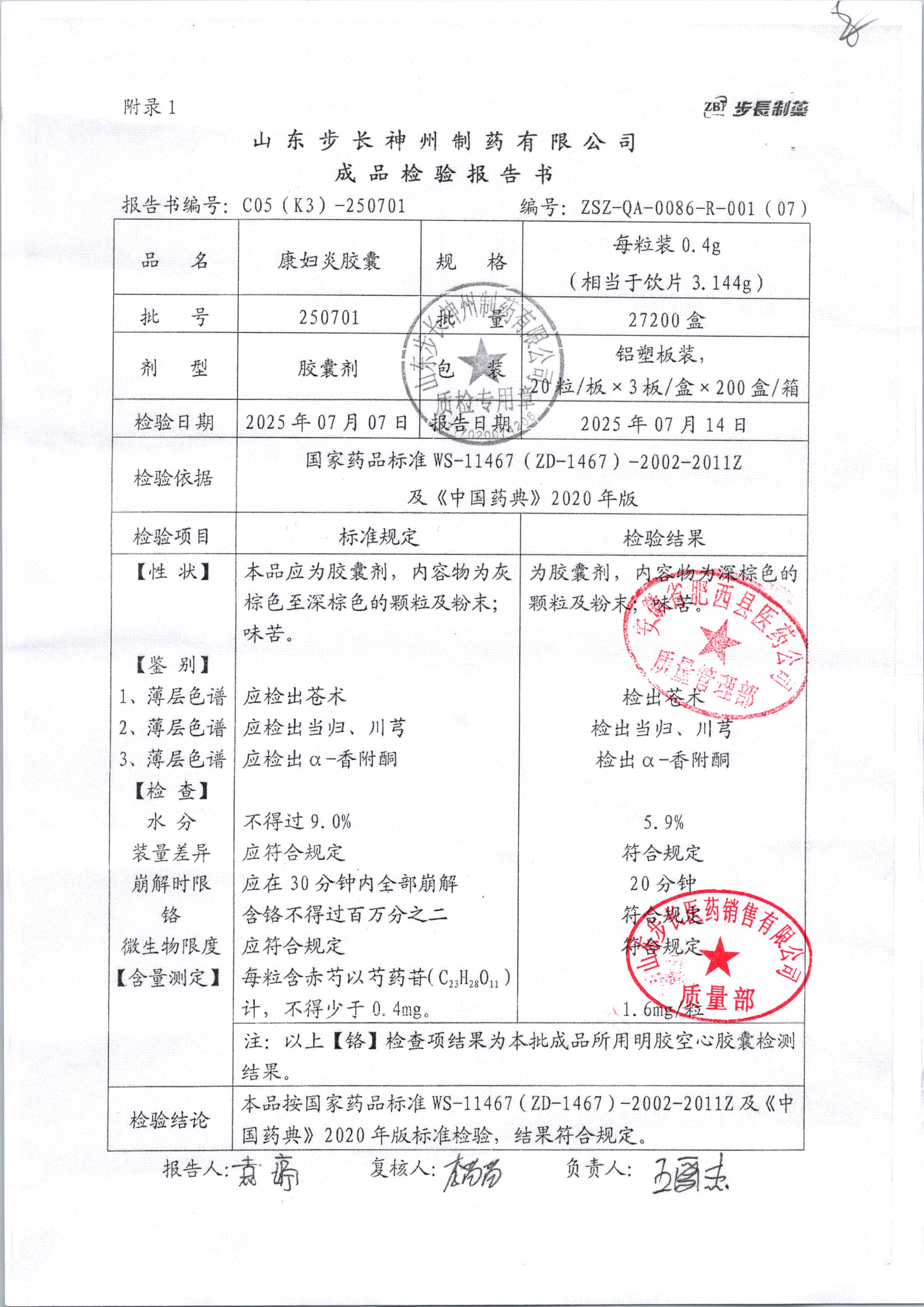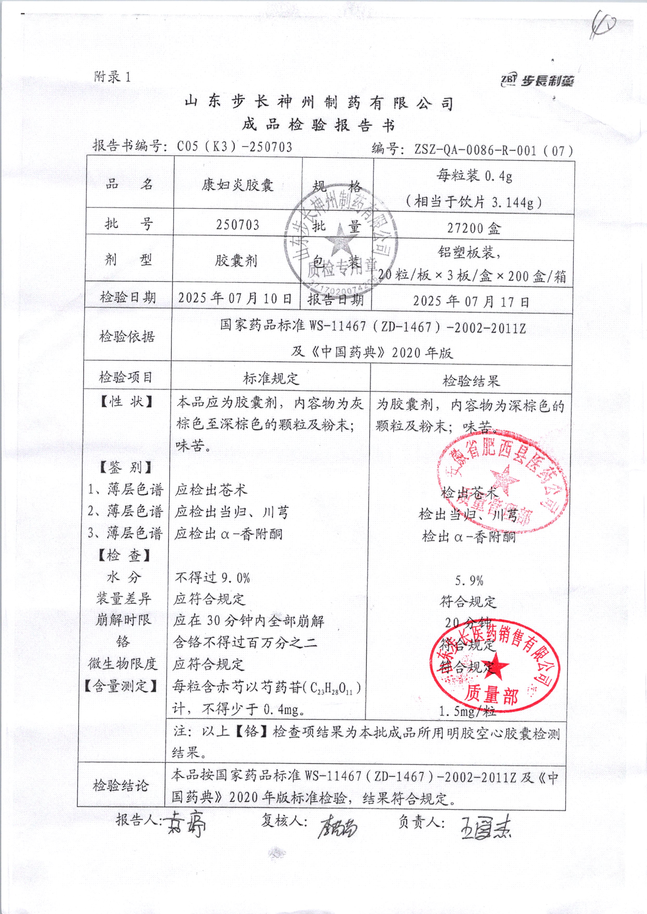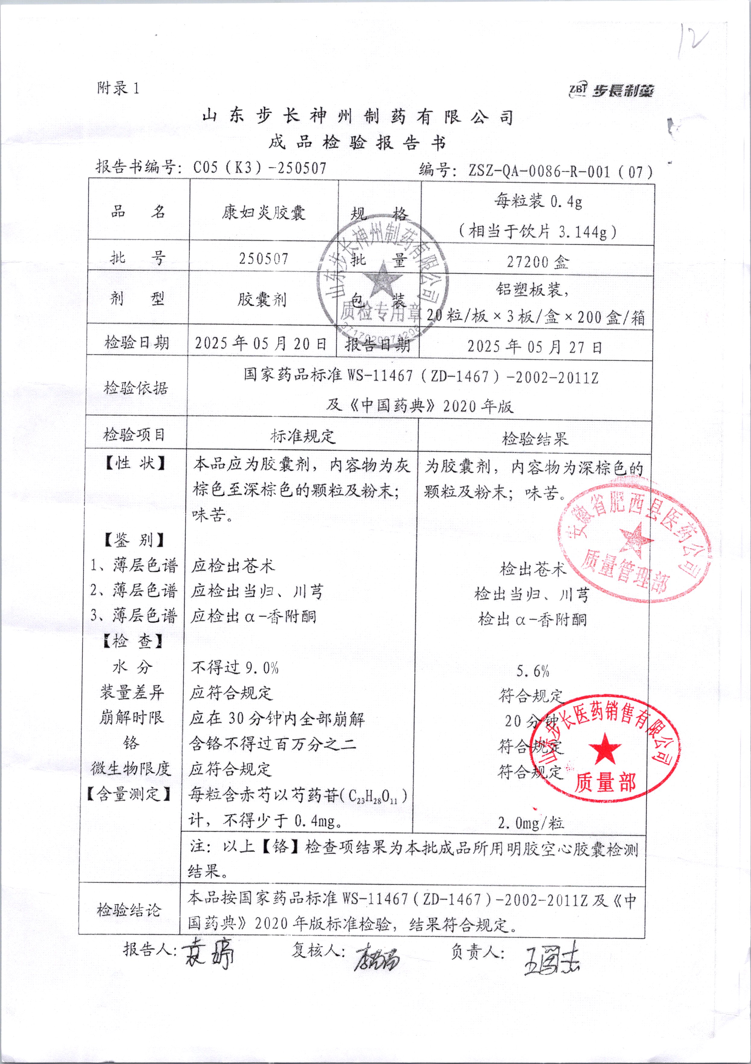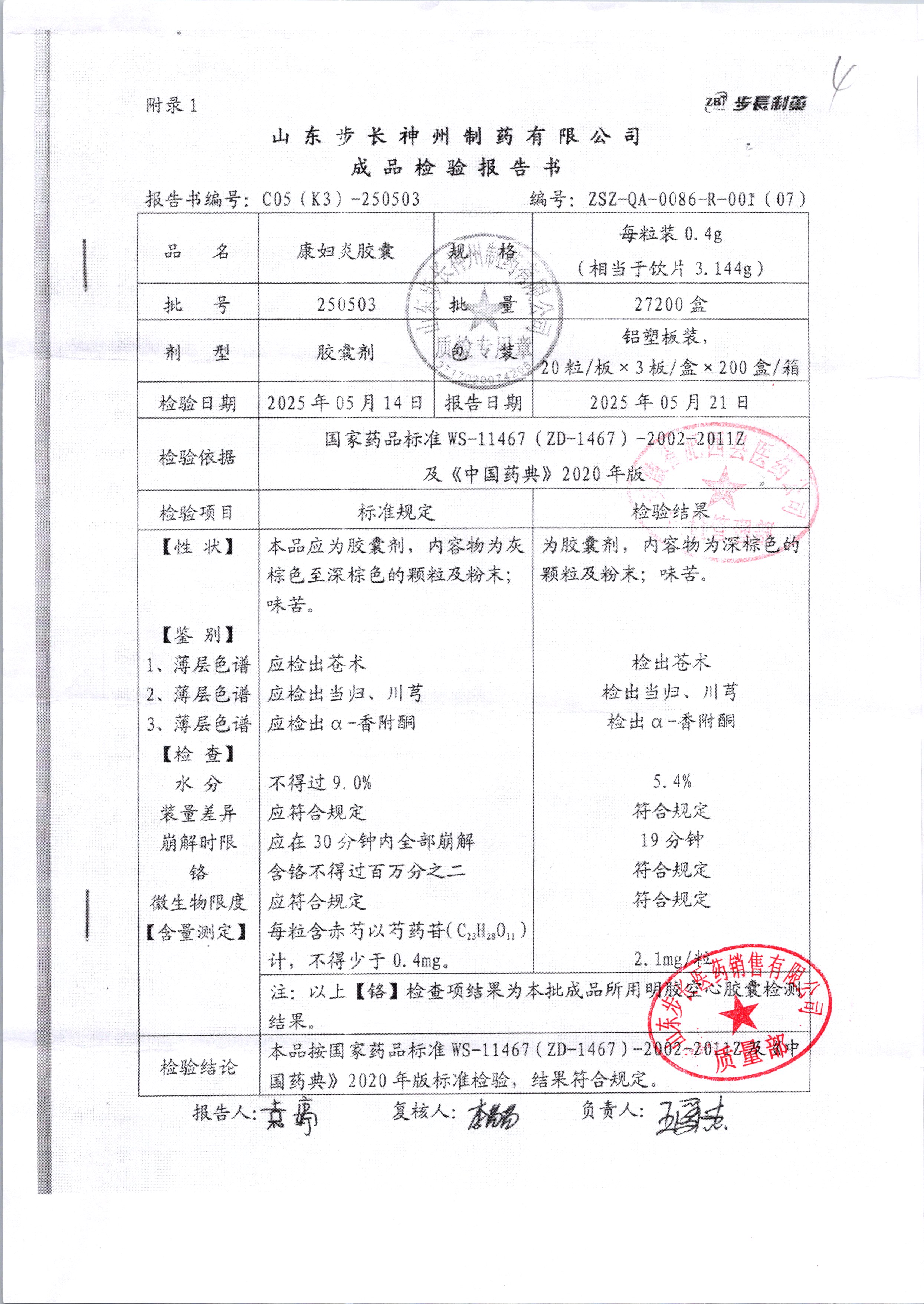 康婦炎膠囊 | 0.4g*60粒 | 250507 | 查看詳情 |