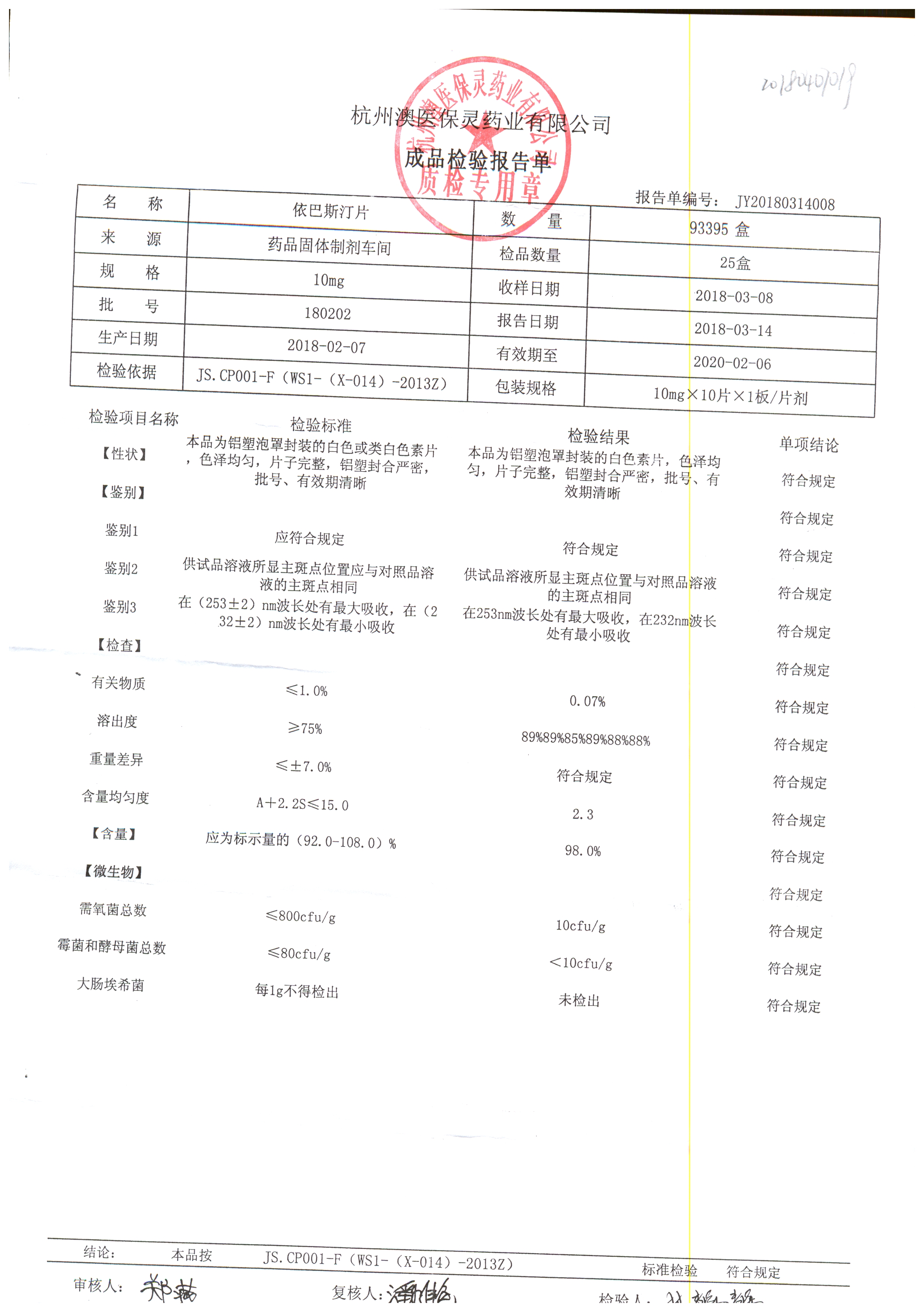 依巴斯汀片 | 10mg*10s | 180202 | 查看詳情 |