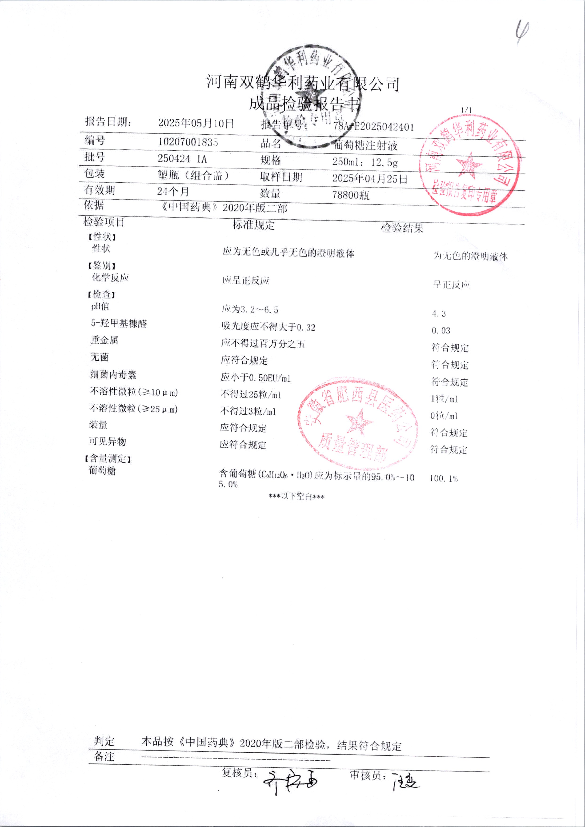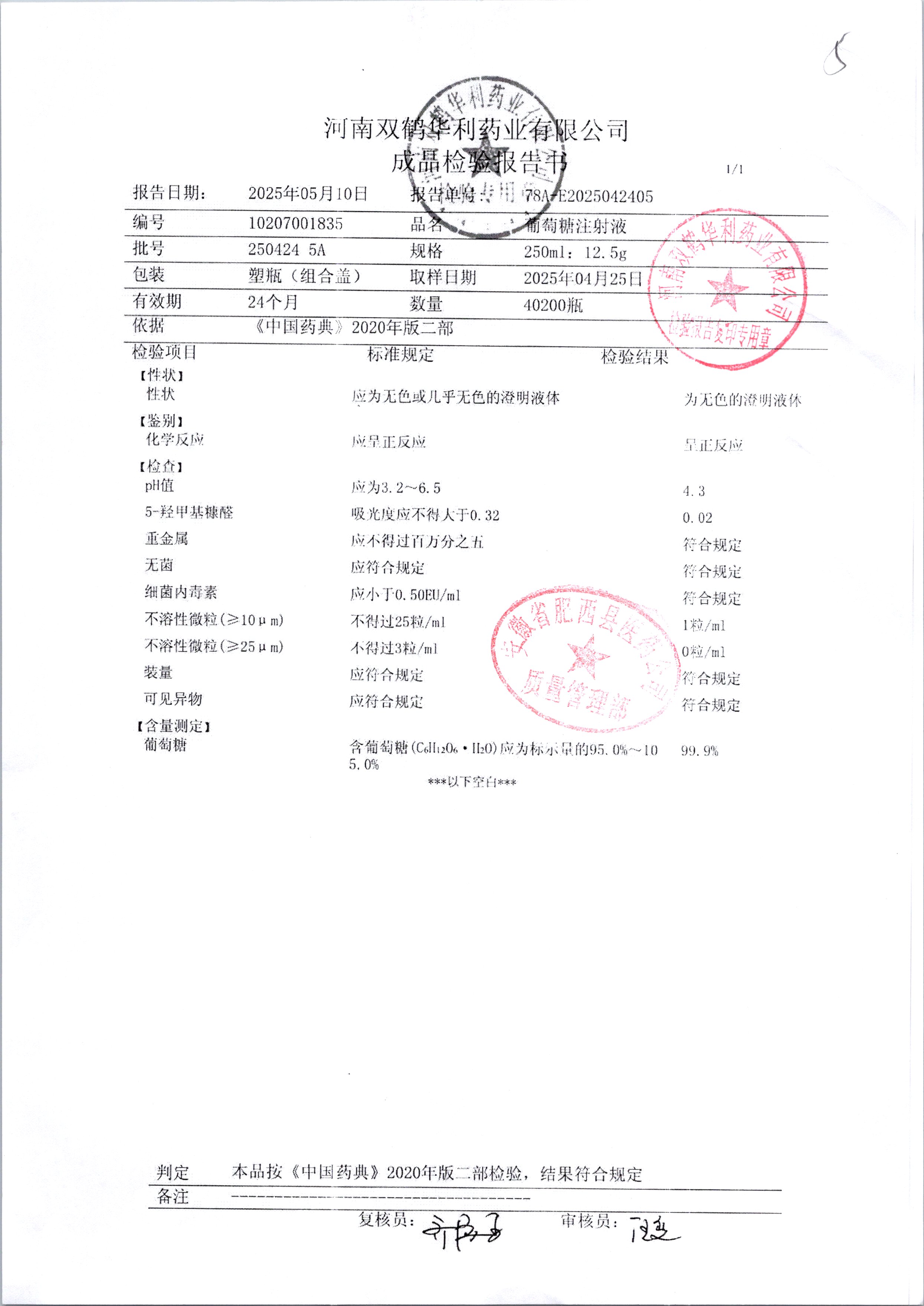 葡萄糖注射液 250ml 250424 1A 查看詳情