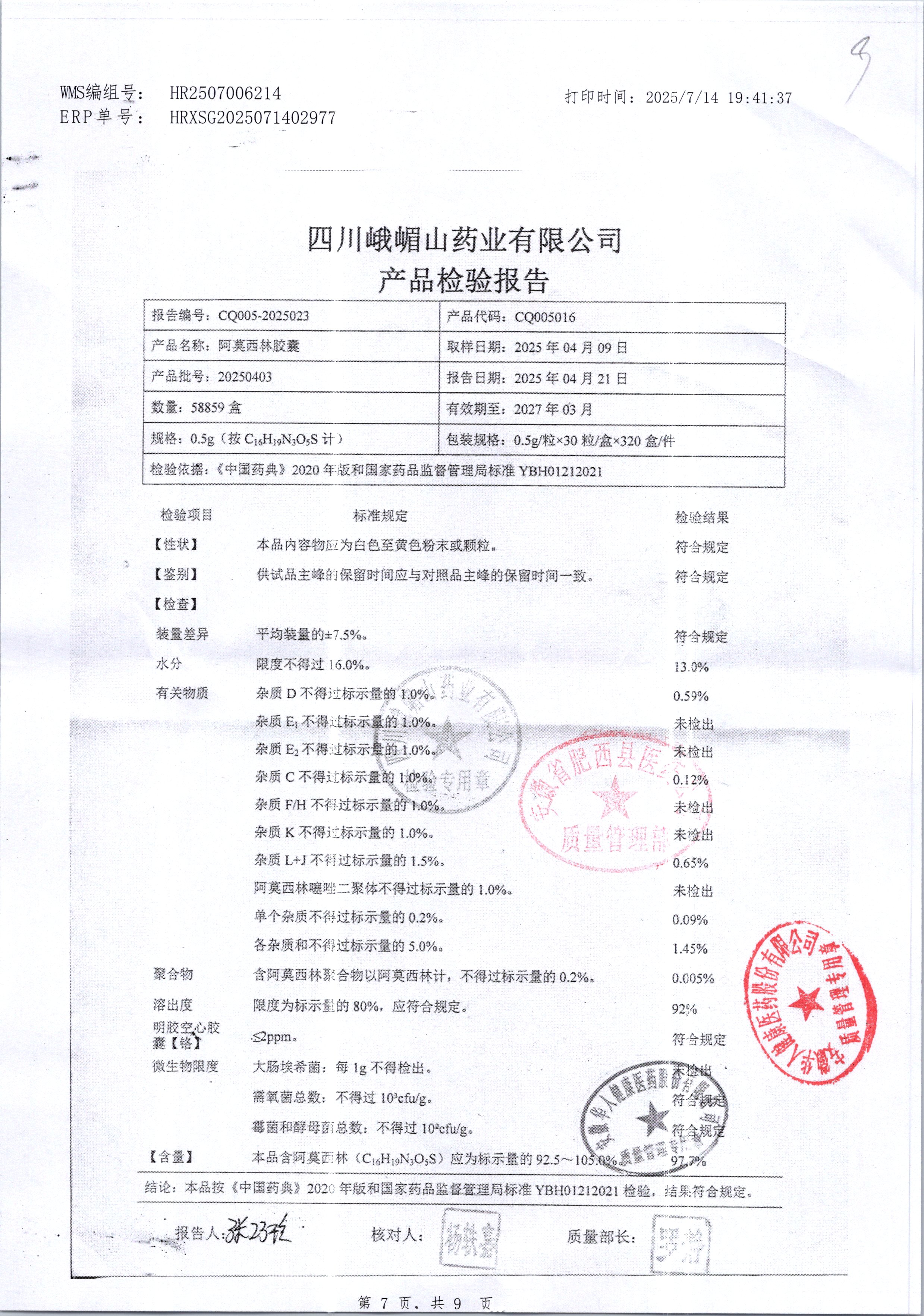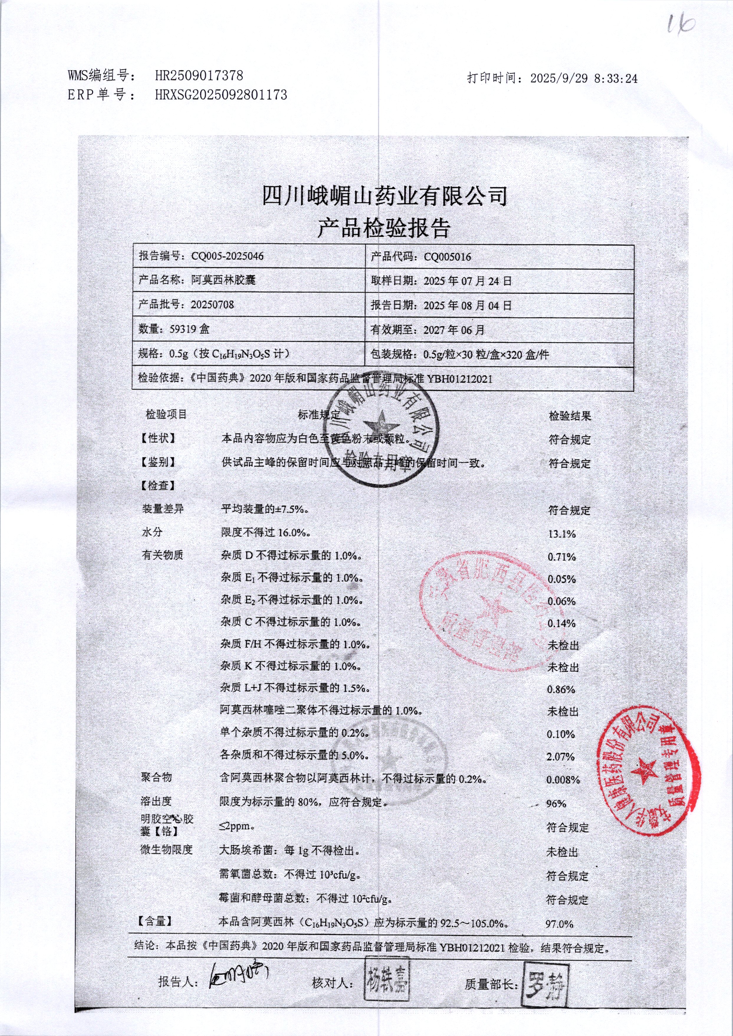 阿莫西林膠囊 0.5g*30片 20250708 查看詳情