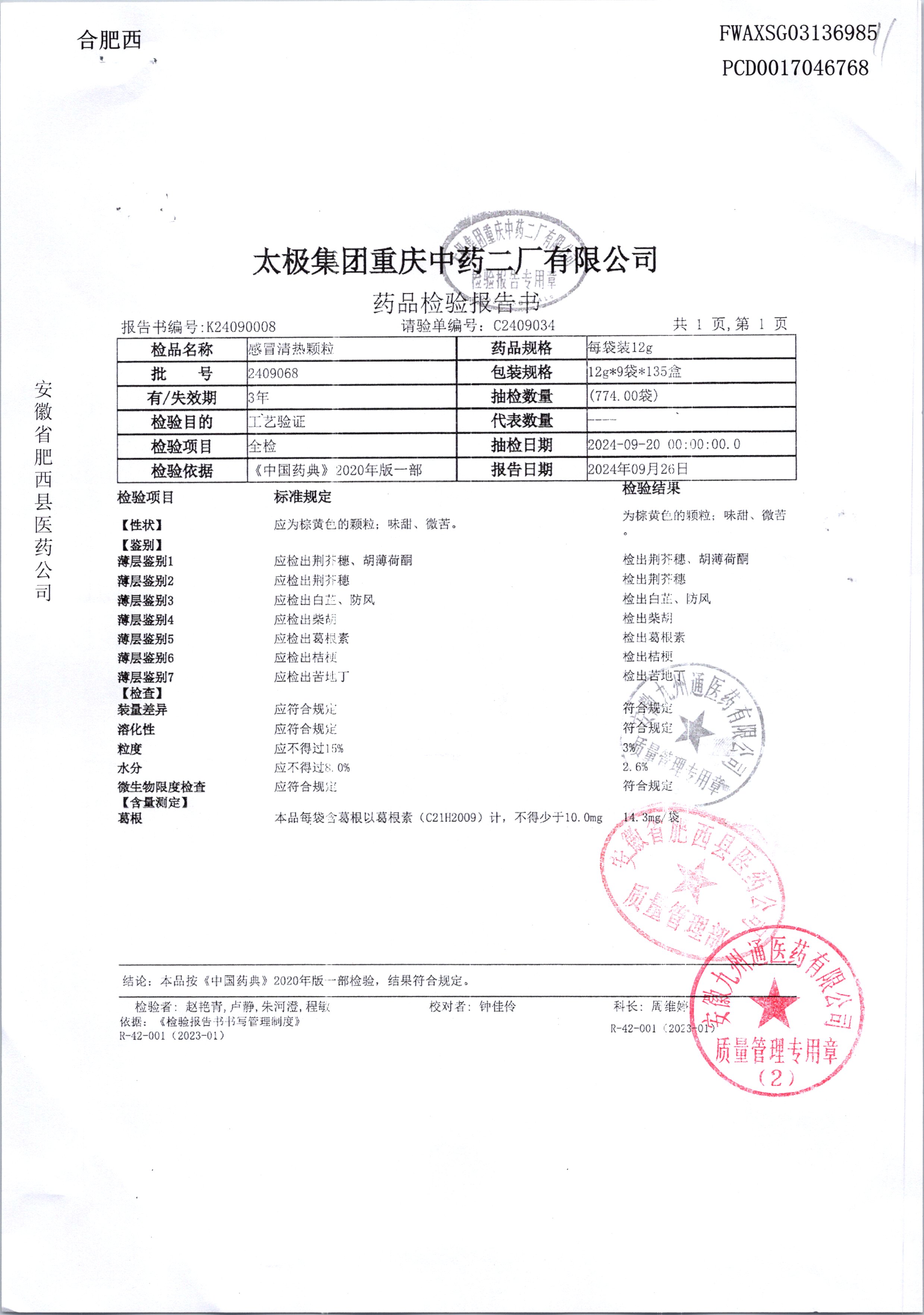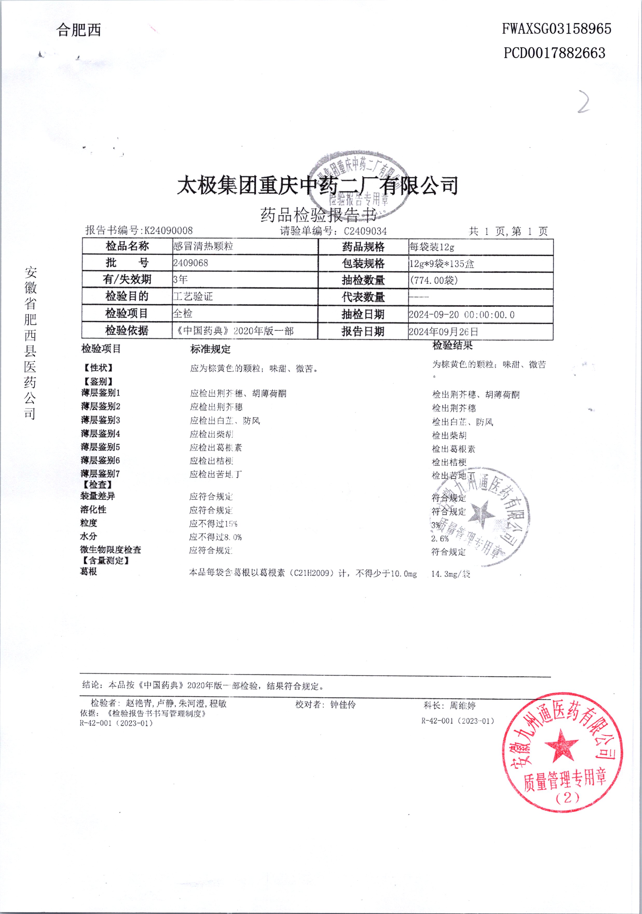 | 感冒清熱顆粒 | 12g*12*9 | 2409068 | 查看詳情 |