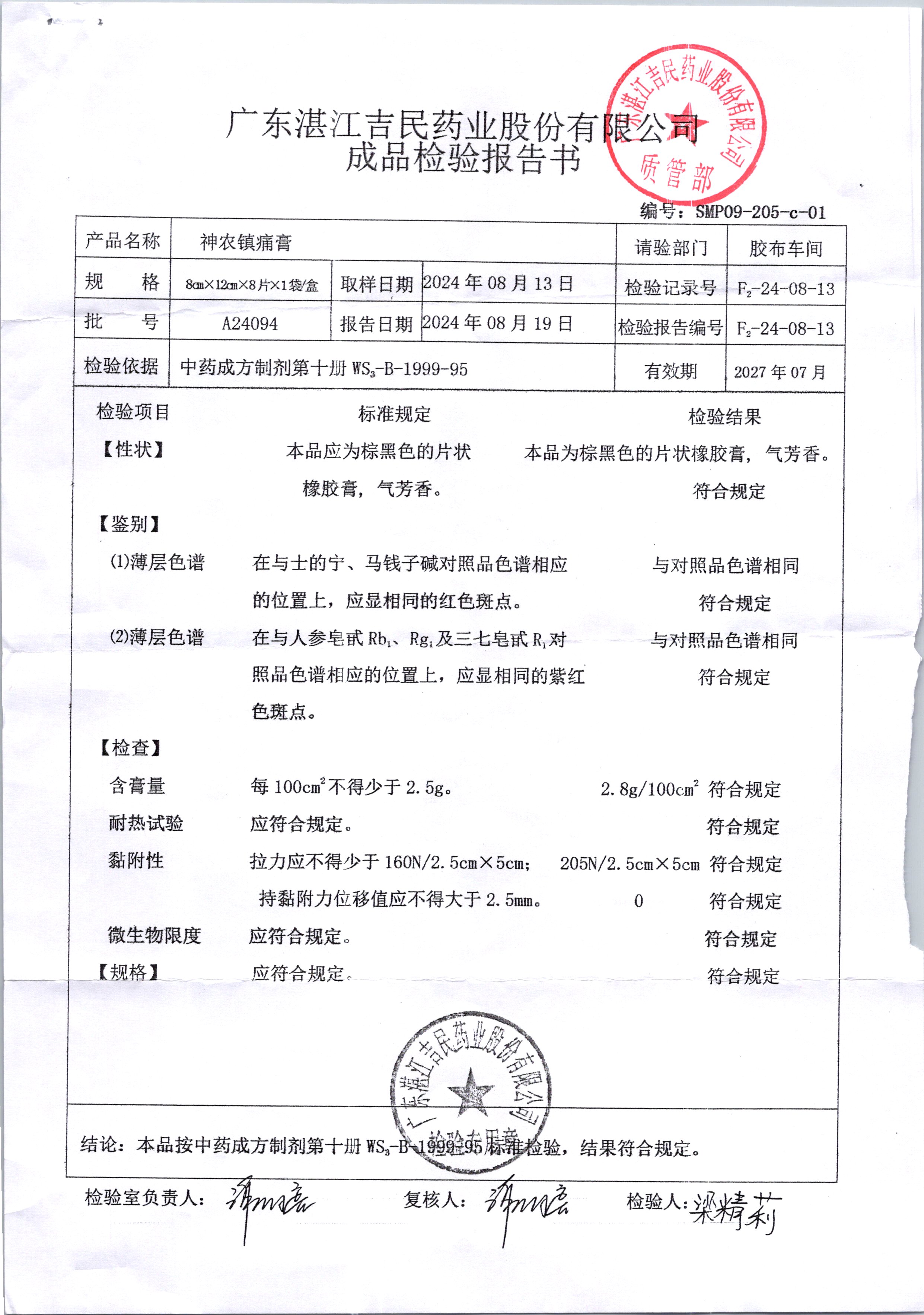 名稱 規(guī)格 批號 藥檢報告