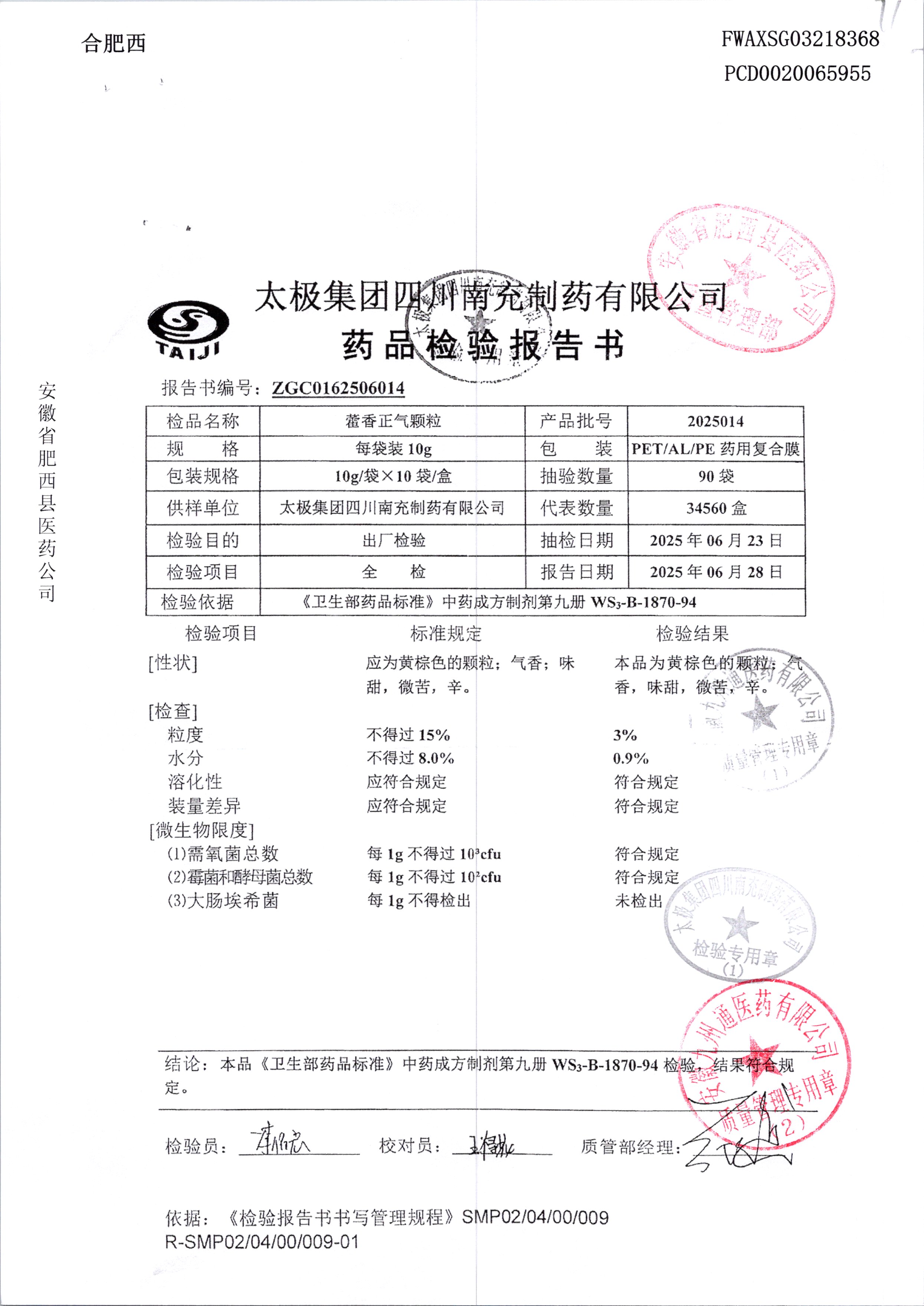 藿香正氣顆粒 10ml*10袋 2025014 查看詳情