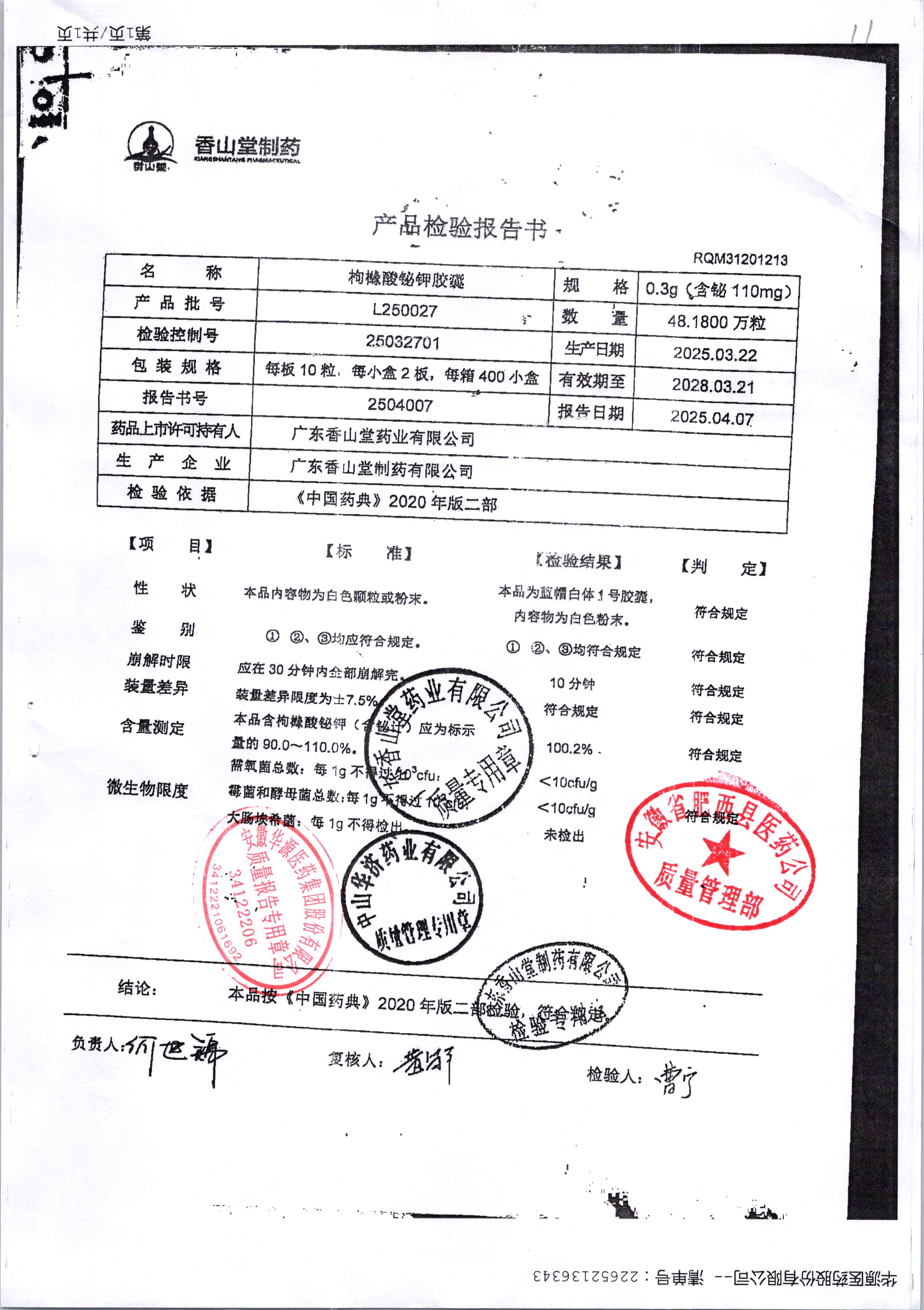枸櫞酸鉍鉀膠囊 0.3g*20片 L250027 查看詳情