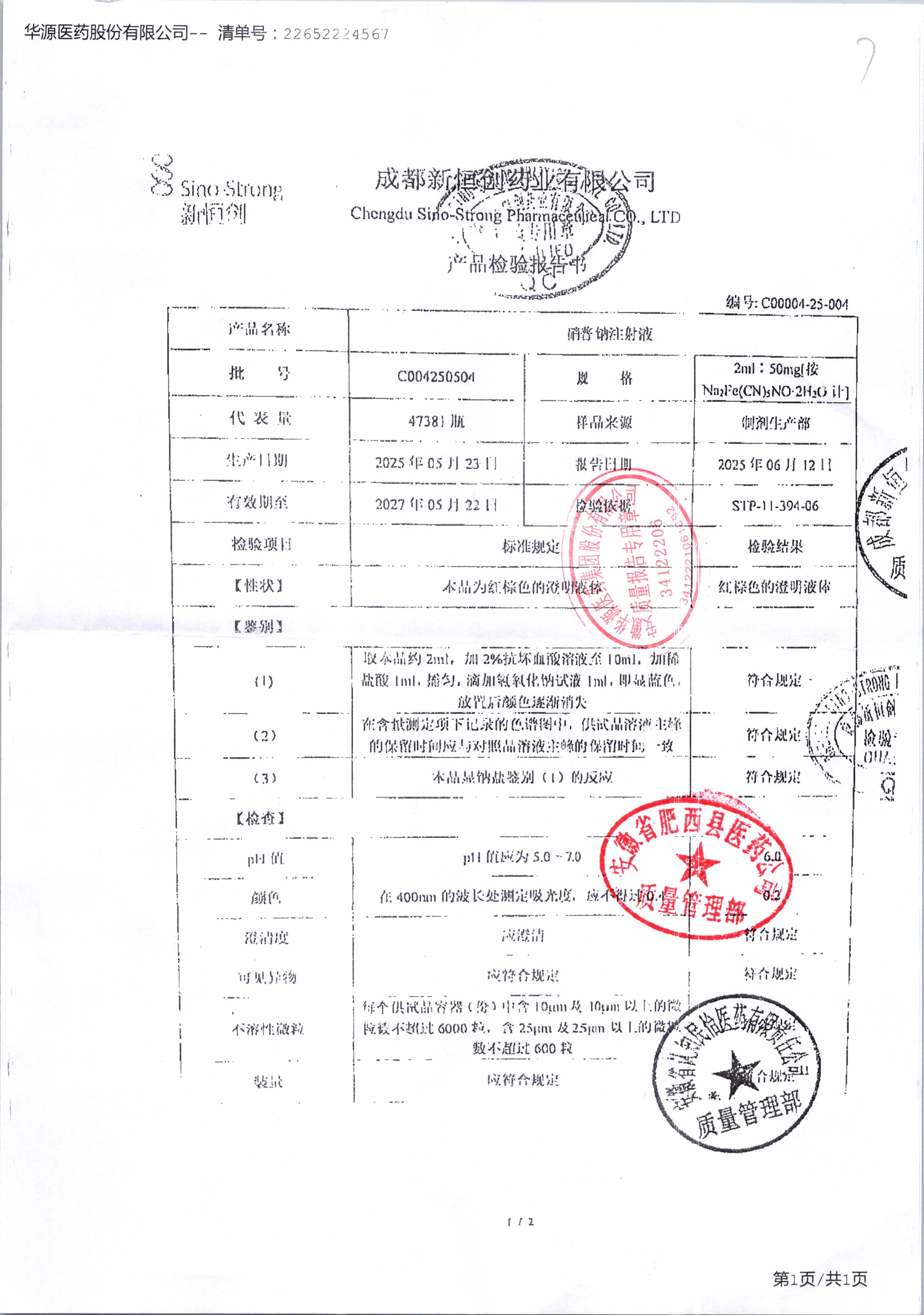 硝普鈉注射液 2ml:50mg C004250504/1 查看詳情