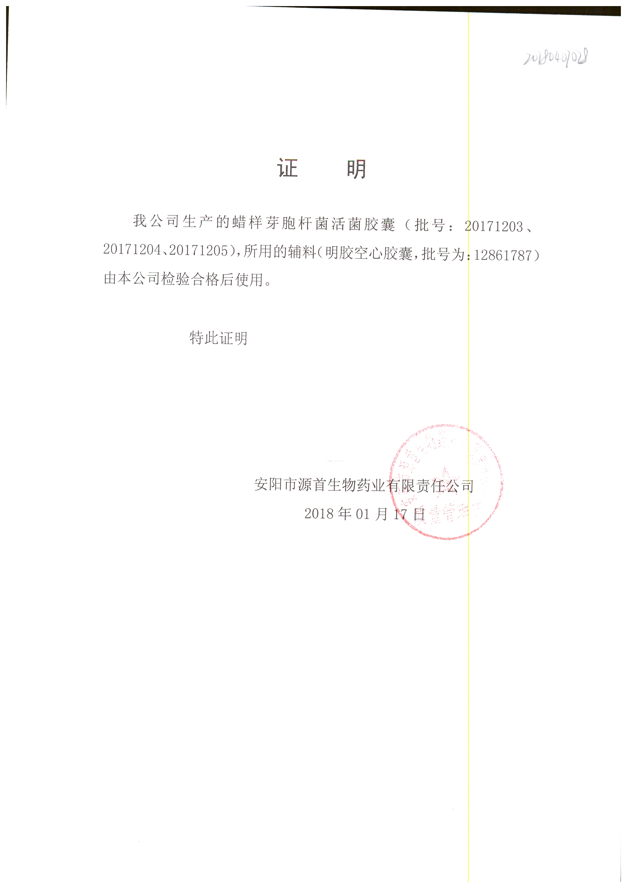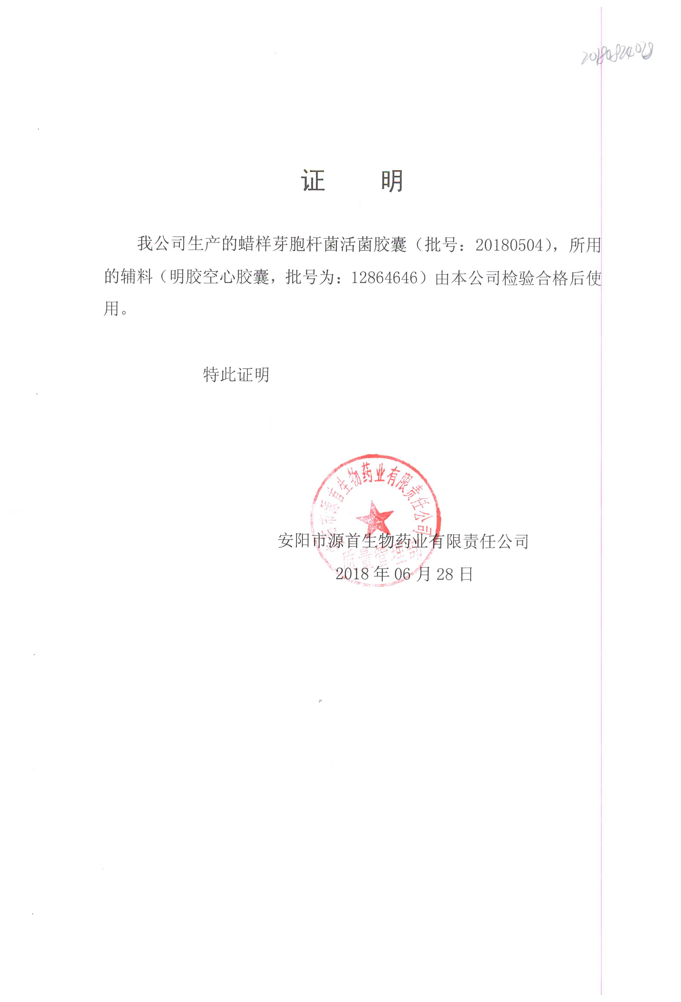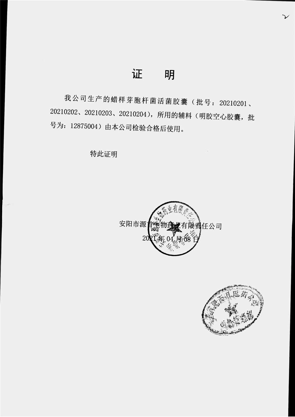 蠟樣芽孢桿菌活菌膠囊(源首) | 0.25g | 20180504(2/3) | 查看詳情 |