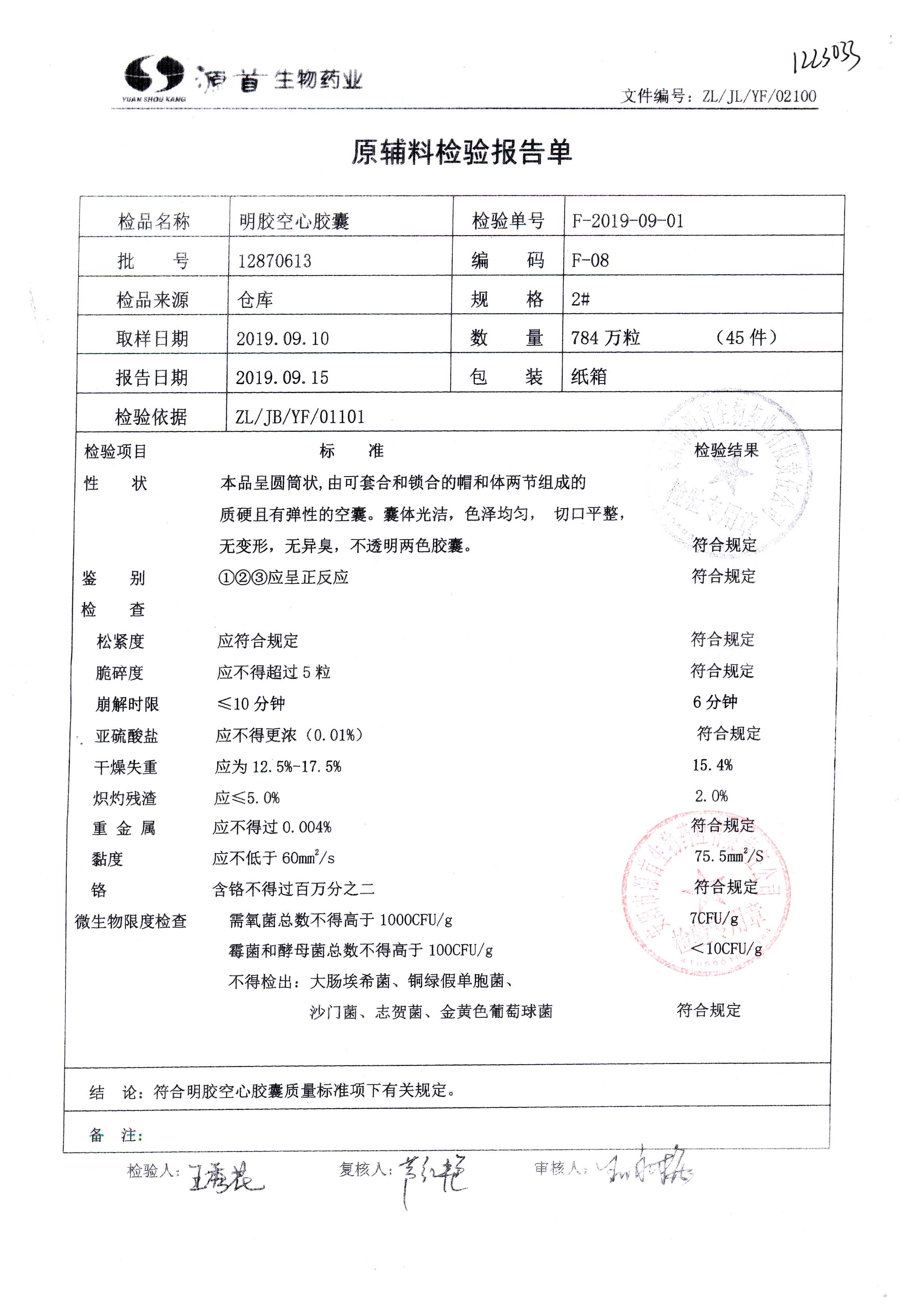 蠟樣芽孢桿菌活菌膠囊(源首) | 0.25g | 20191201(2/3) | 查看詳情 |
