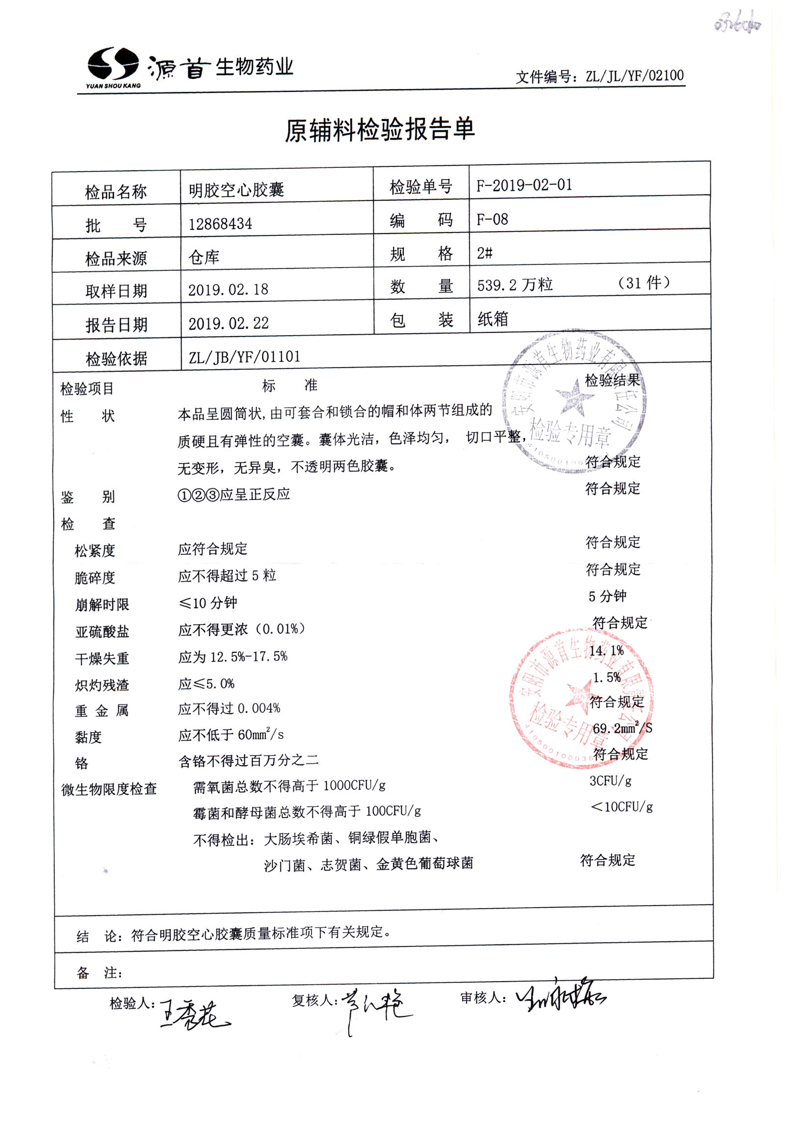 蠟樣芽孢桿菌活菌膠囊(源首) | 0.25g | 20190602(3/3) | 查看詳情 |