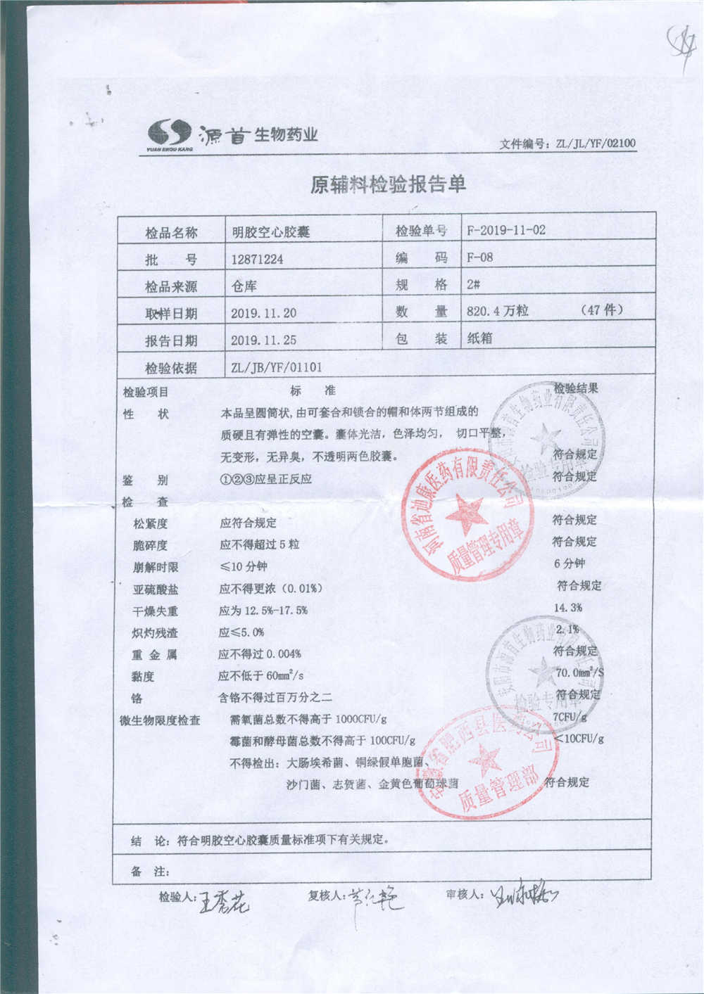 蠟樣芽孢桿菌活菌膠囊(源首) | 0.25g | 20191201(1/3) | 查看詳情 |