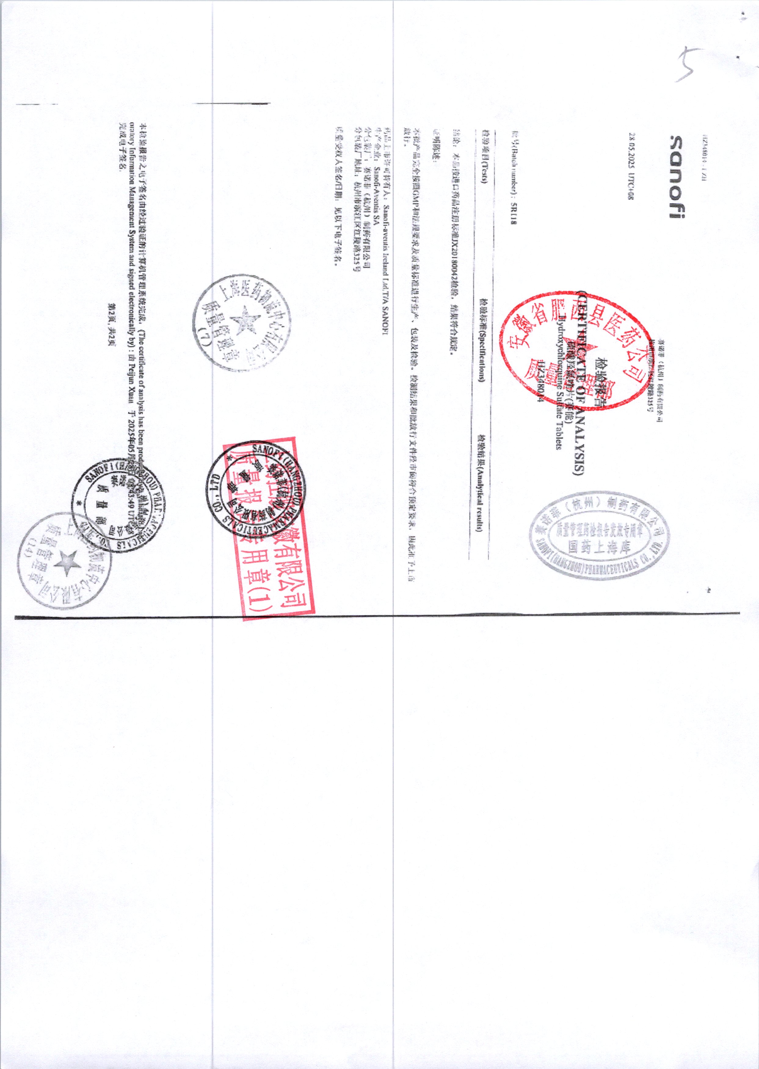 名稱 | 規(guī)格 | 批號 | 藥檢報告 |
