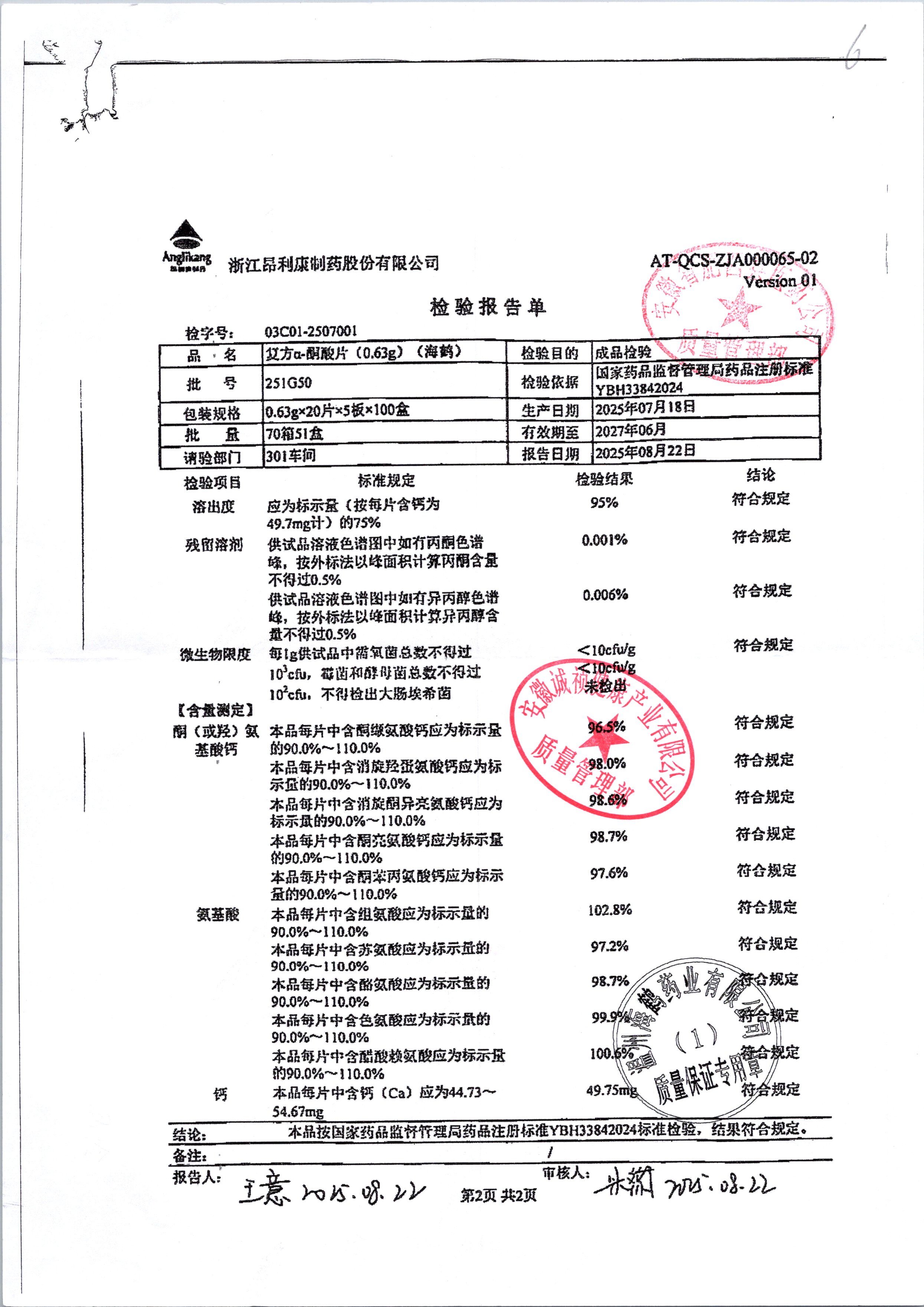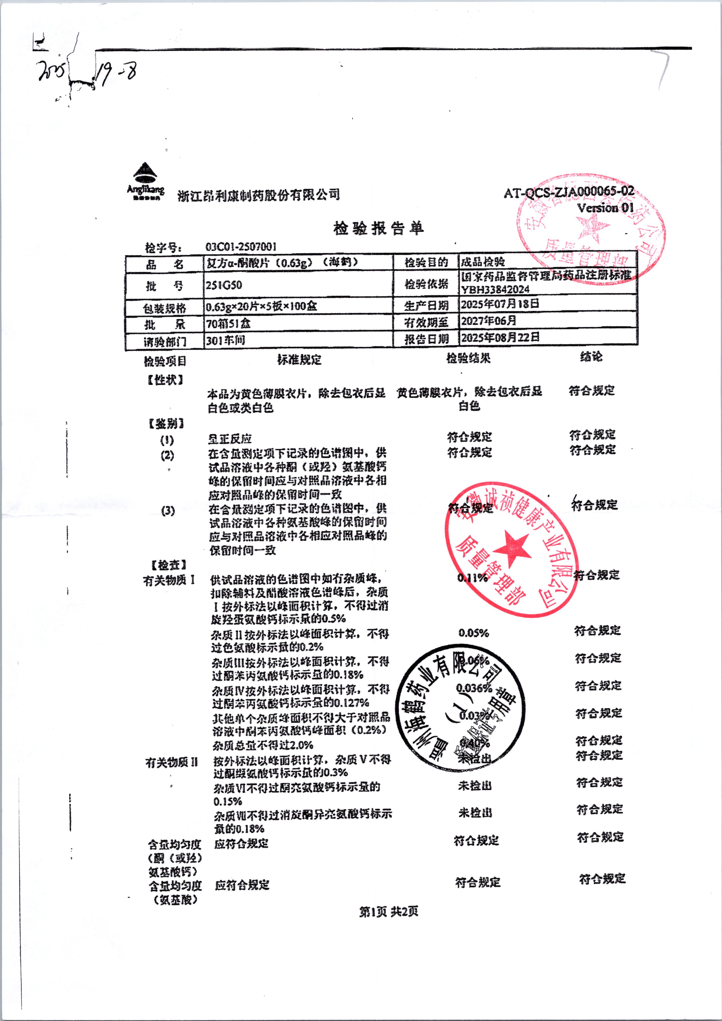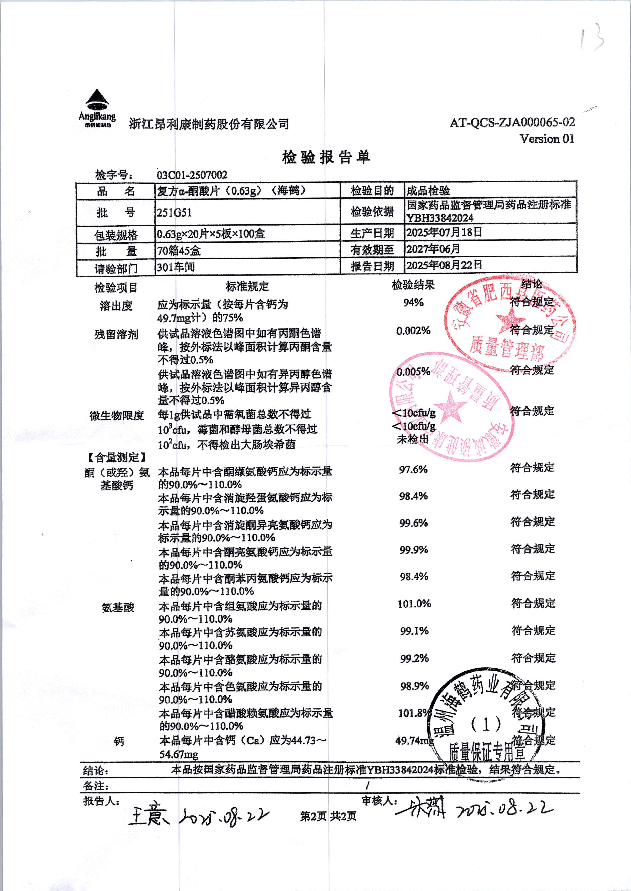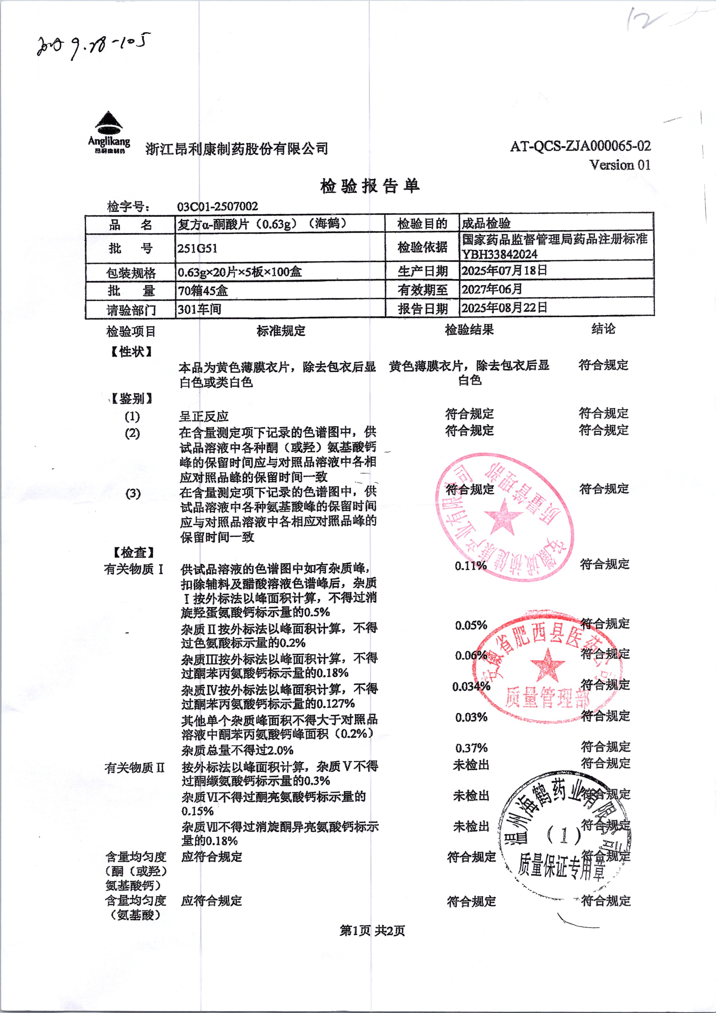 復(fù)方a-酮酸片 | 0.63g*20片*5 | 251G51/1 | 查看詳情 |