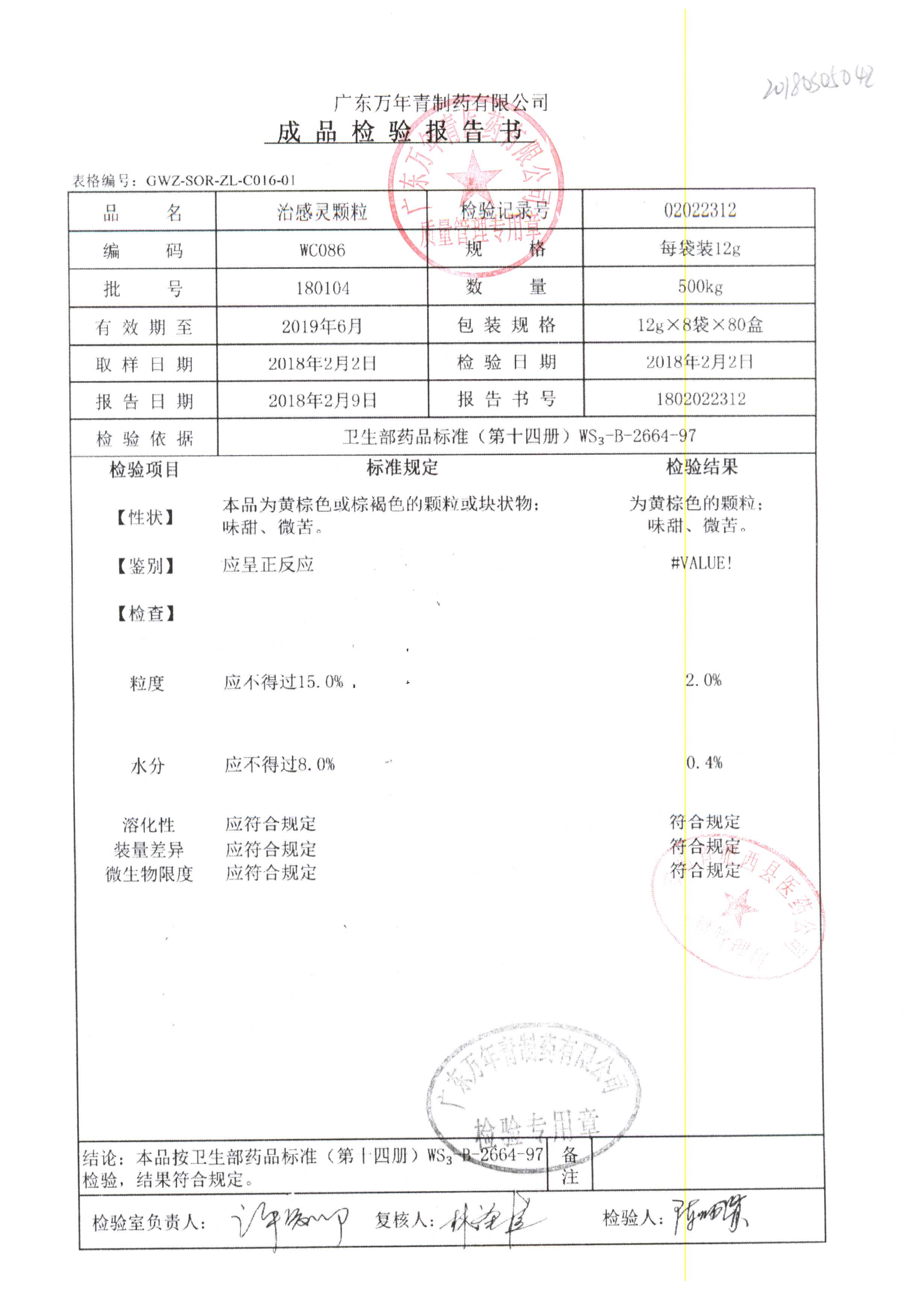 名稱 規(guī)格 批號(hào) 藥檢報(bào)告