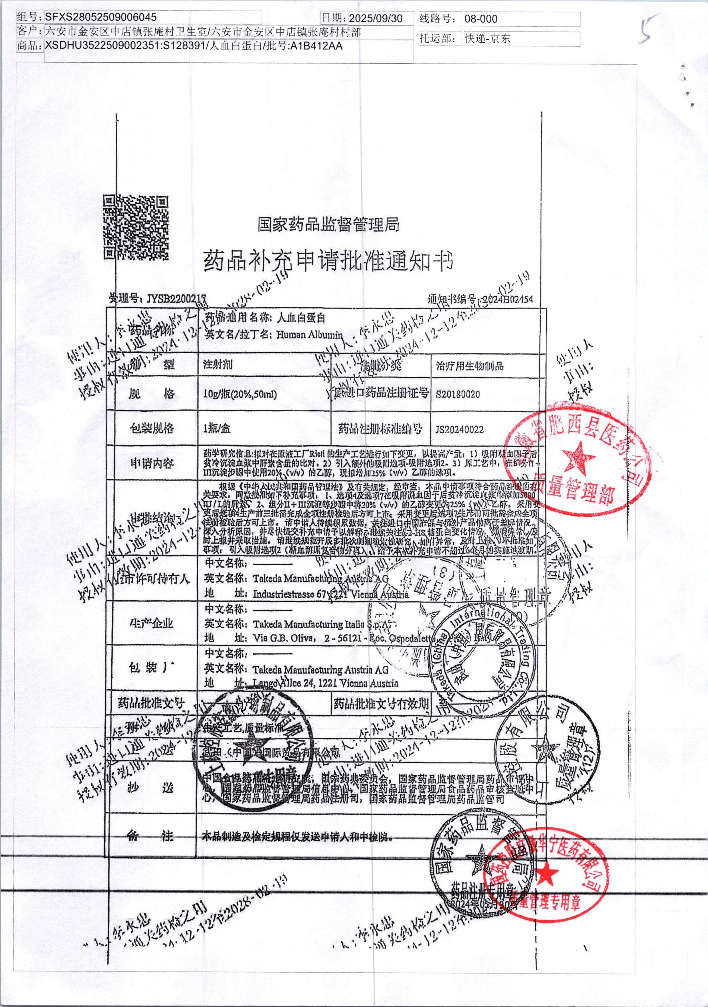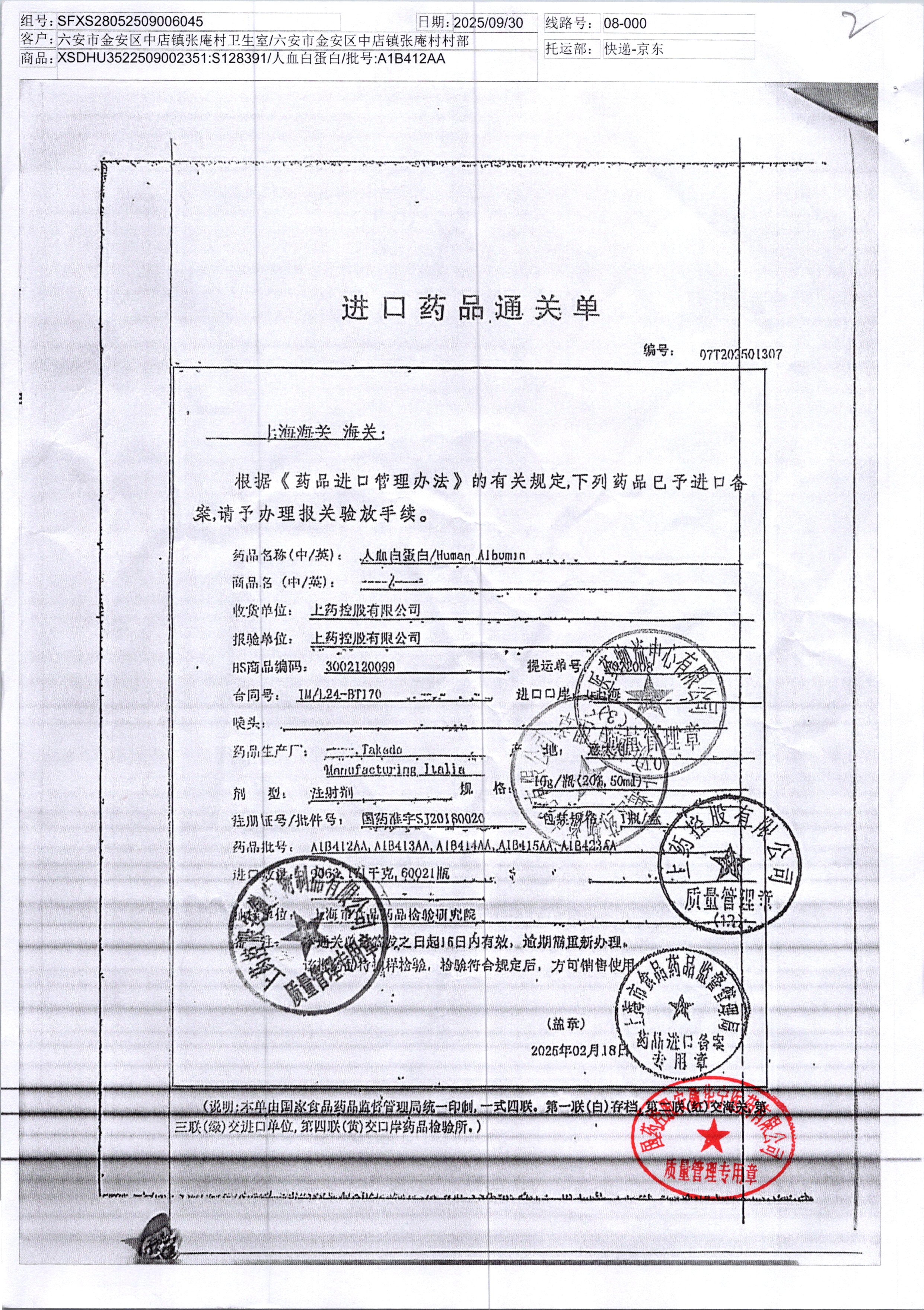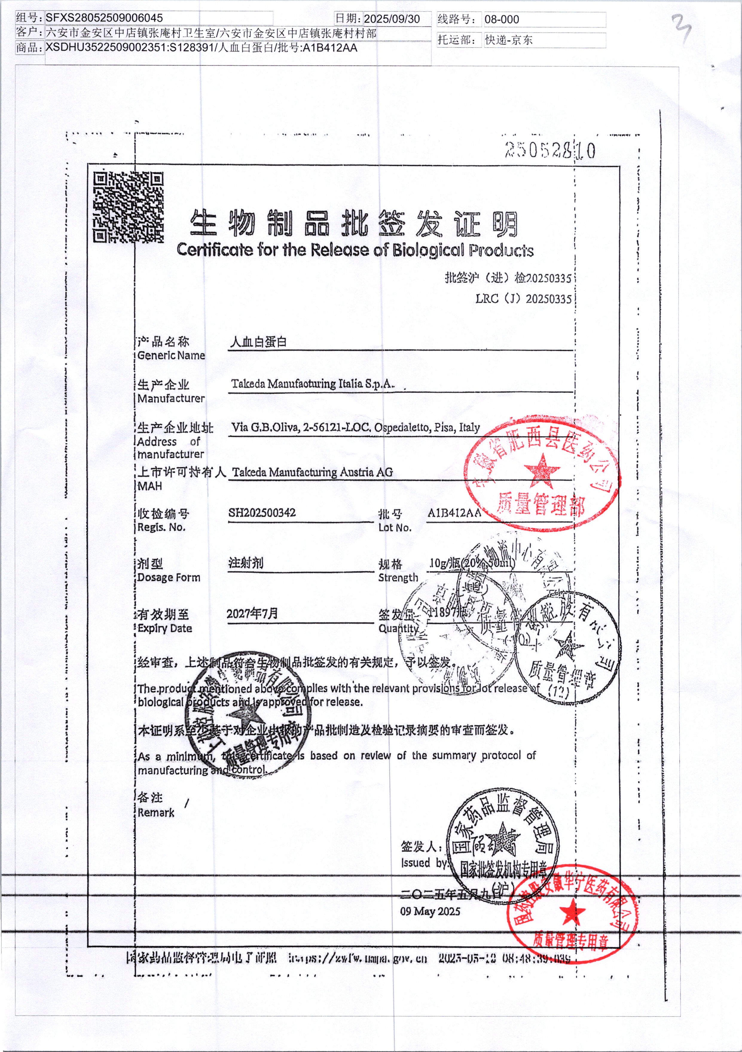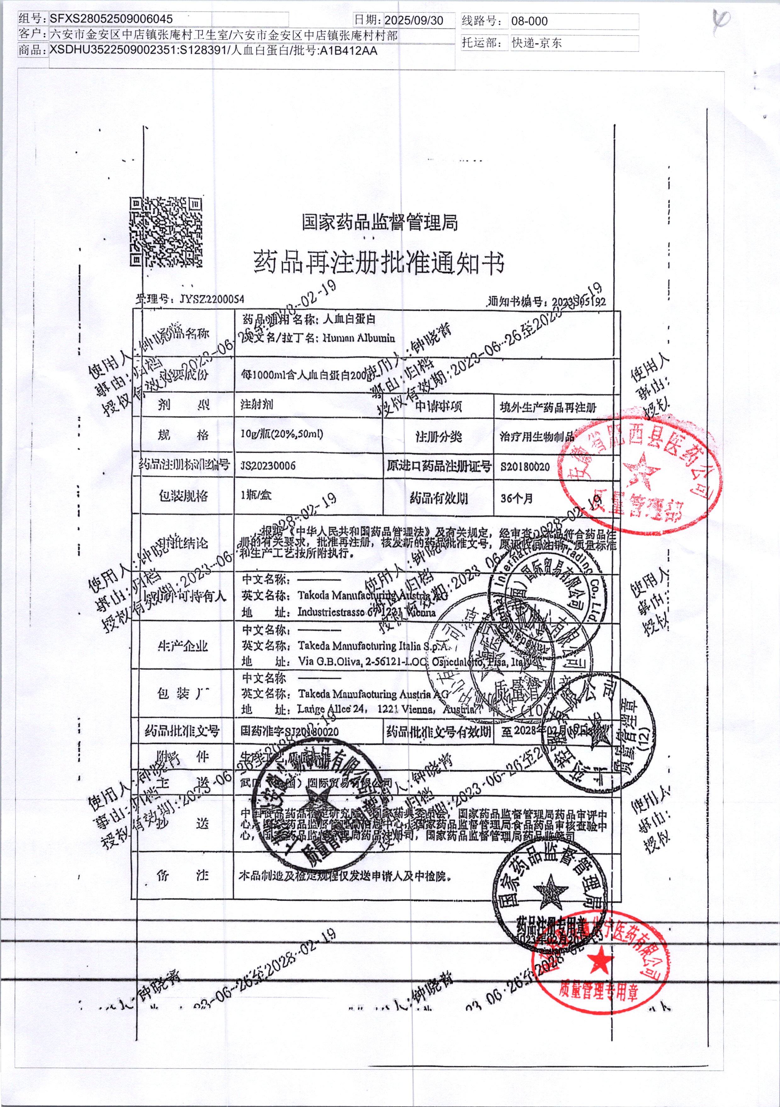 人血白蛋白 10g A1B412AA/3 查看詳情