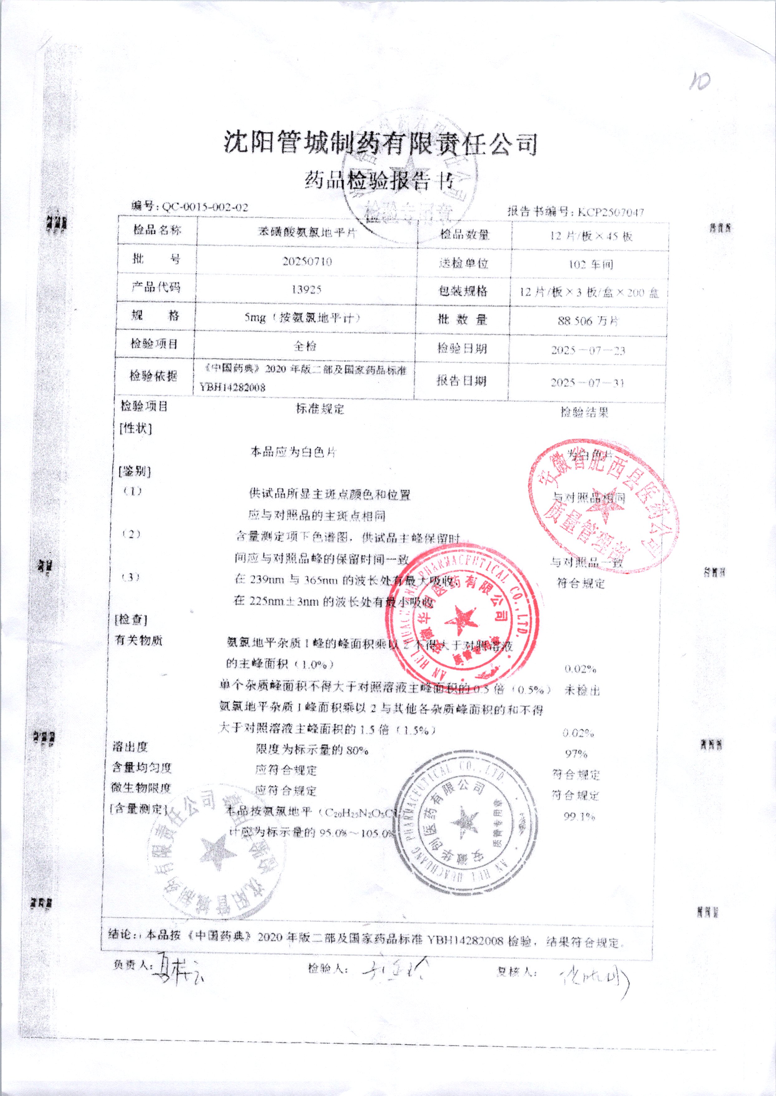 苯磺酸氨氯地平片 36片 20250710 查看詳情