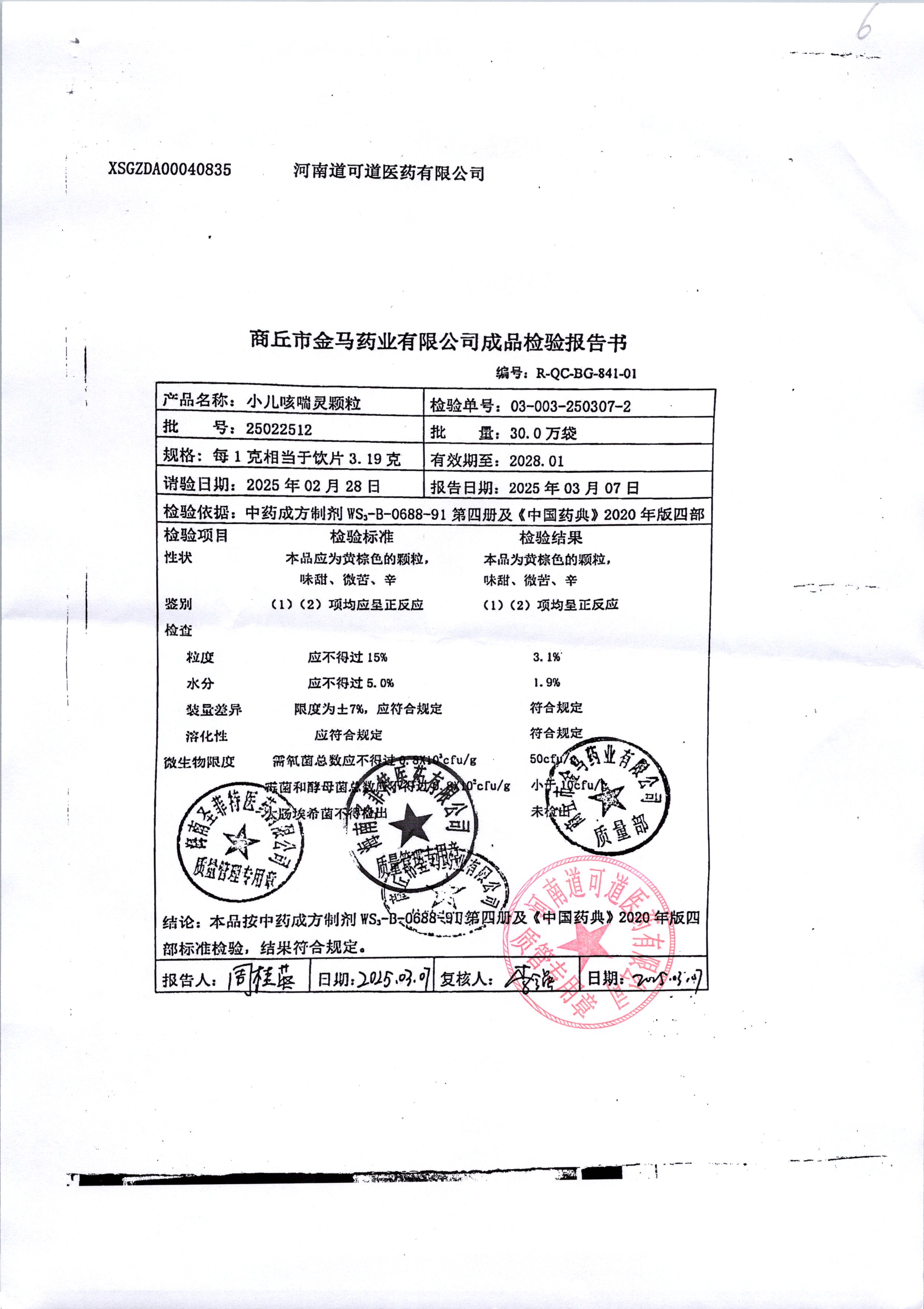 名稱 規(guī)格 批號 藥檢報告