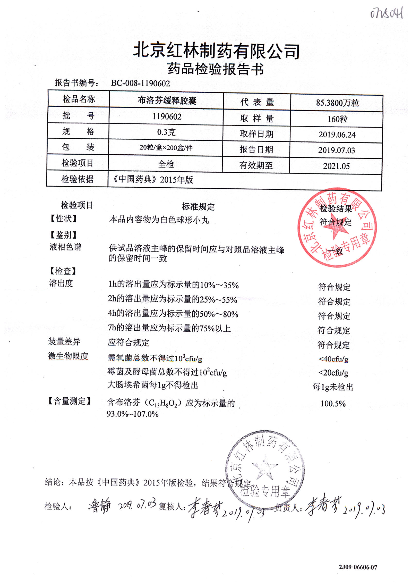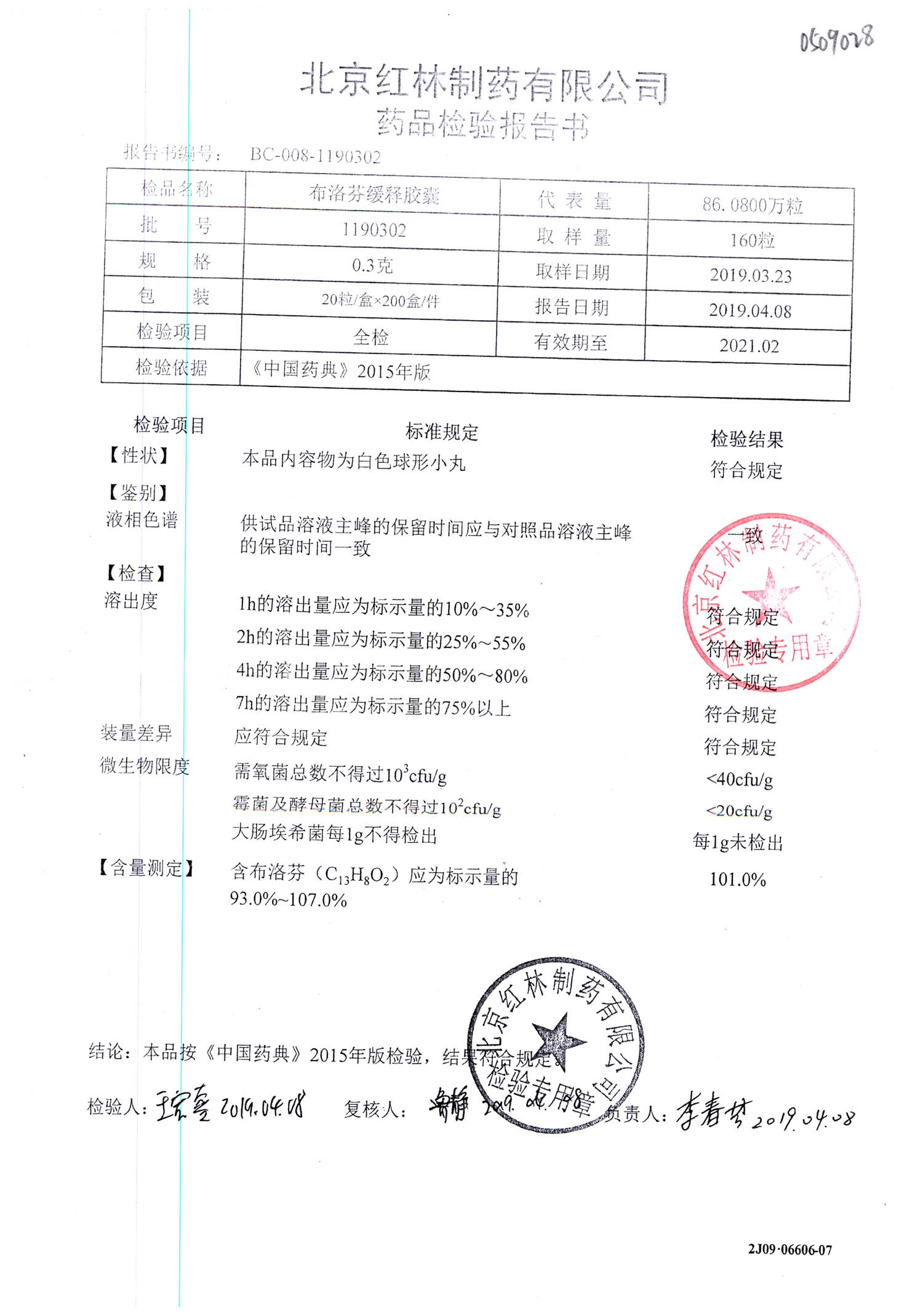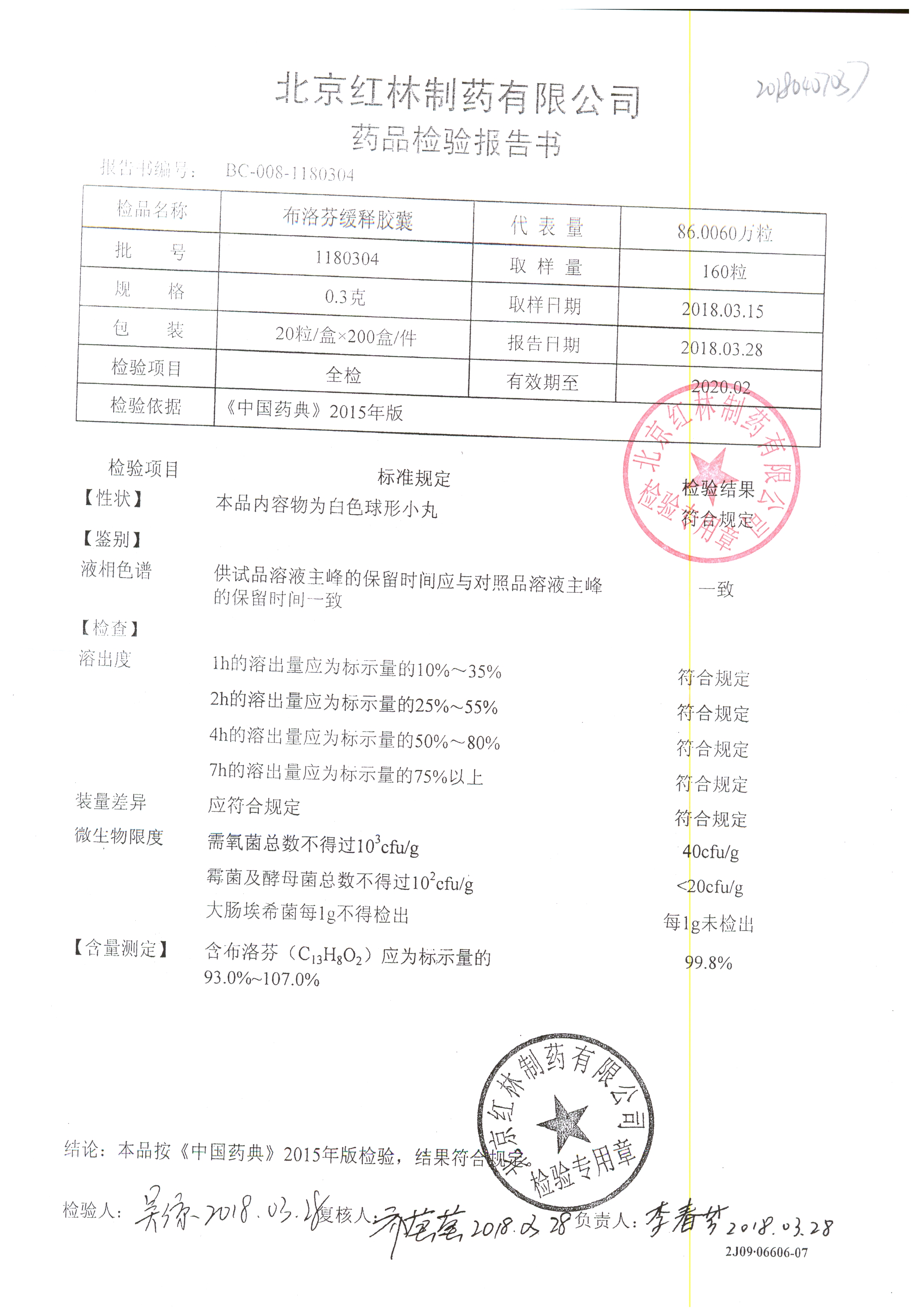布洛芬緩釋膠囊 | 0.3g*20粒 | 1180601(2/2) | 查看詳情 |