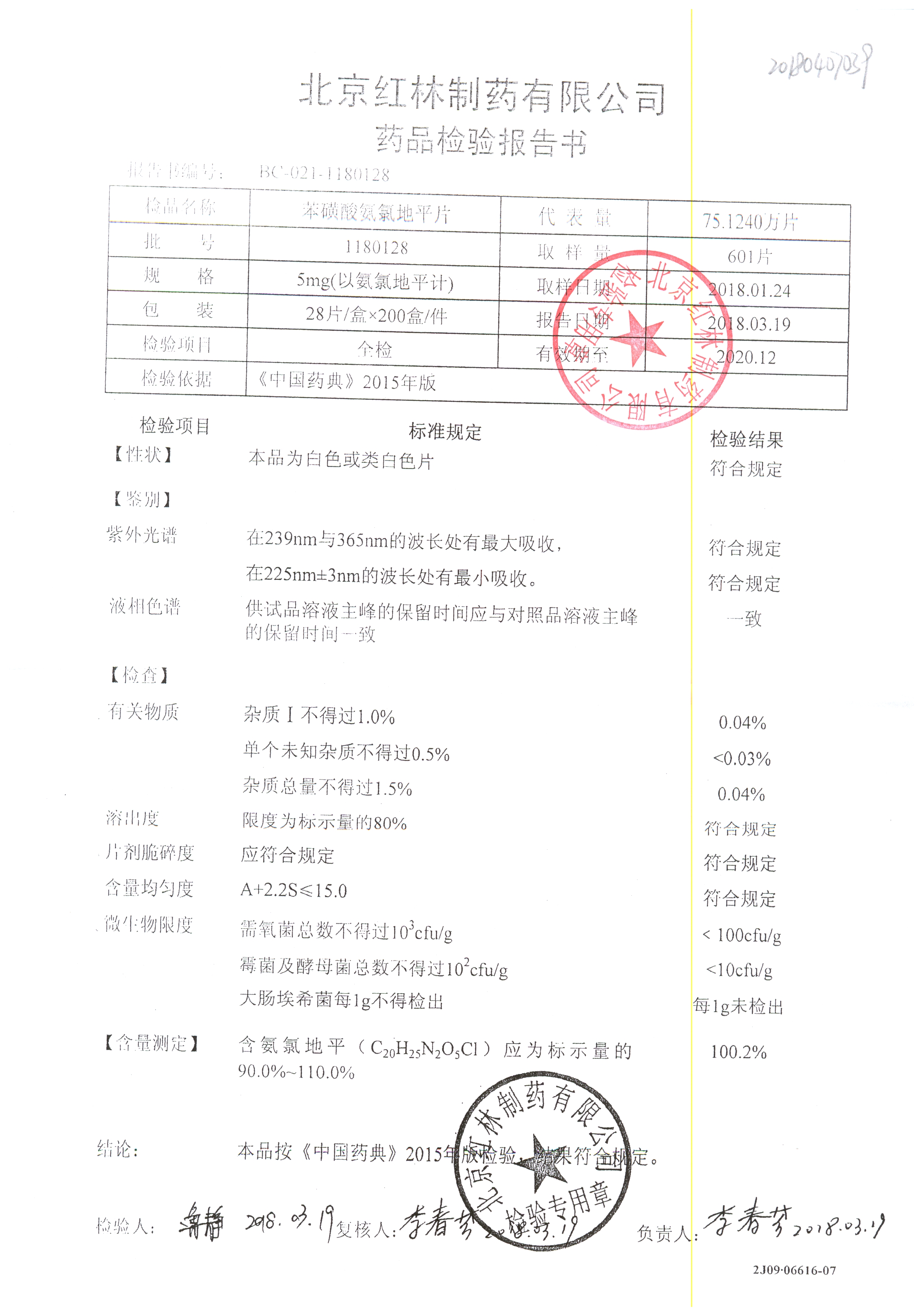 名稱 規(guī)格 批號 藥檢報告