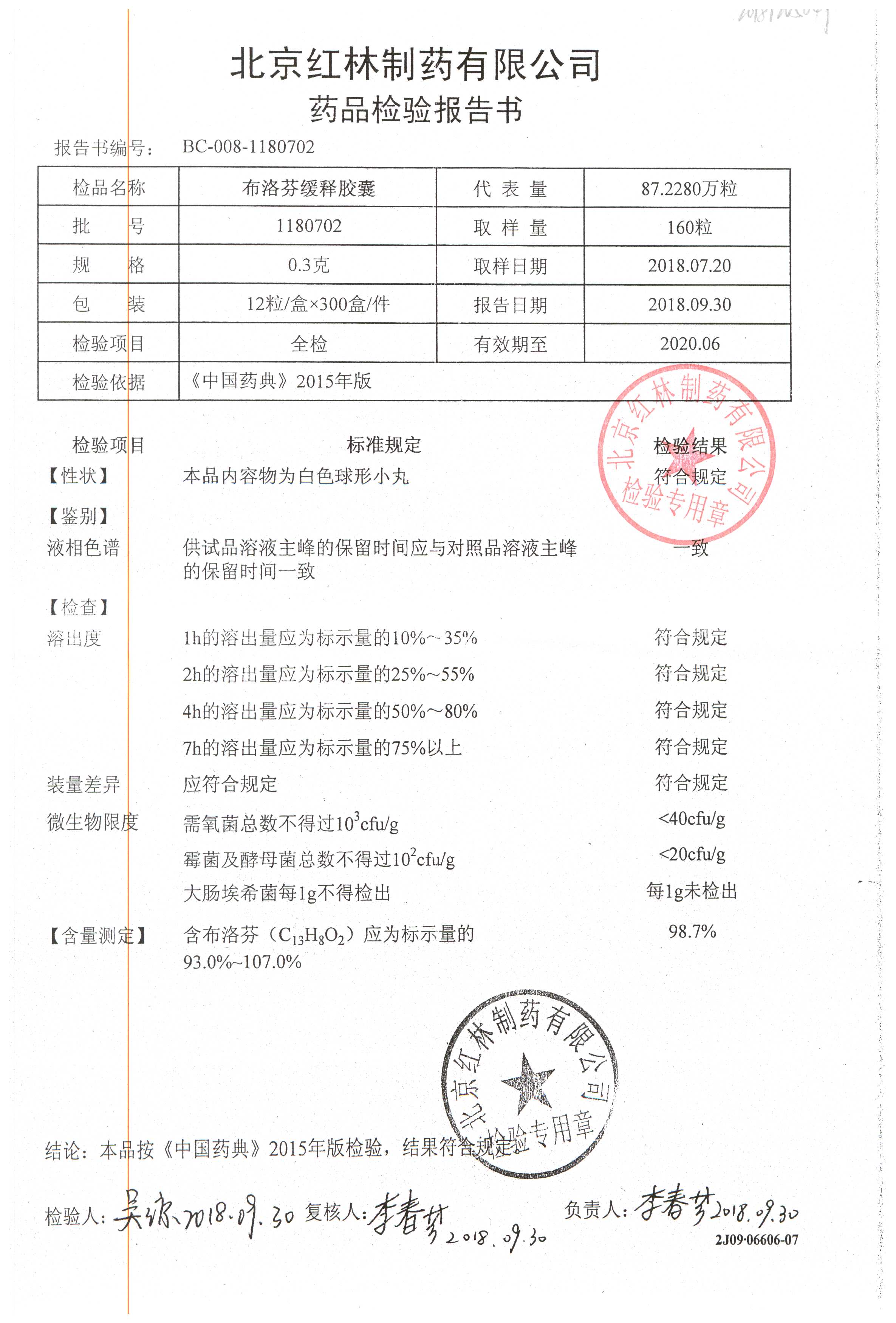 布洛芬緩釋膠囊 | 0.3g*12粒 | 1180702(2/2) | 查看詳情 |