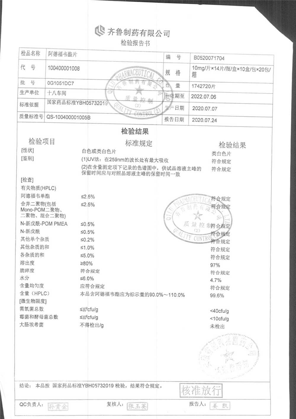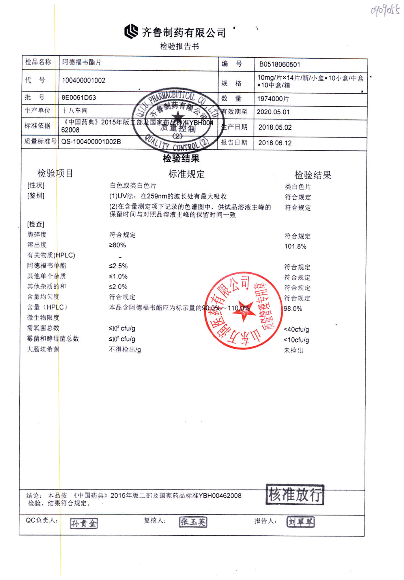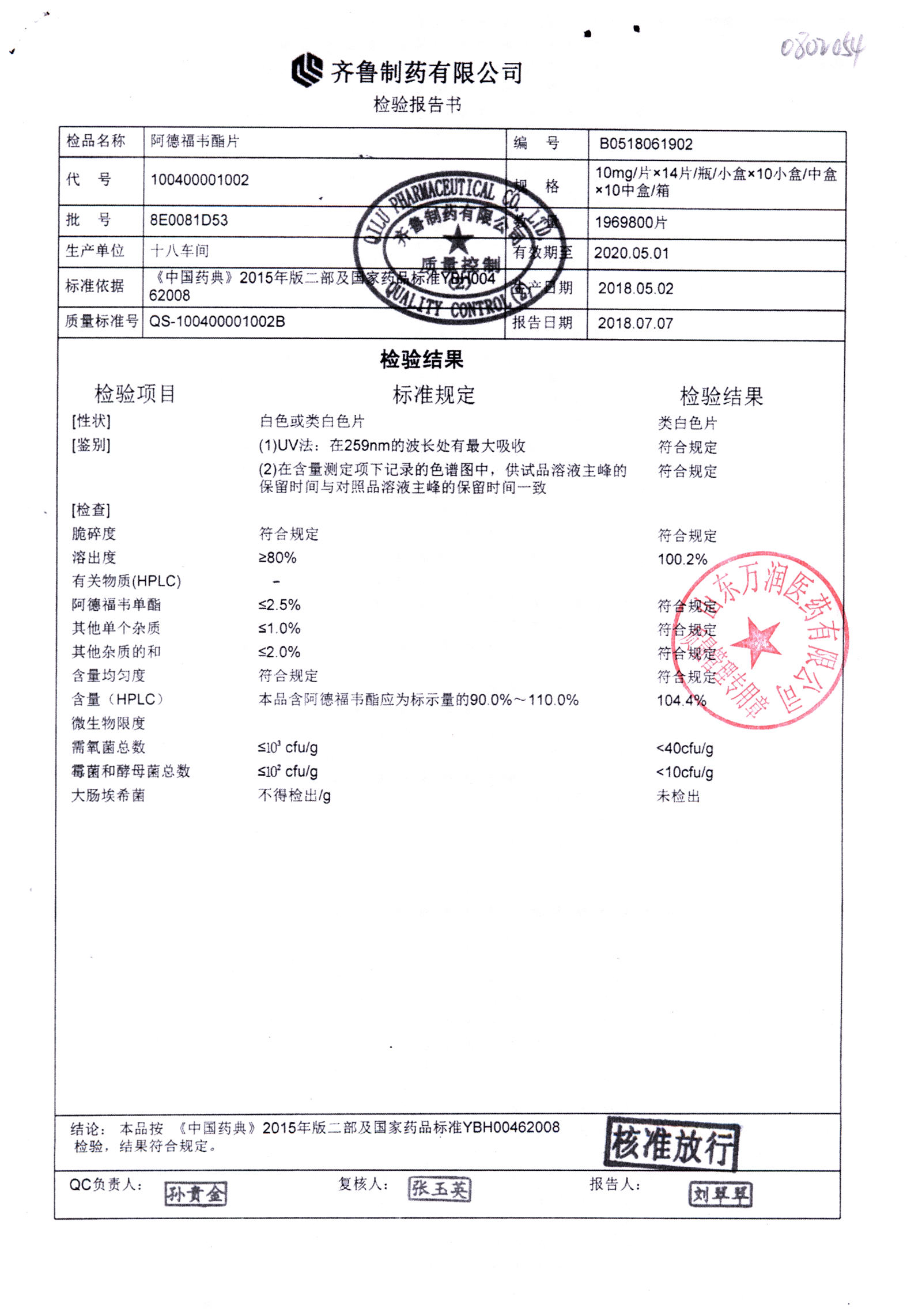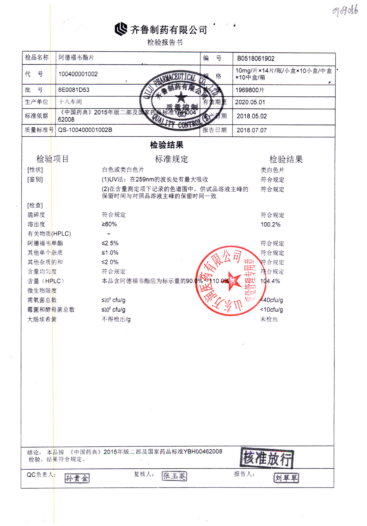 名稱 規(guī)格 批號 藥檢報(bào)告