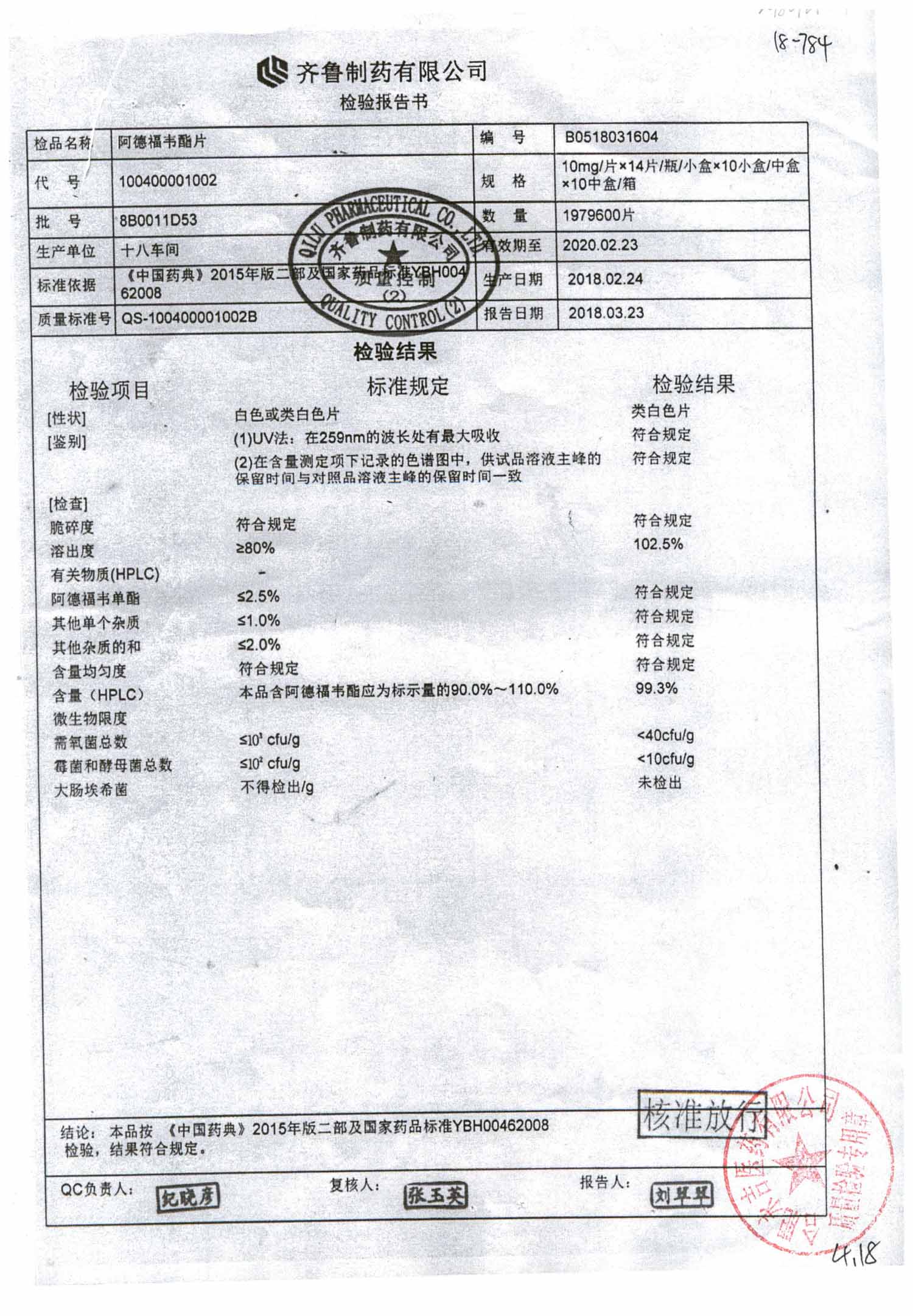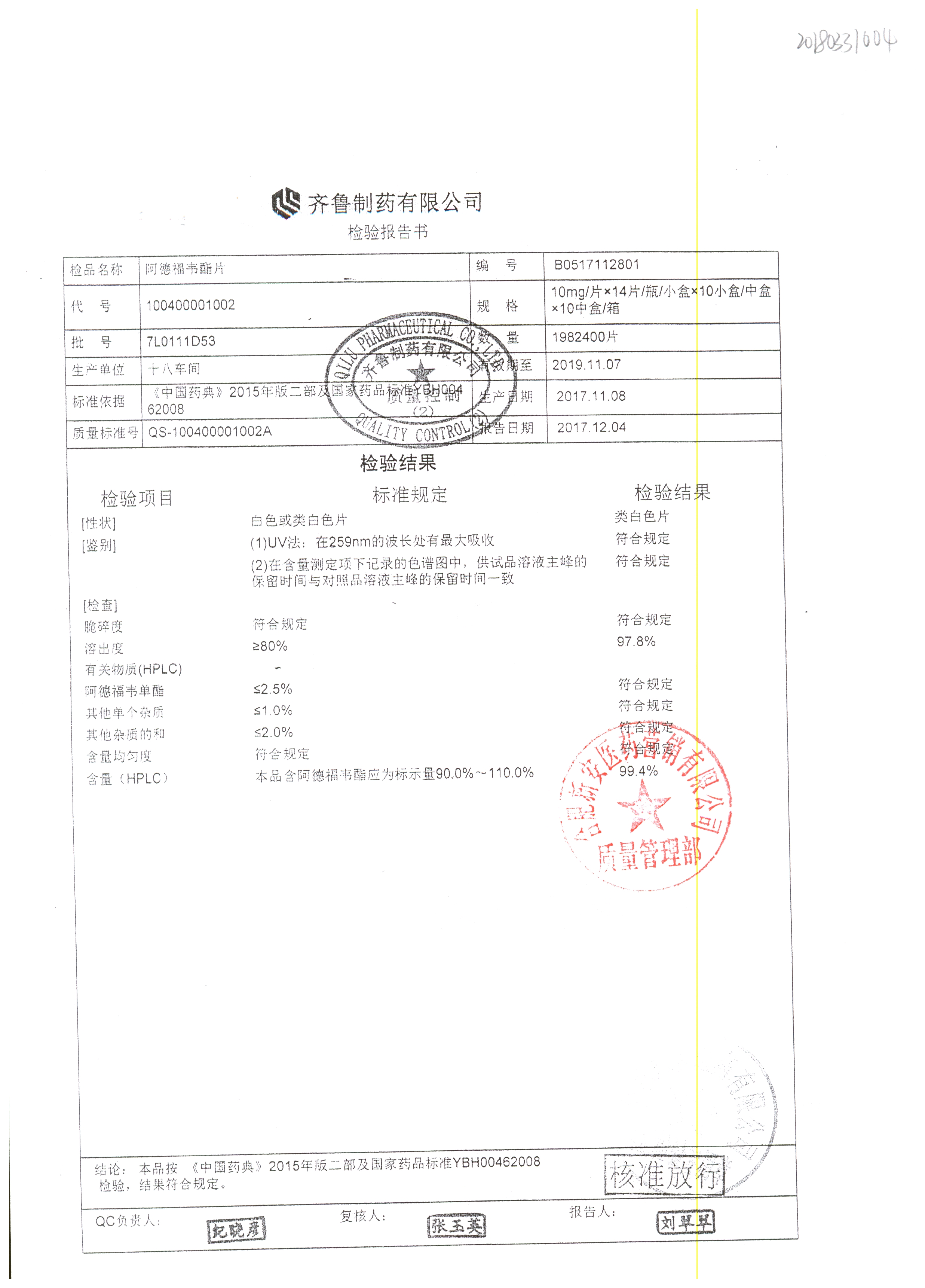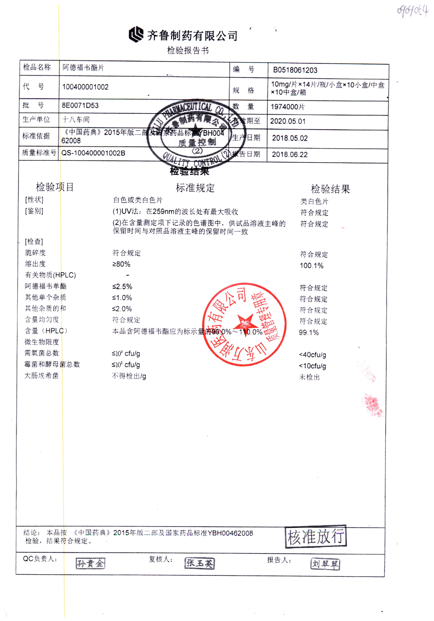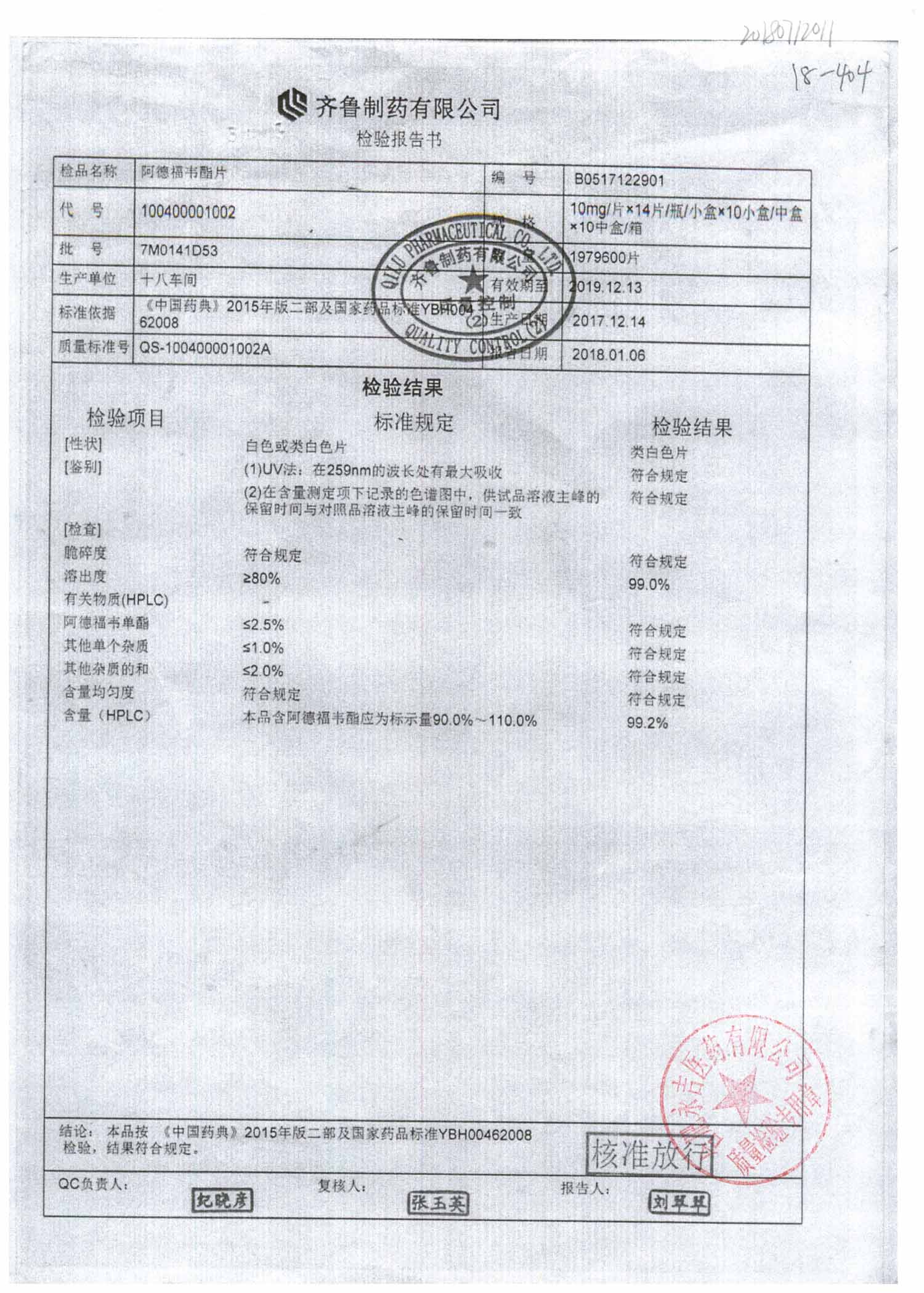 名稱 規(guī)格 批號 藥檢報(bào)告
