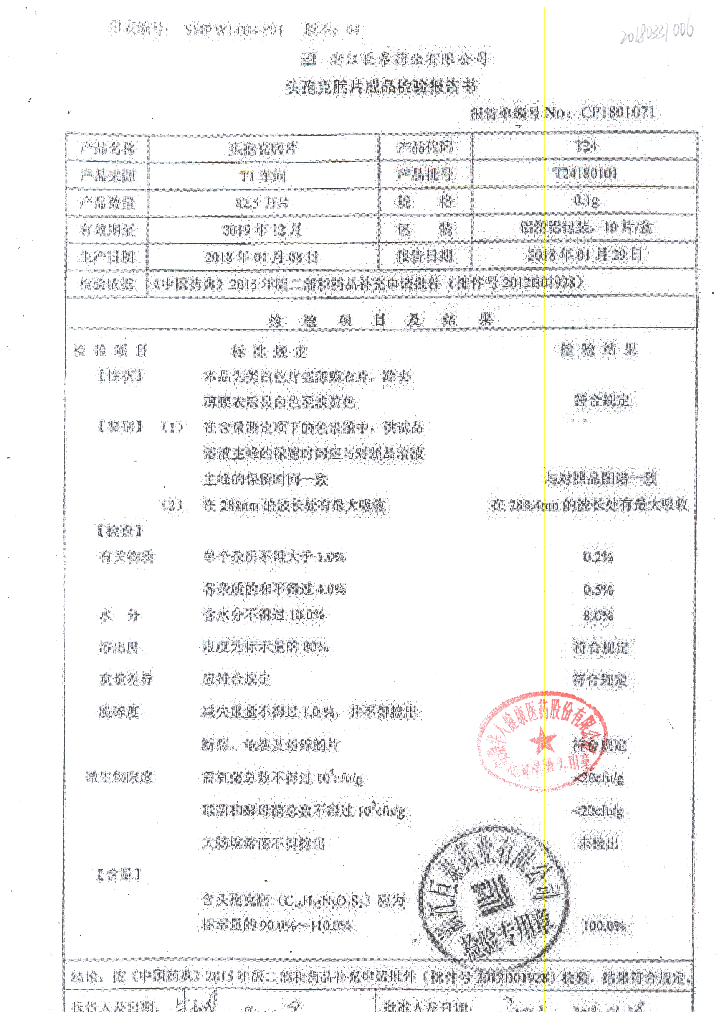 名稱 | 規(guī)格 | 批號 | 藥檢報告 |
