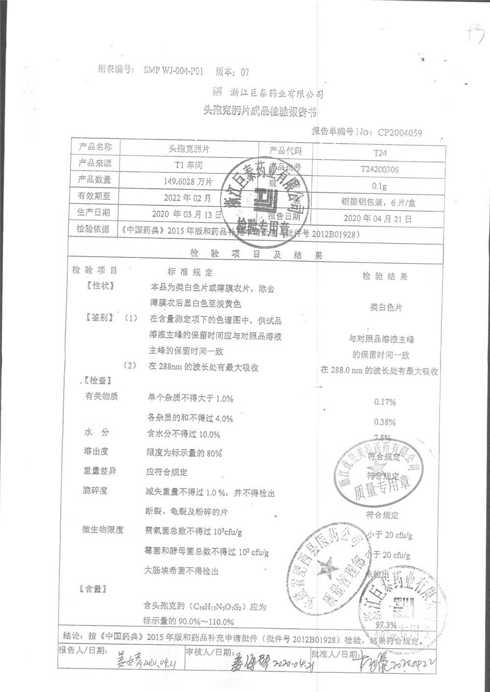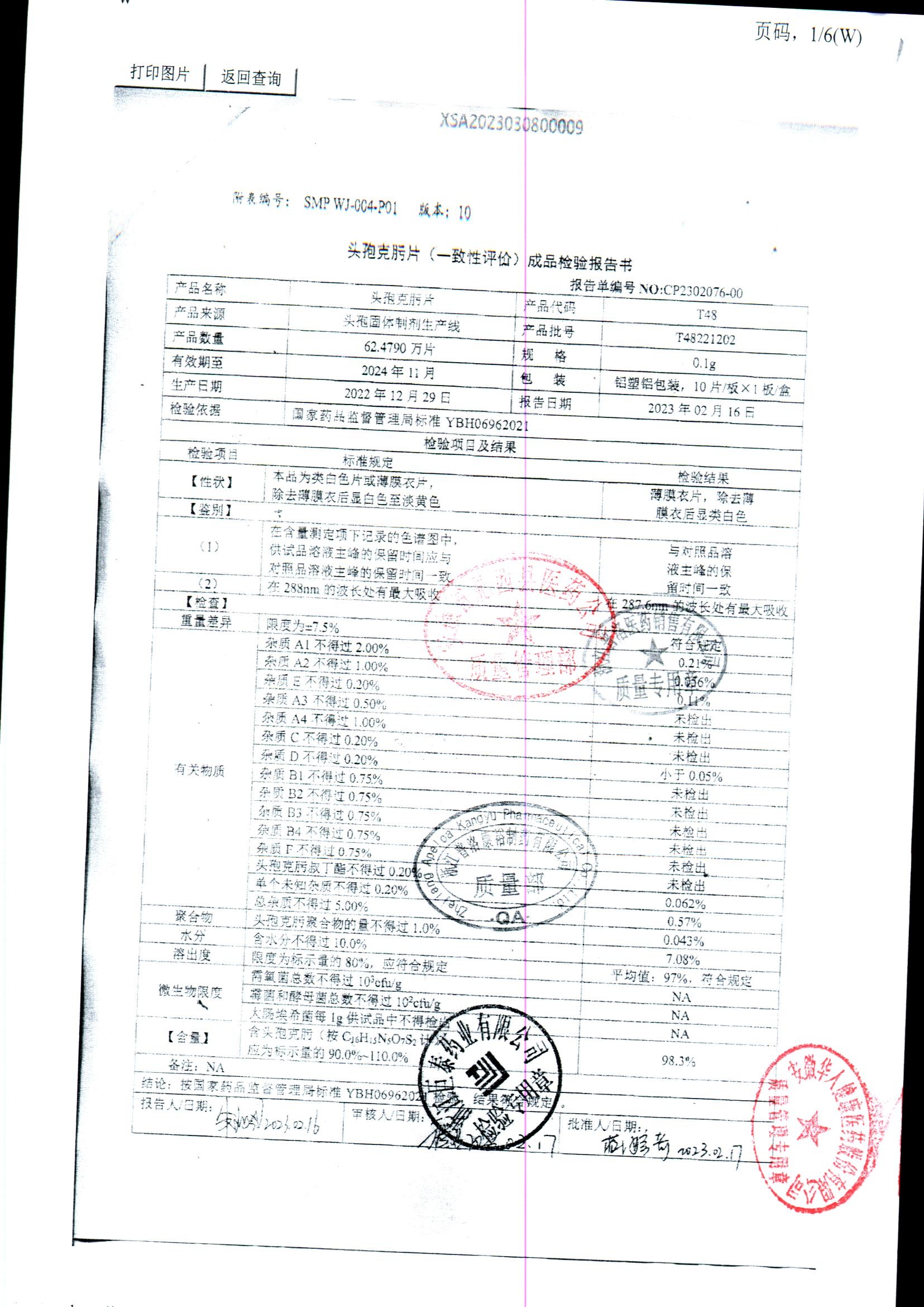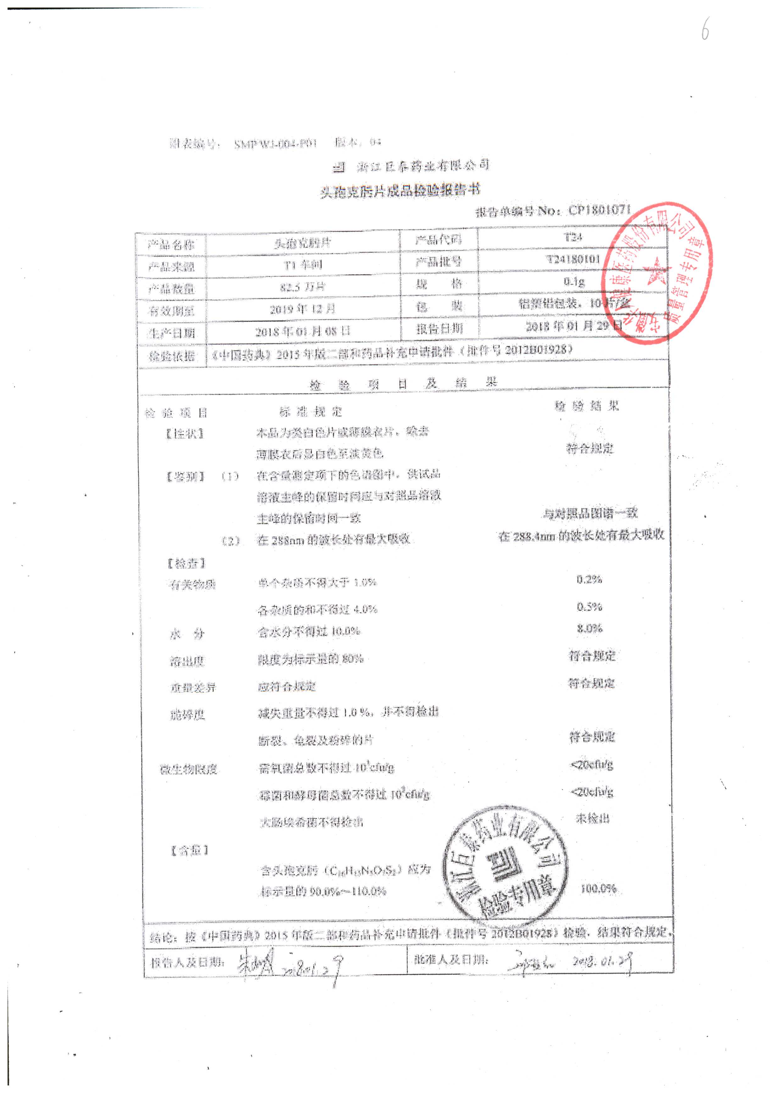 頭孢克肟片 | 0.1g*10s | T24201101 | 查看詳情 |