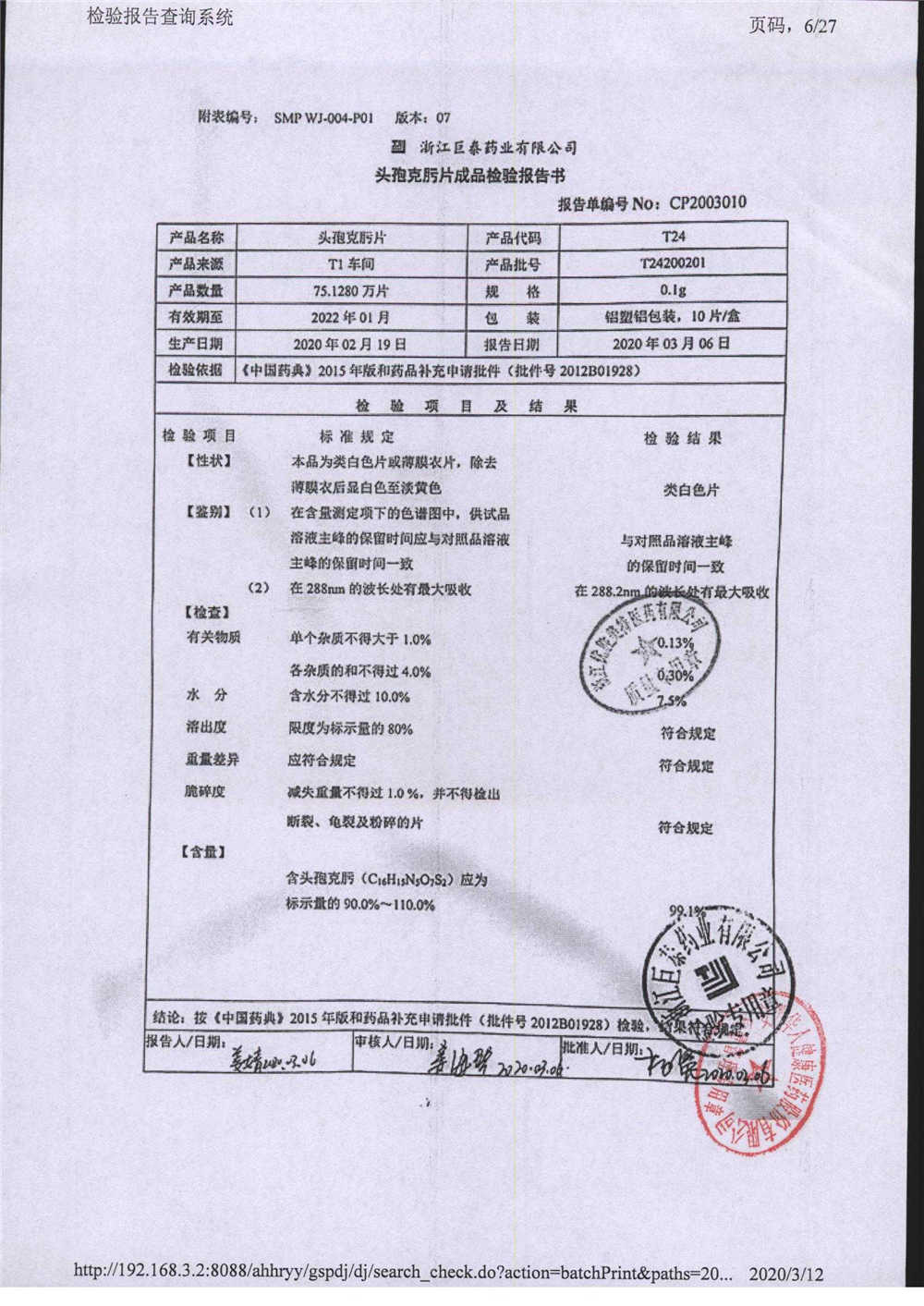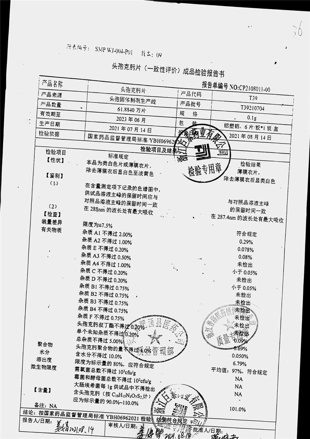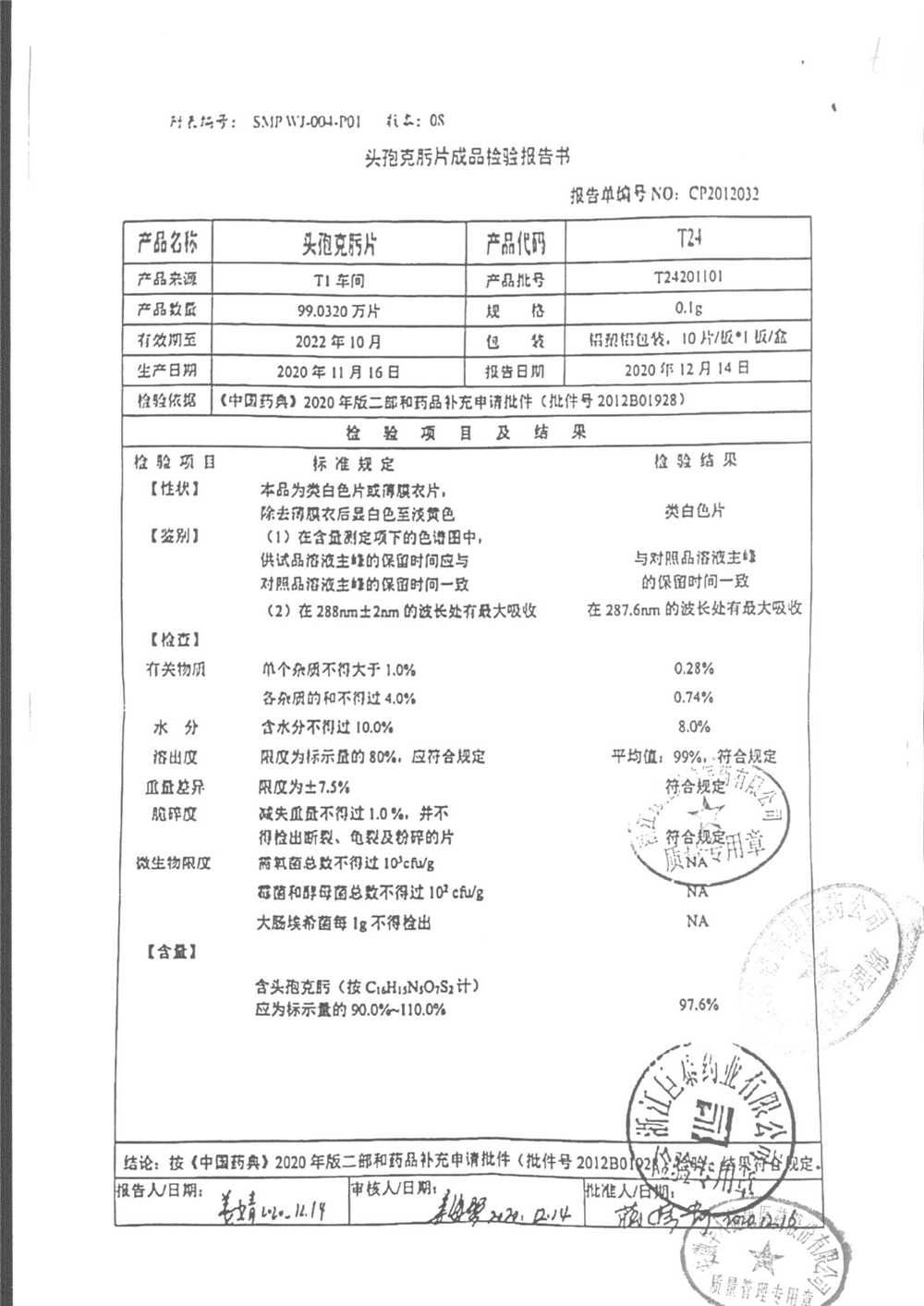 頭孢克肟片 | 0.1g*10s | T24201101 | 查看詳情 |