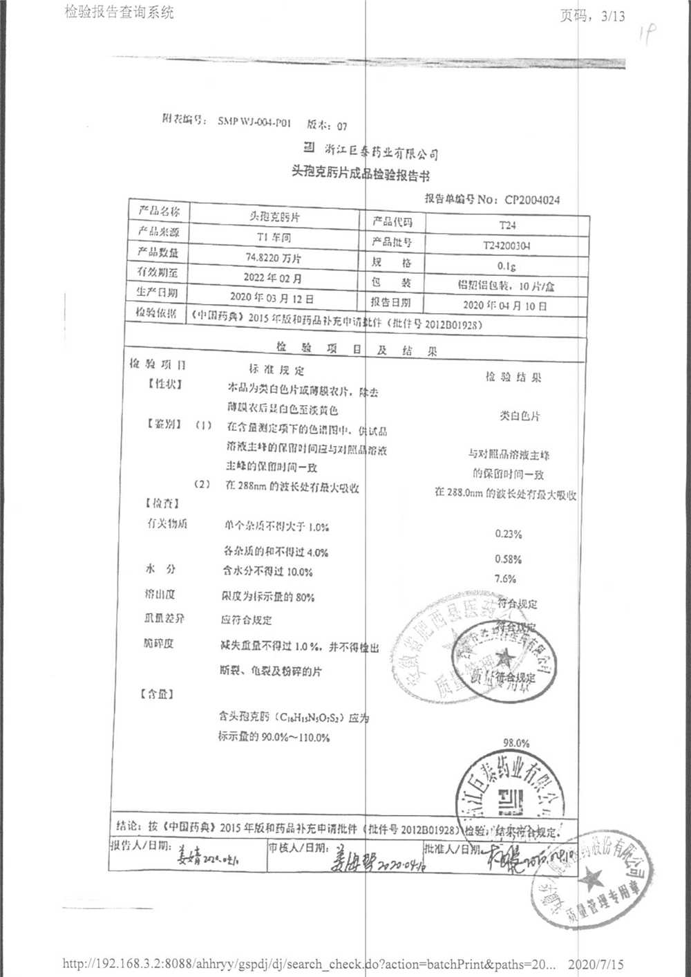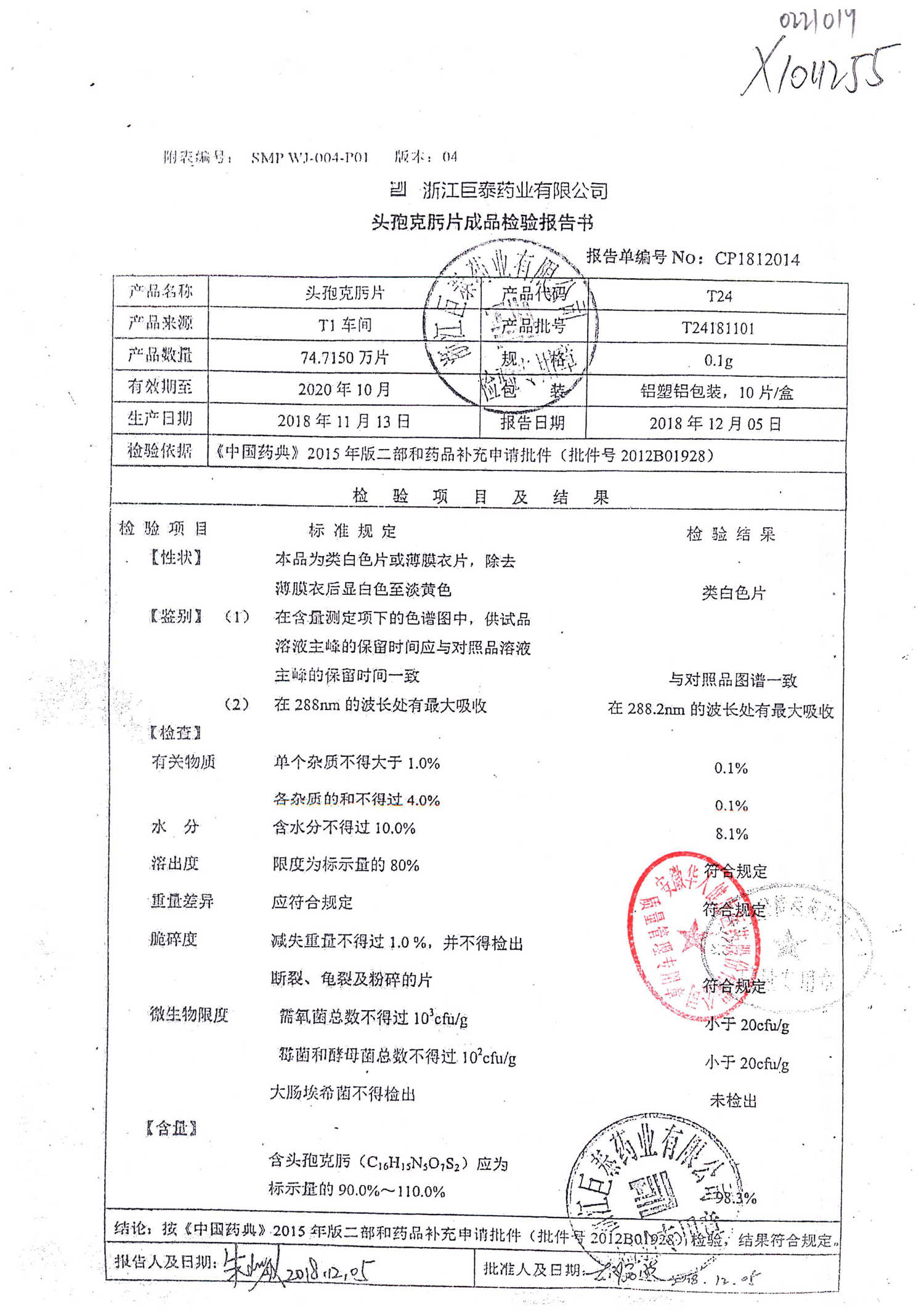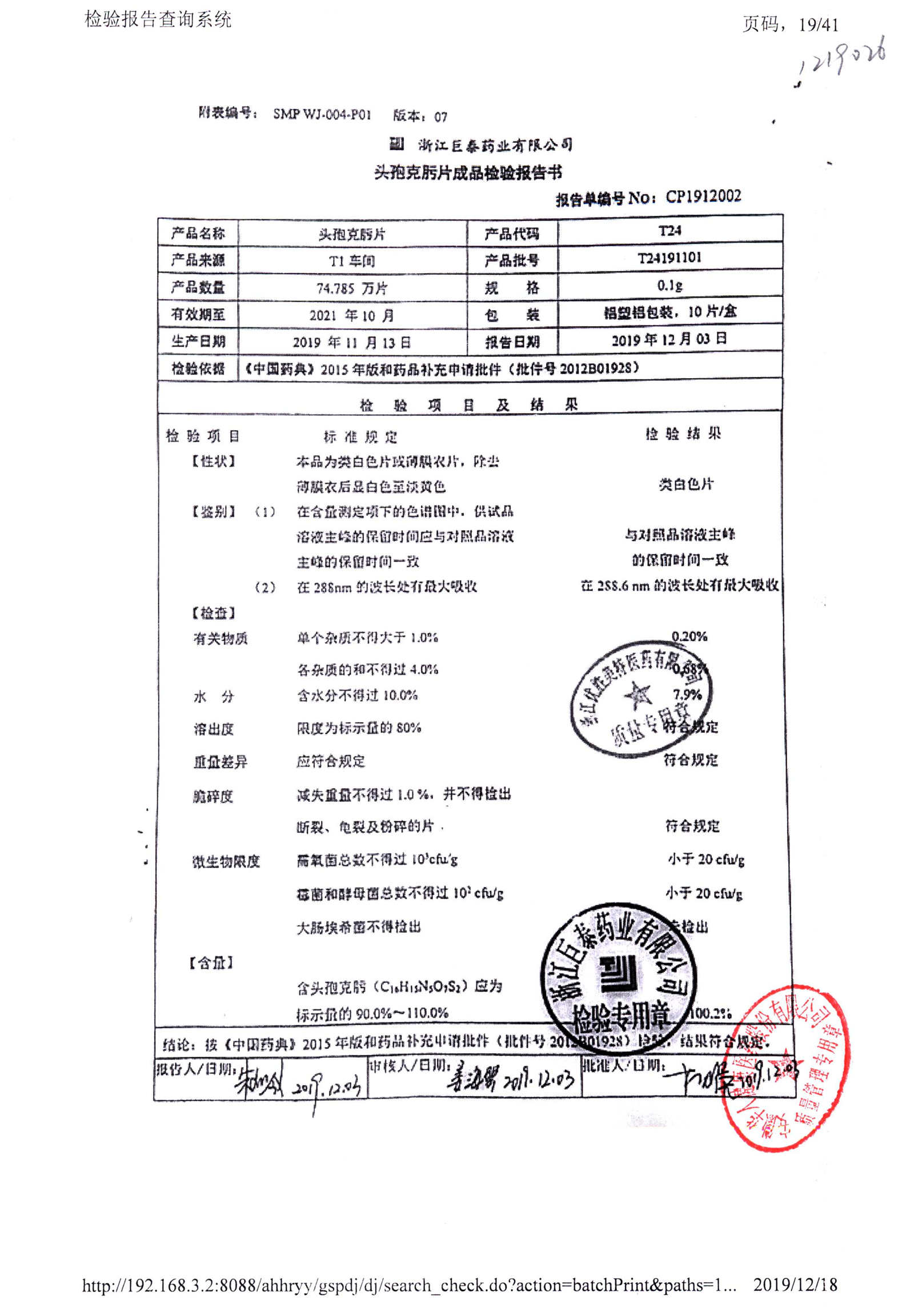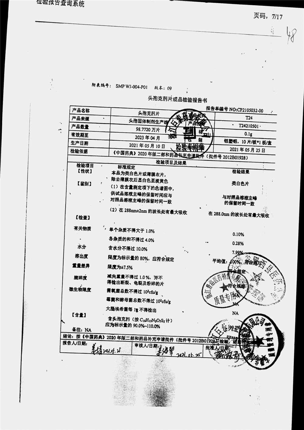 頭孢克肟片 | 0.1g*10s | T24191101 | 查看詳情 |