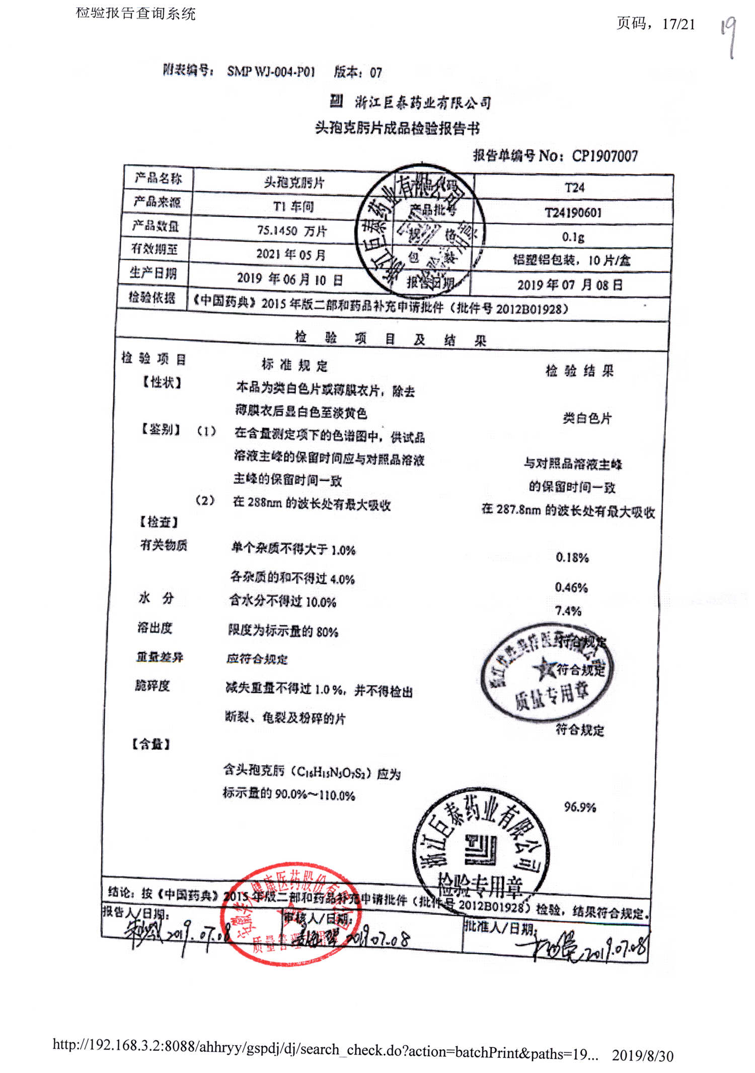 頭孢克肟片 | 0.1g*10s | T24190307 | 查看詳情 |