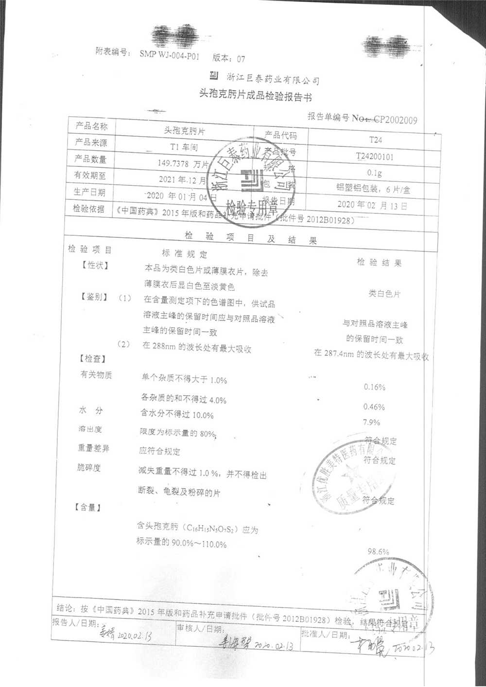頭孢克肟片 | 0.1g*10s | T24200101 | 查看詳情 |