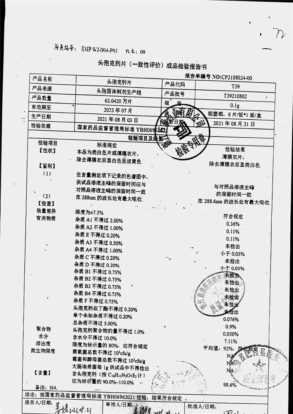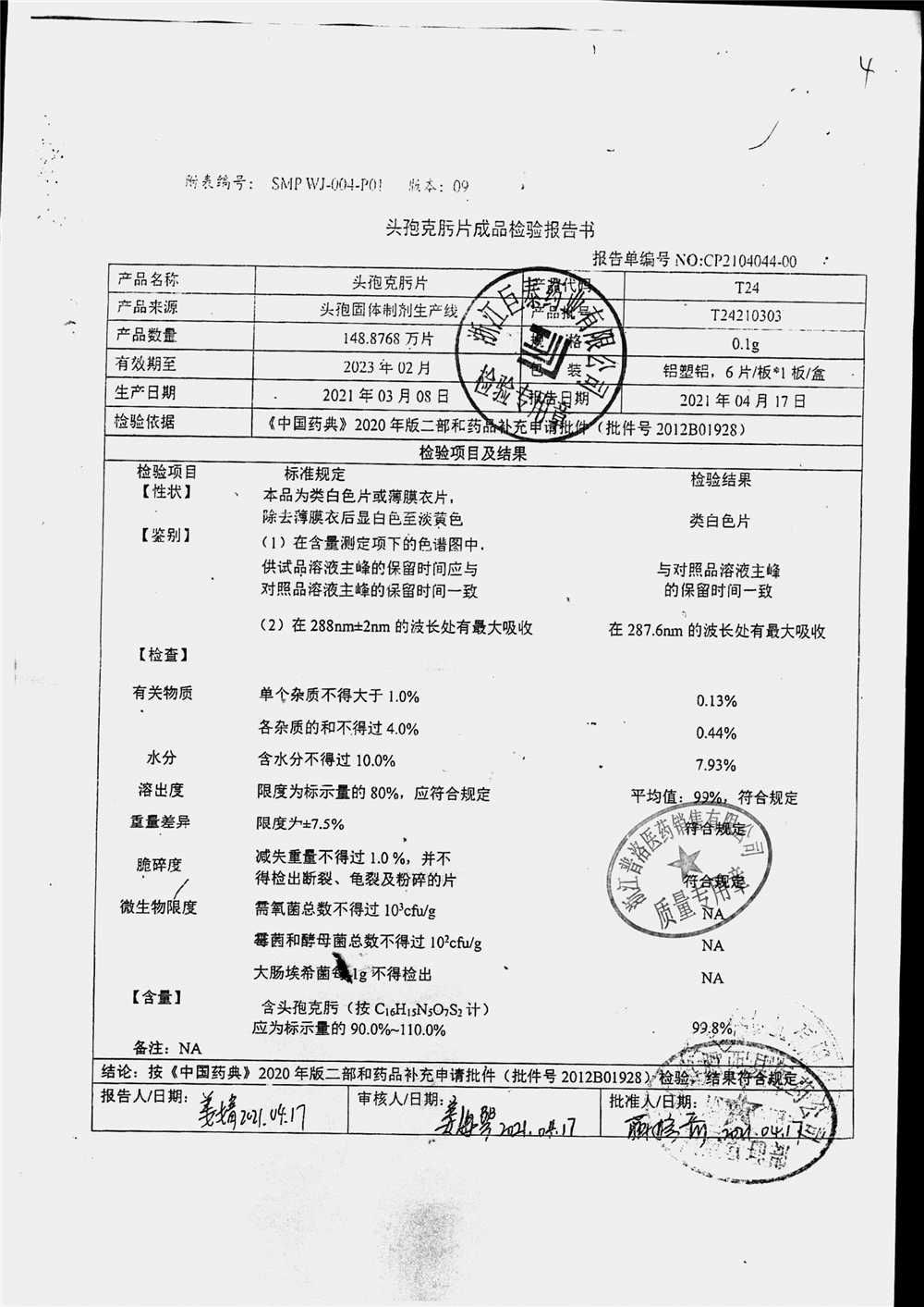 頭孢克肟片 | 0.1g*10s | T24201104 | 查看詳情 |