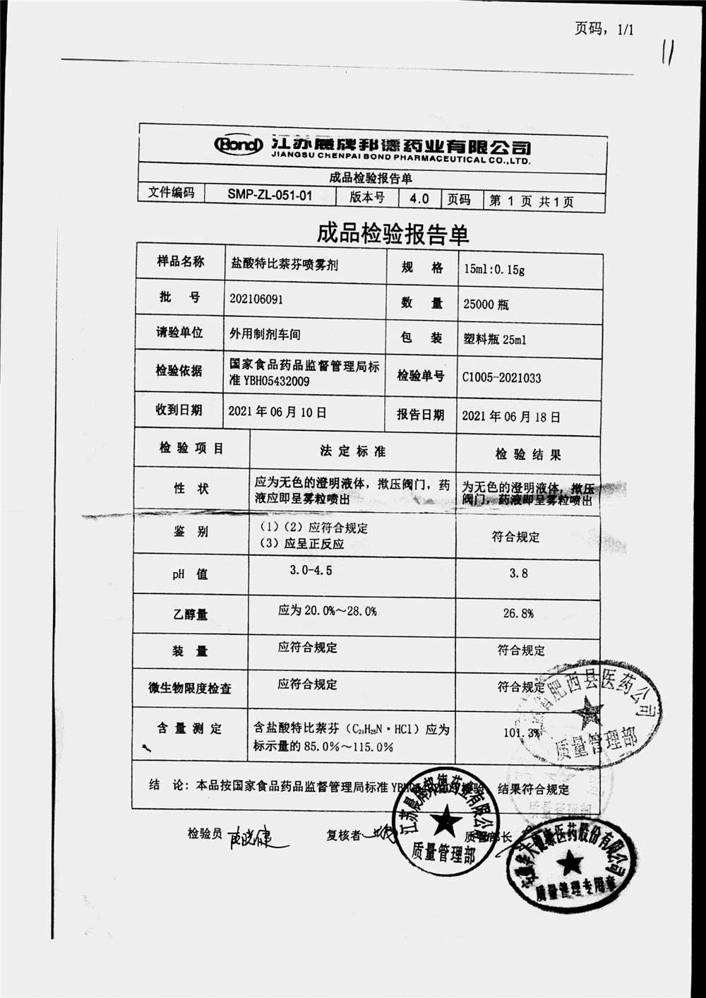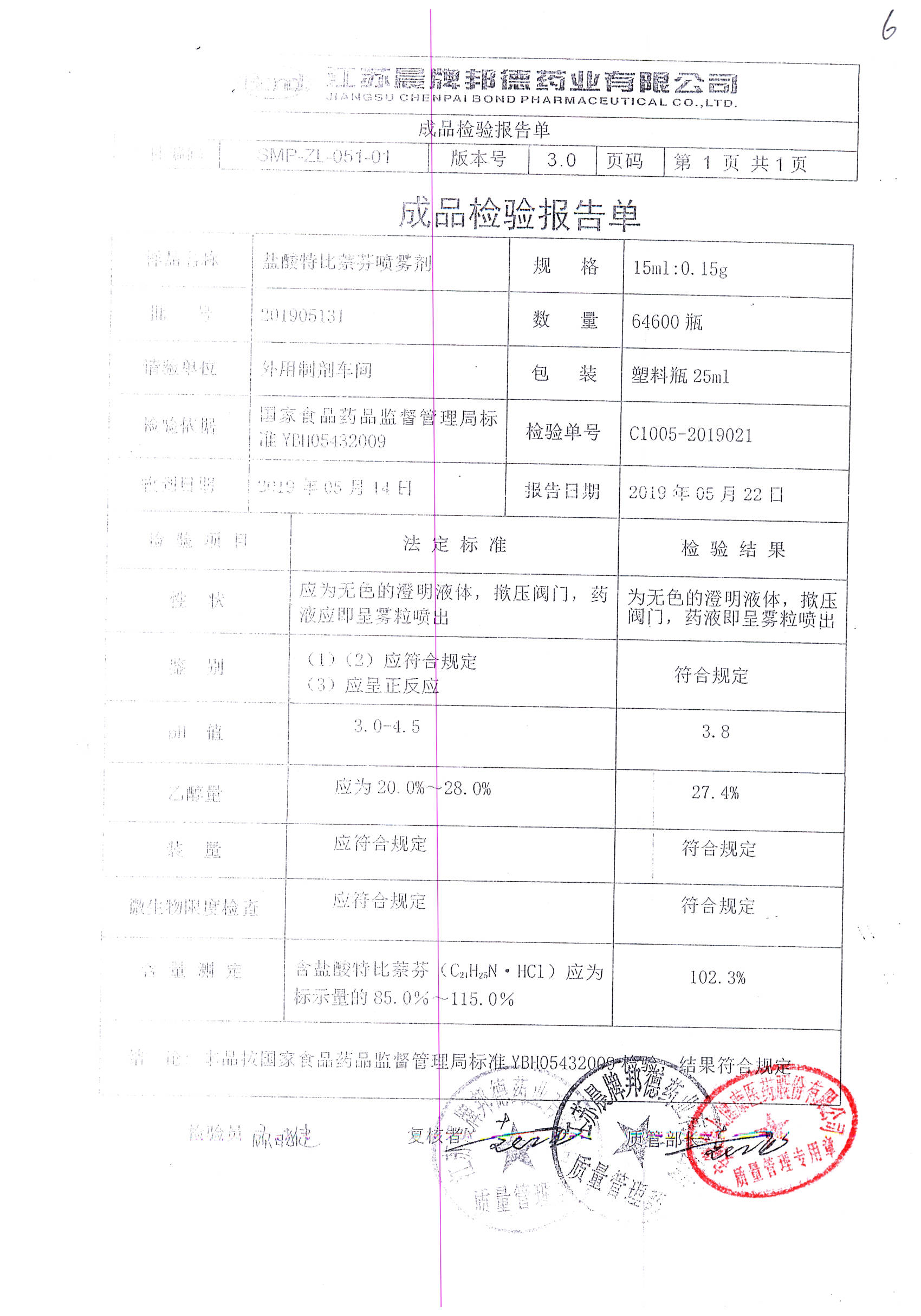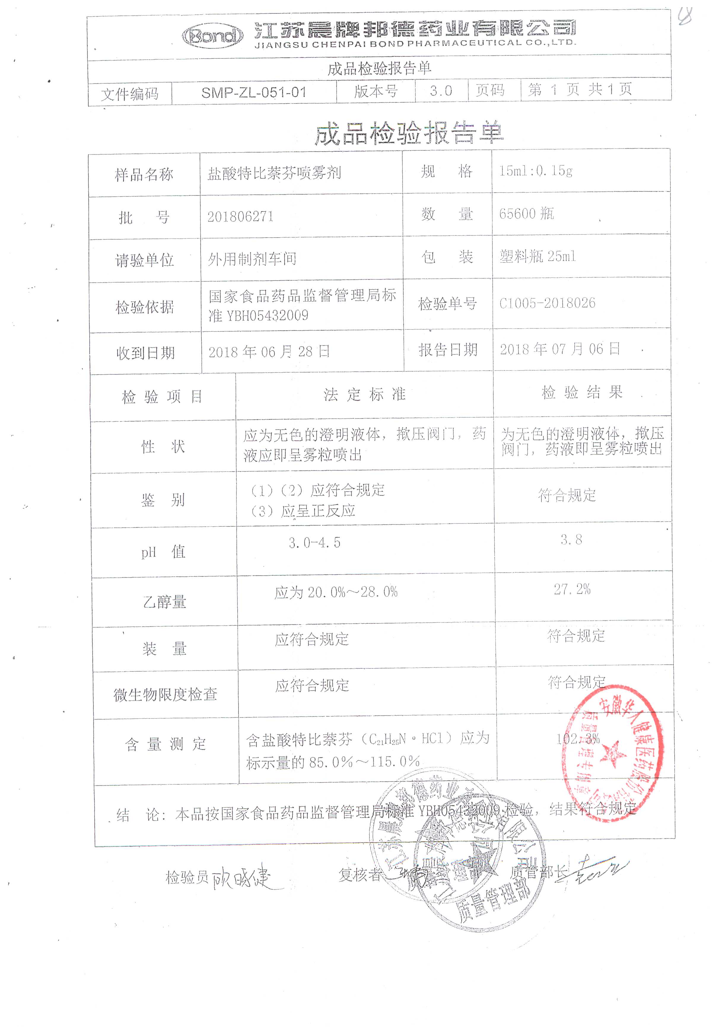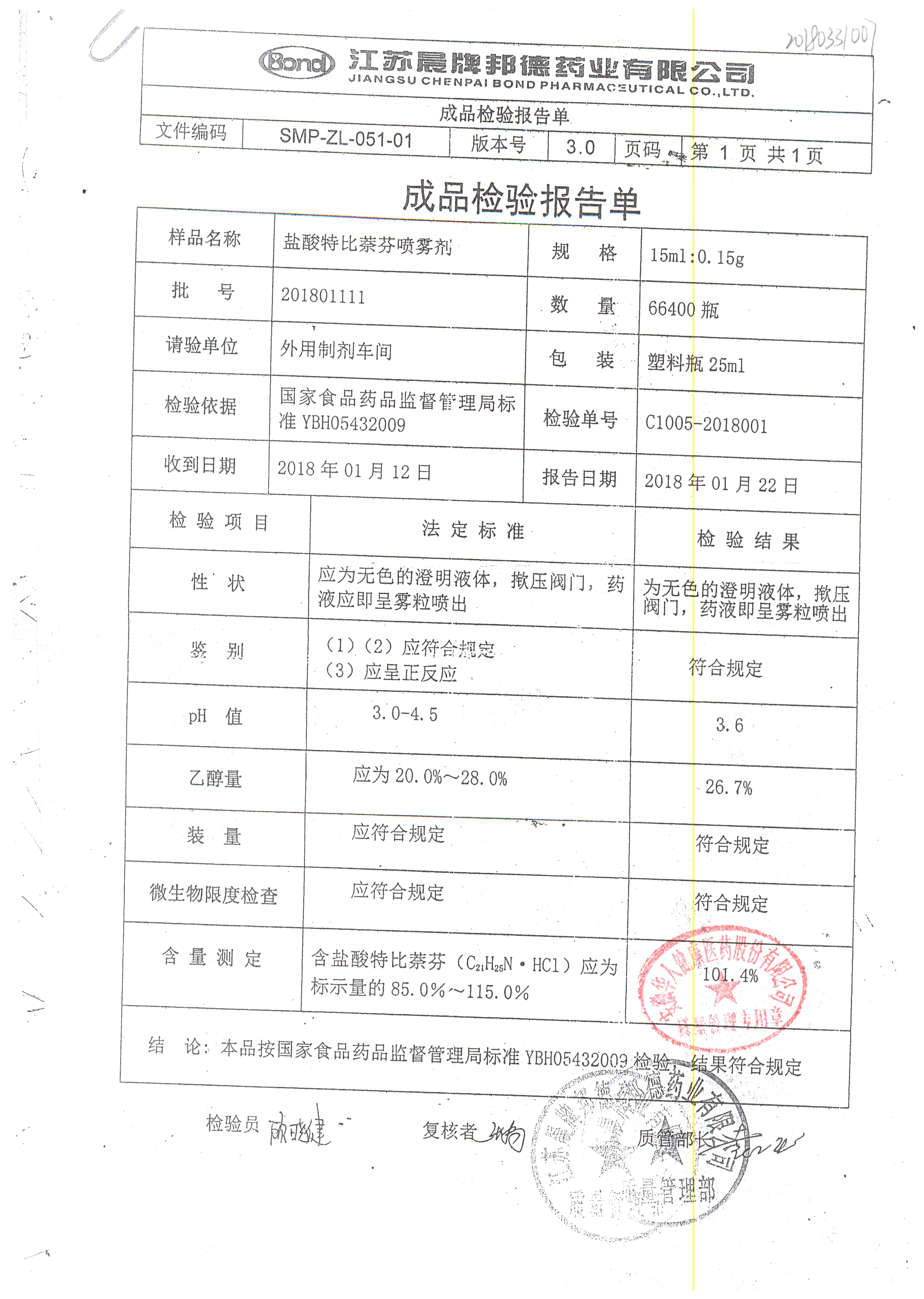 名稱 規(guī)格 批號 藥檢報告