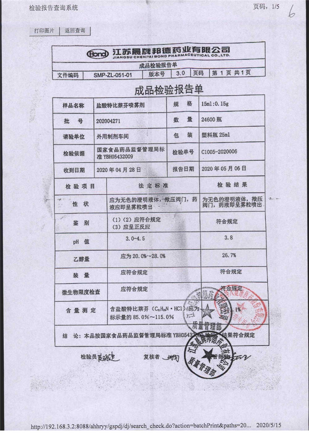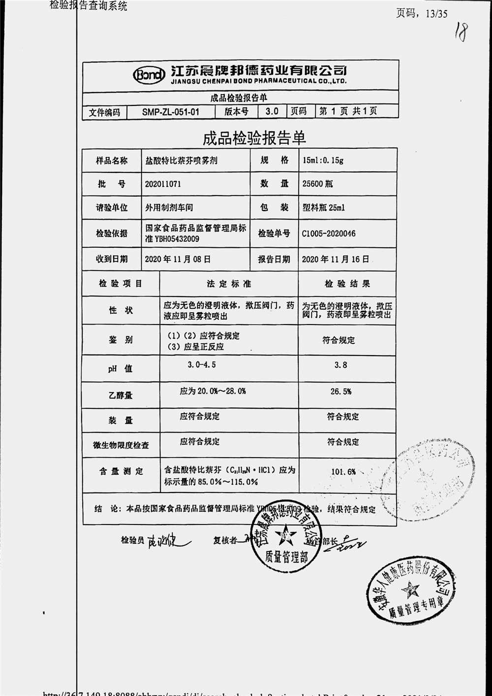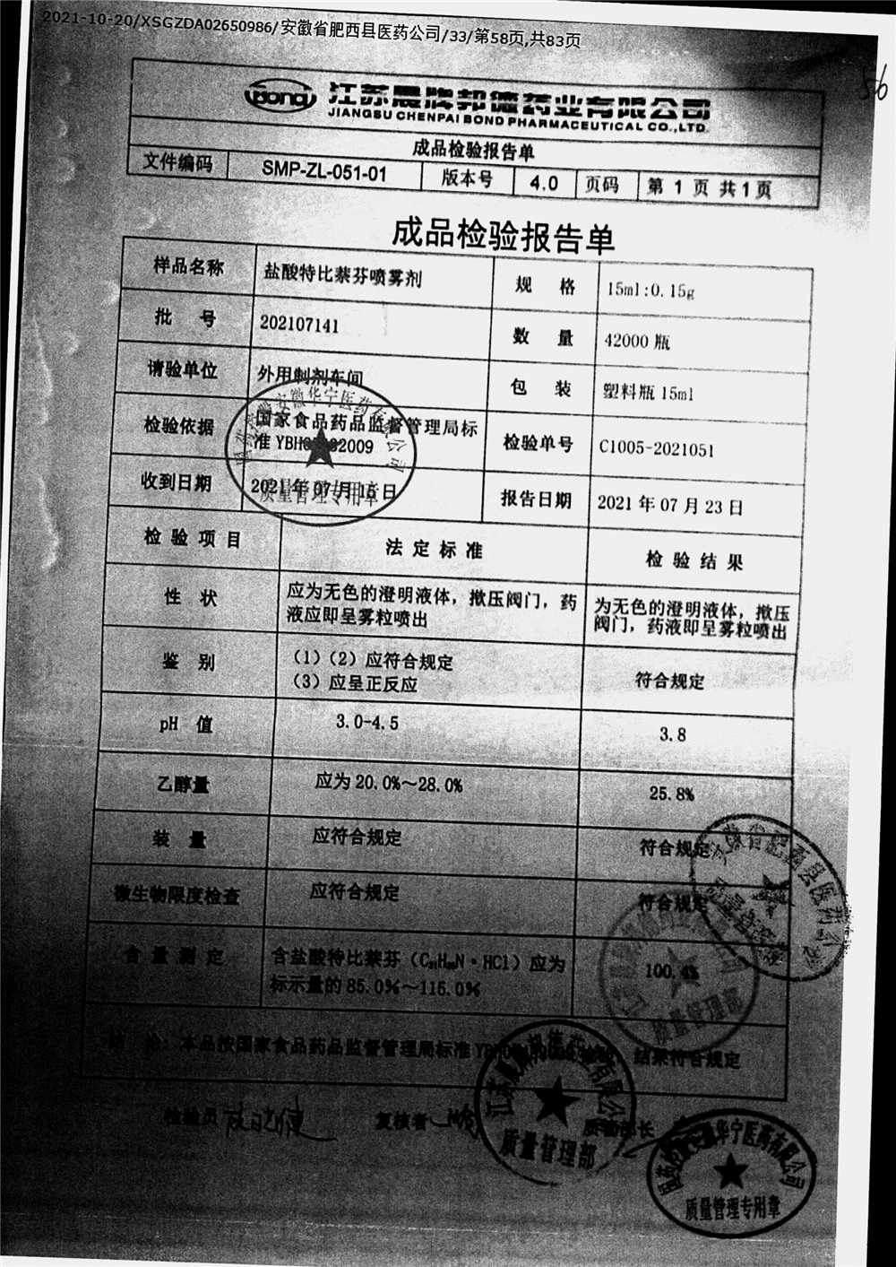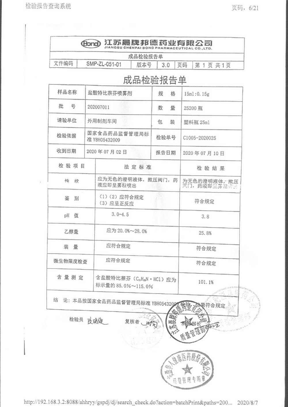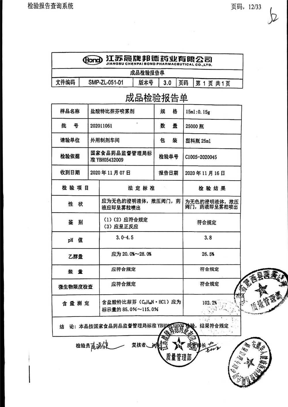 名稱 規(guī)格 批號 藥檢報告