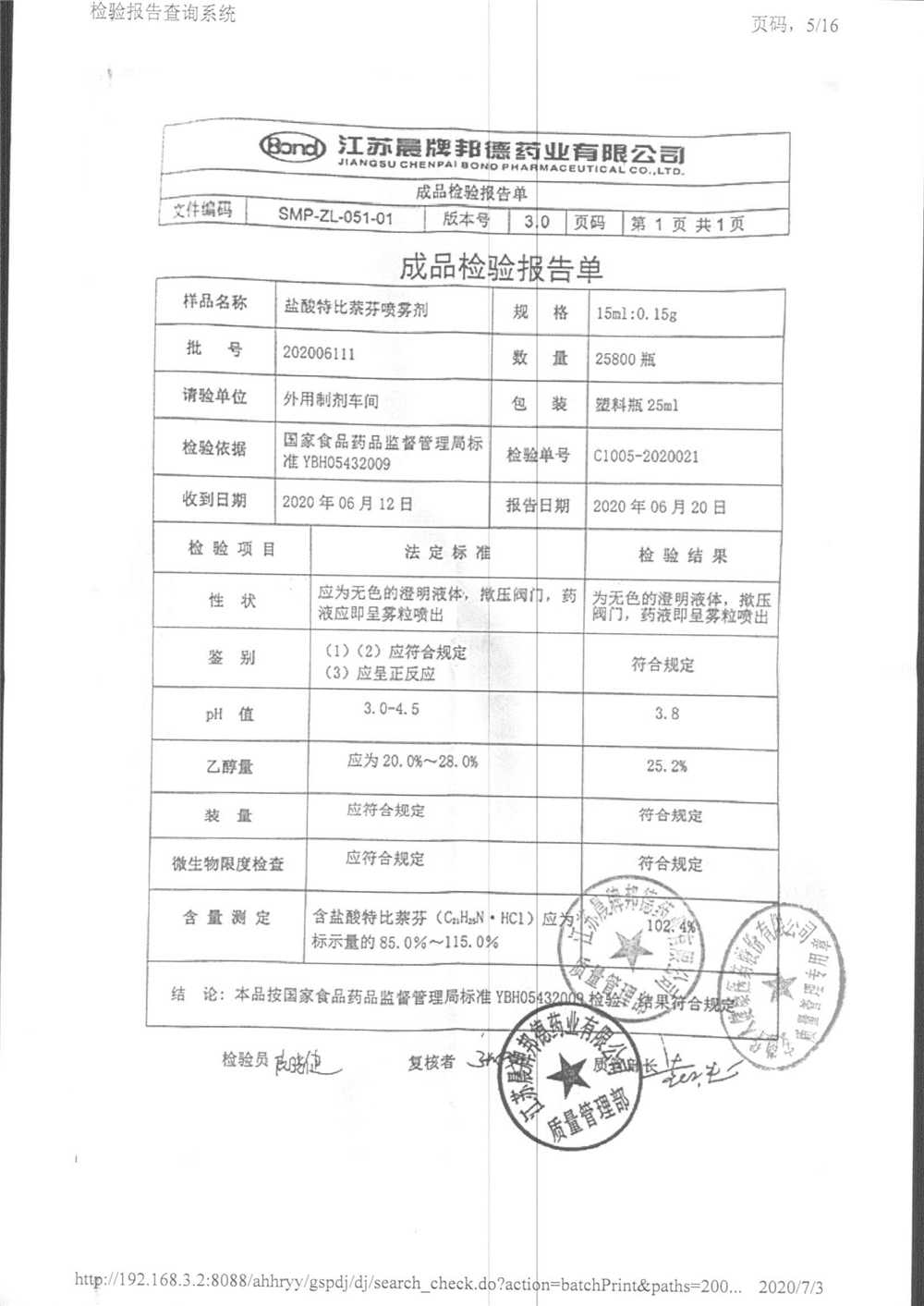 鹽酸特比萘芬噴霧劑 15ml:0.15g 202006111 查看詳情