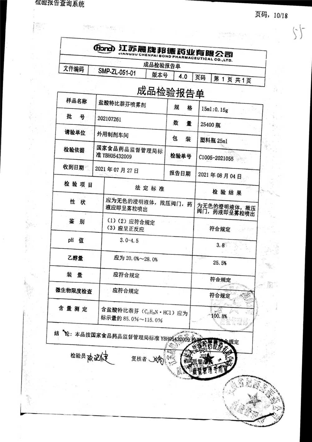 鹽酸特比萘芬噴霧劑 15ml:0.15g 202011071 查看詳情