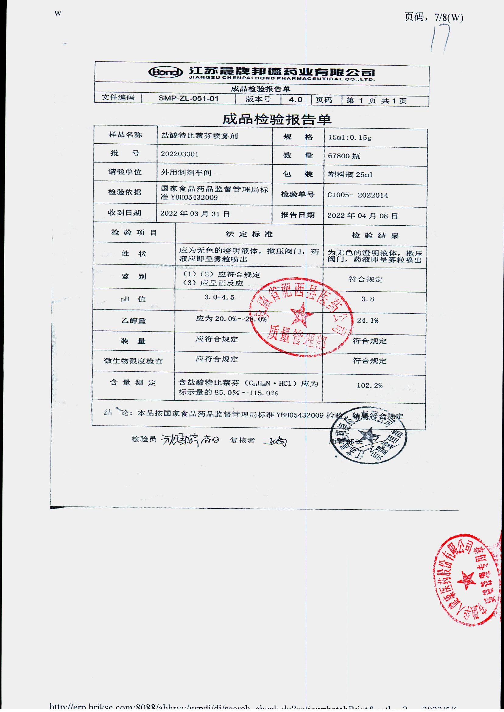 鹽酸特比萘芬噴霧劑 15ml:0.15g 202203301 查看詳情