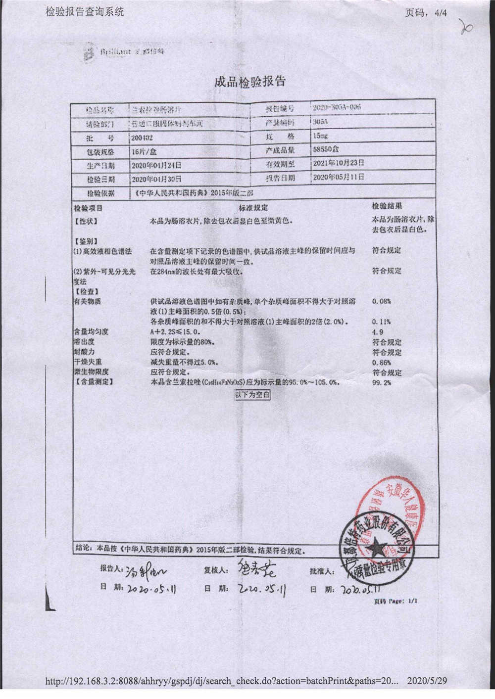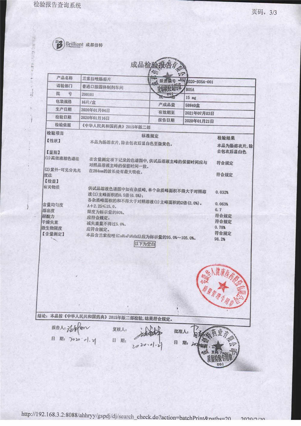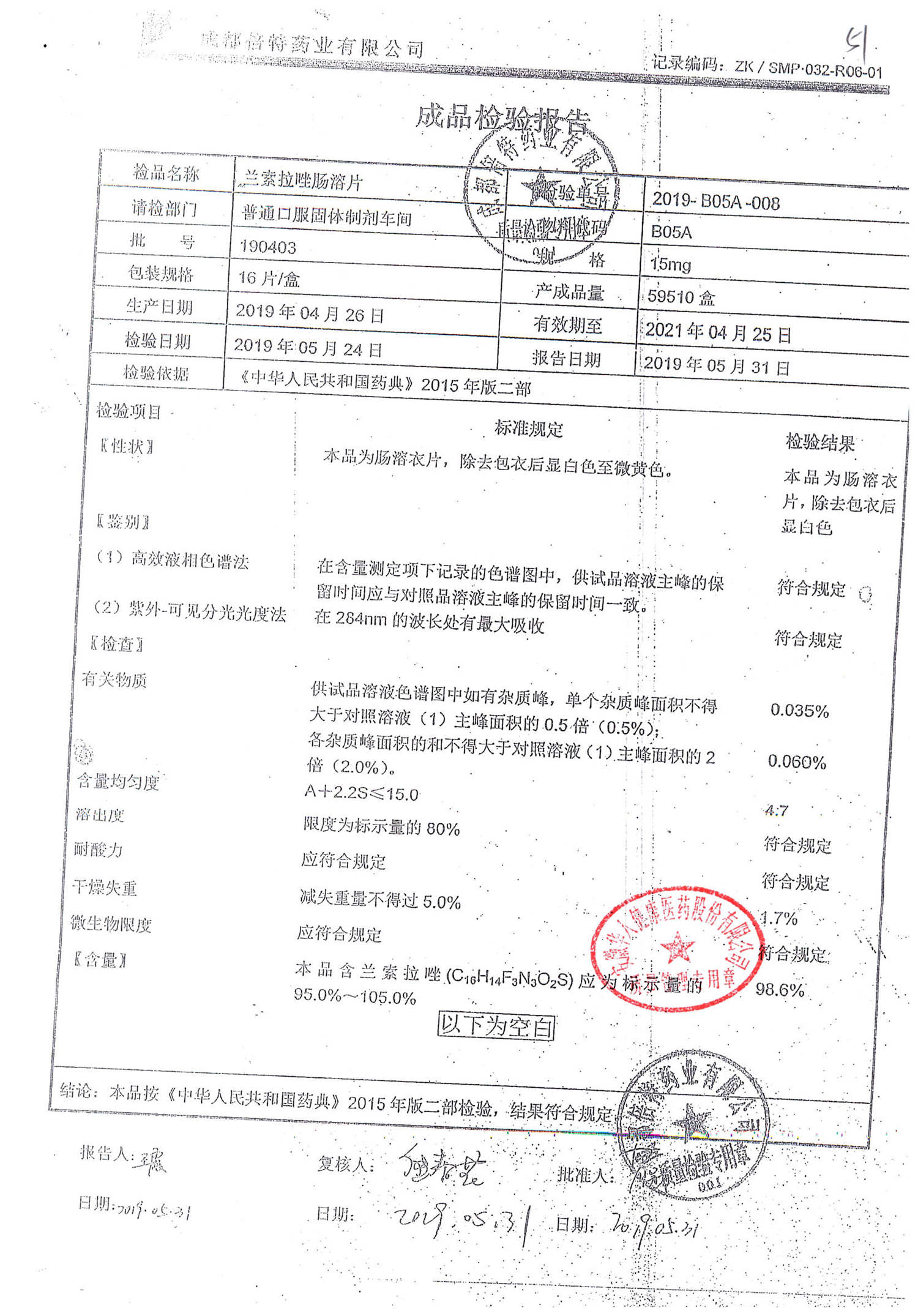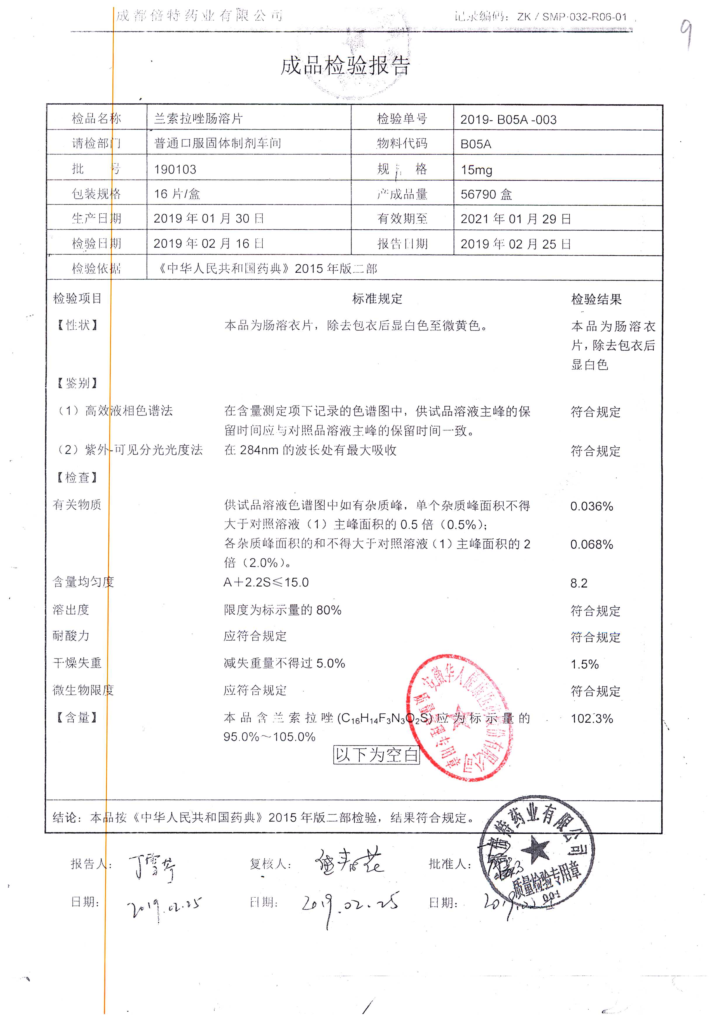 蘭索拉唑腸溶片 | 15mg*16s | 190403 | 查看詳情 |